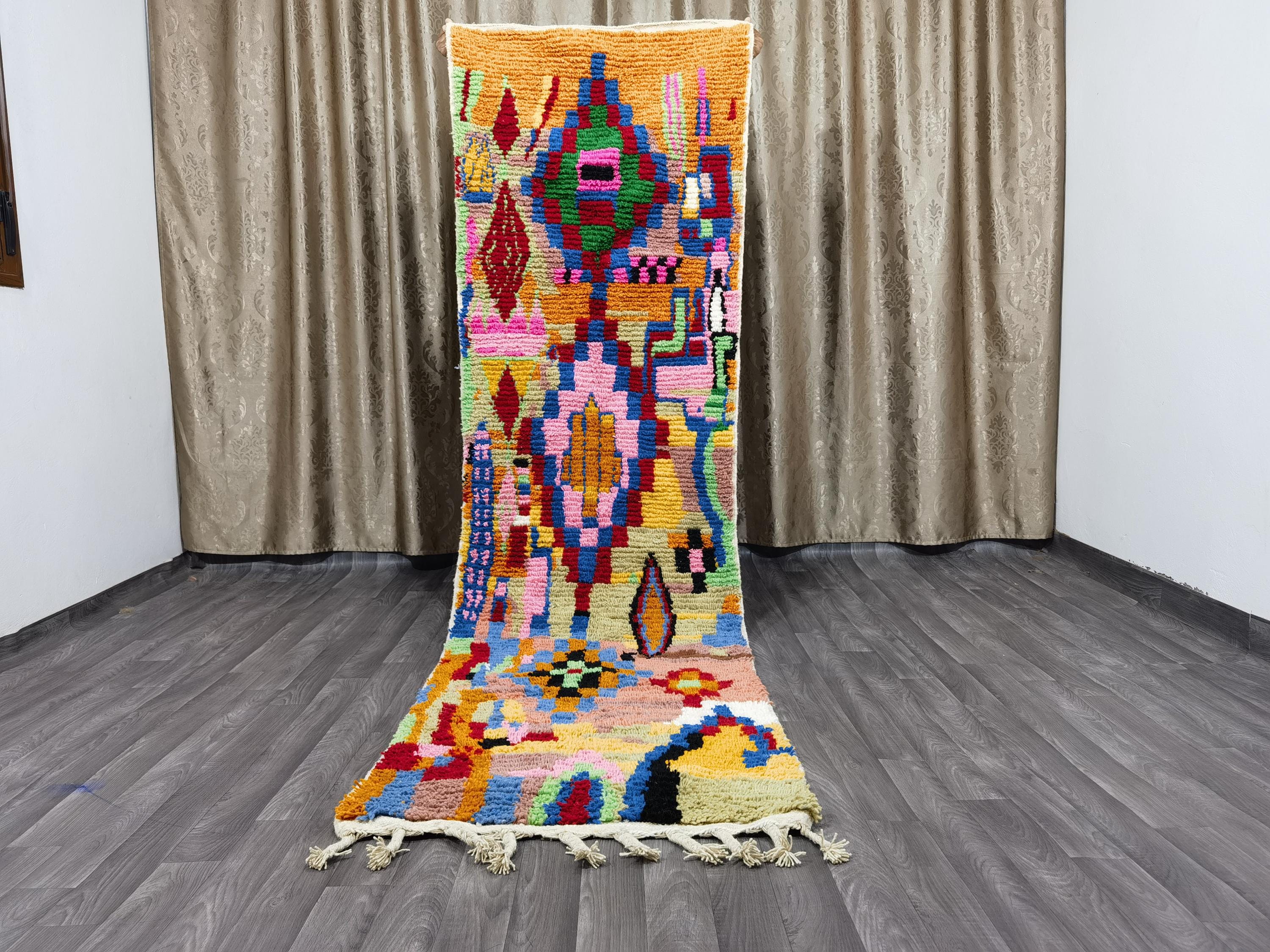 Orange Wool Moroccan Runner Rug – Beni Ourain Tribal Design - Entryway Carpet .