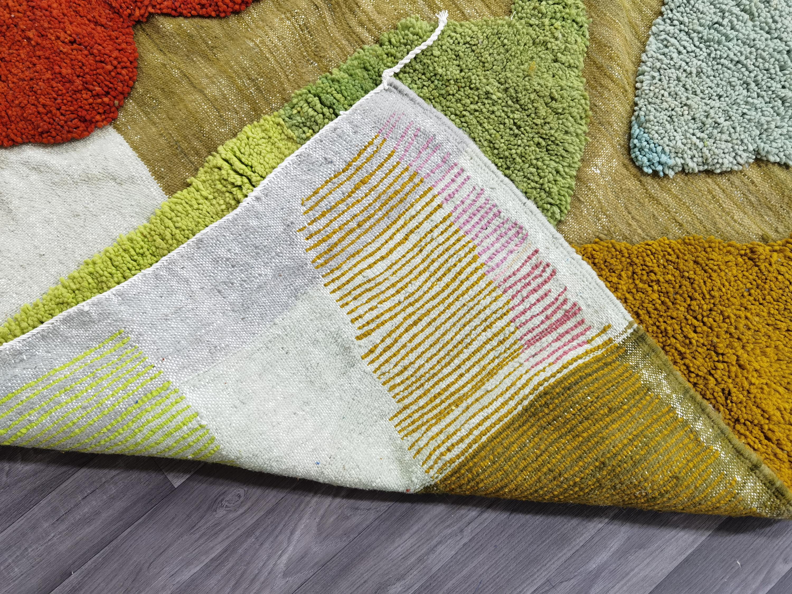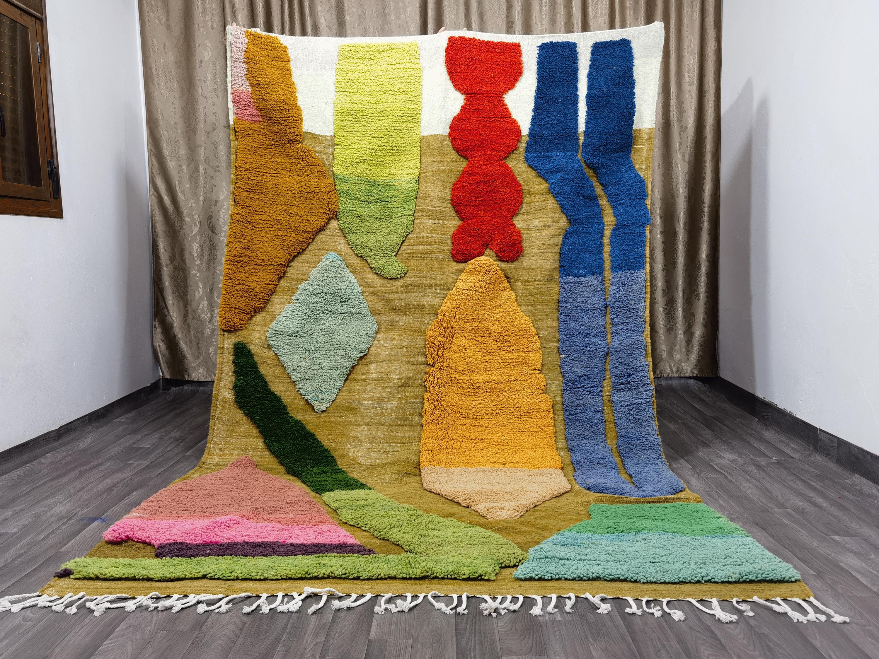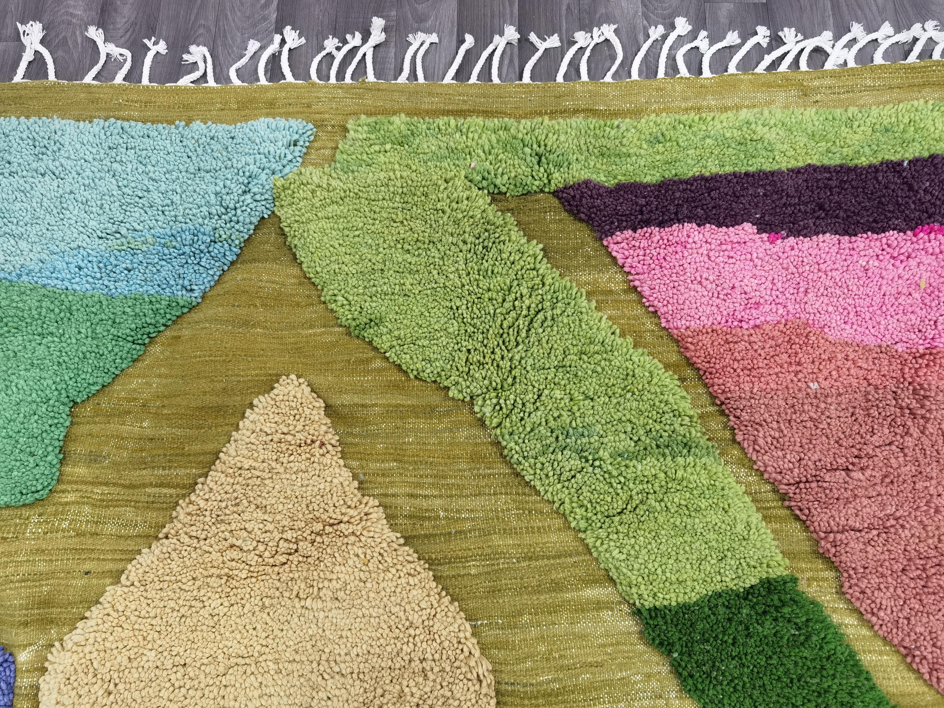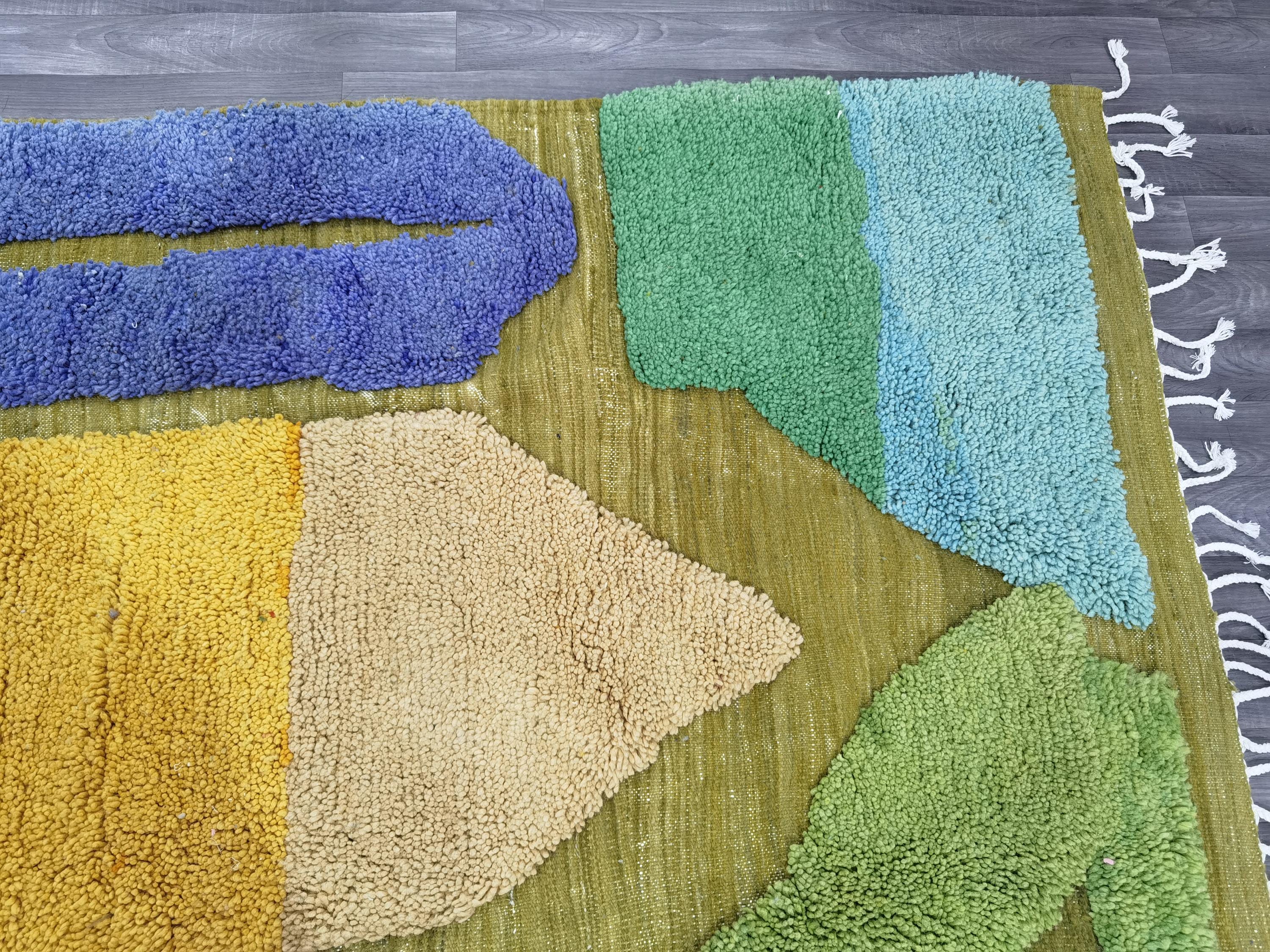 Beni Ourain Colorful Rug, Wool Rug, Green Moroccan Carpet, Soft Area Rug, Rugs For Living Room, Multicolored Rug .