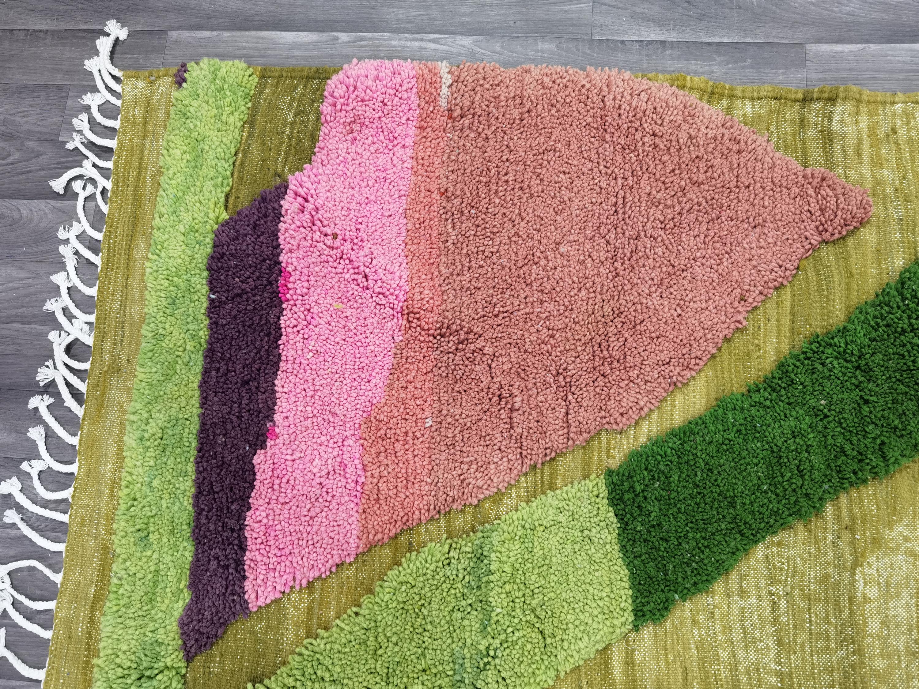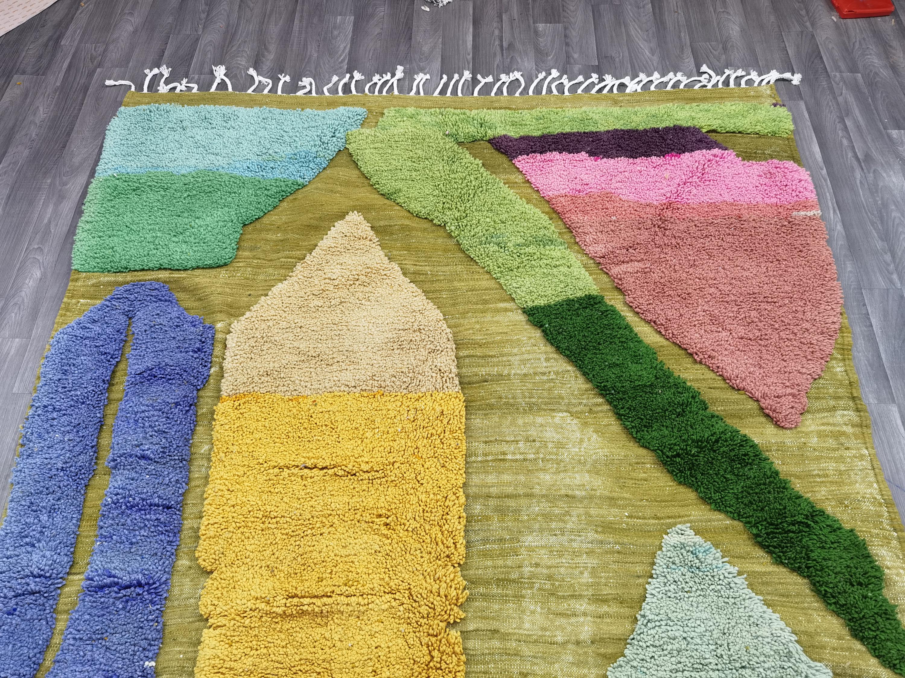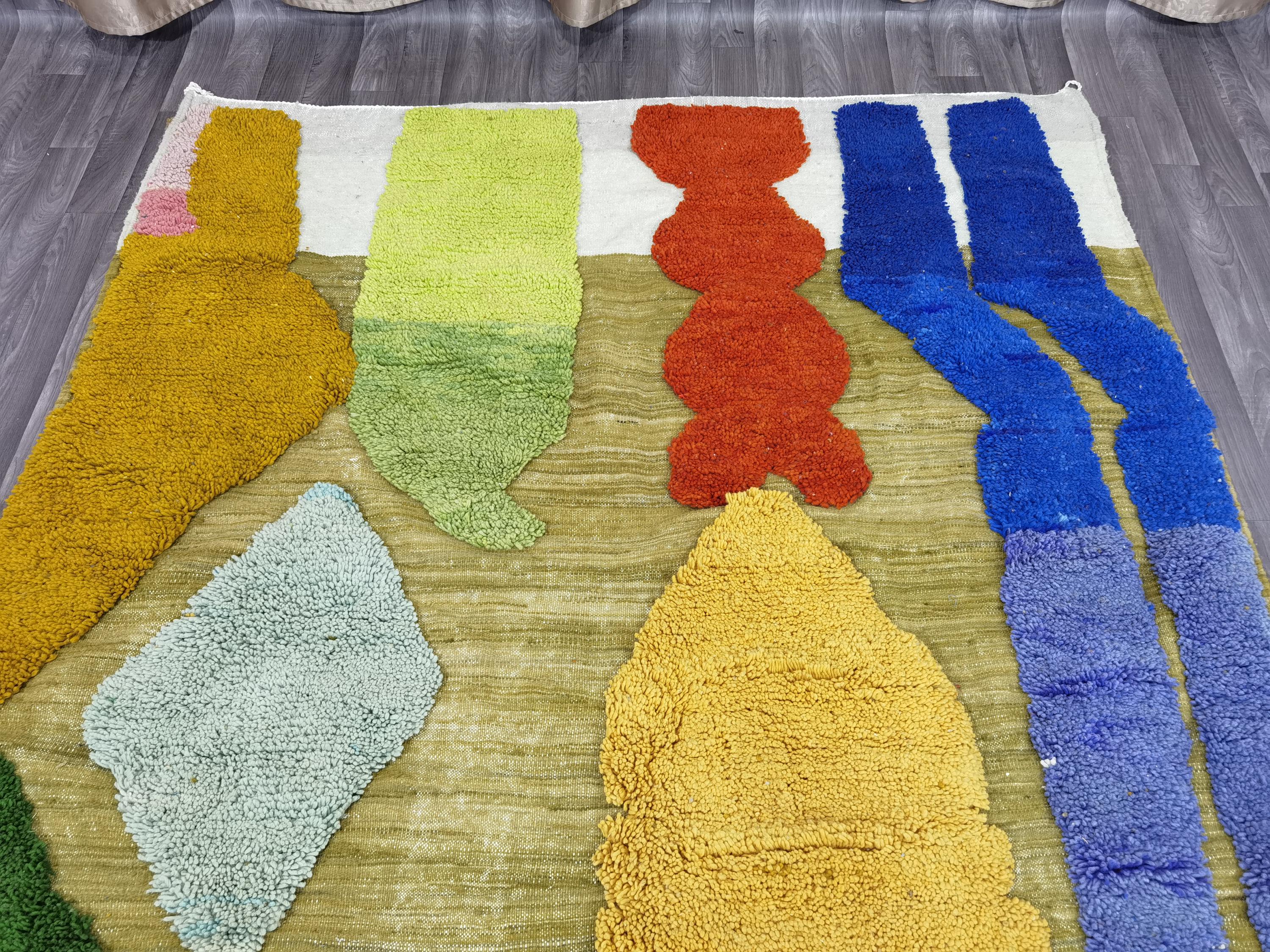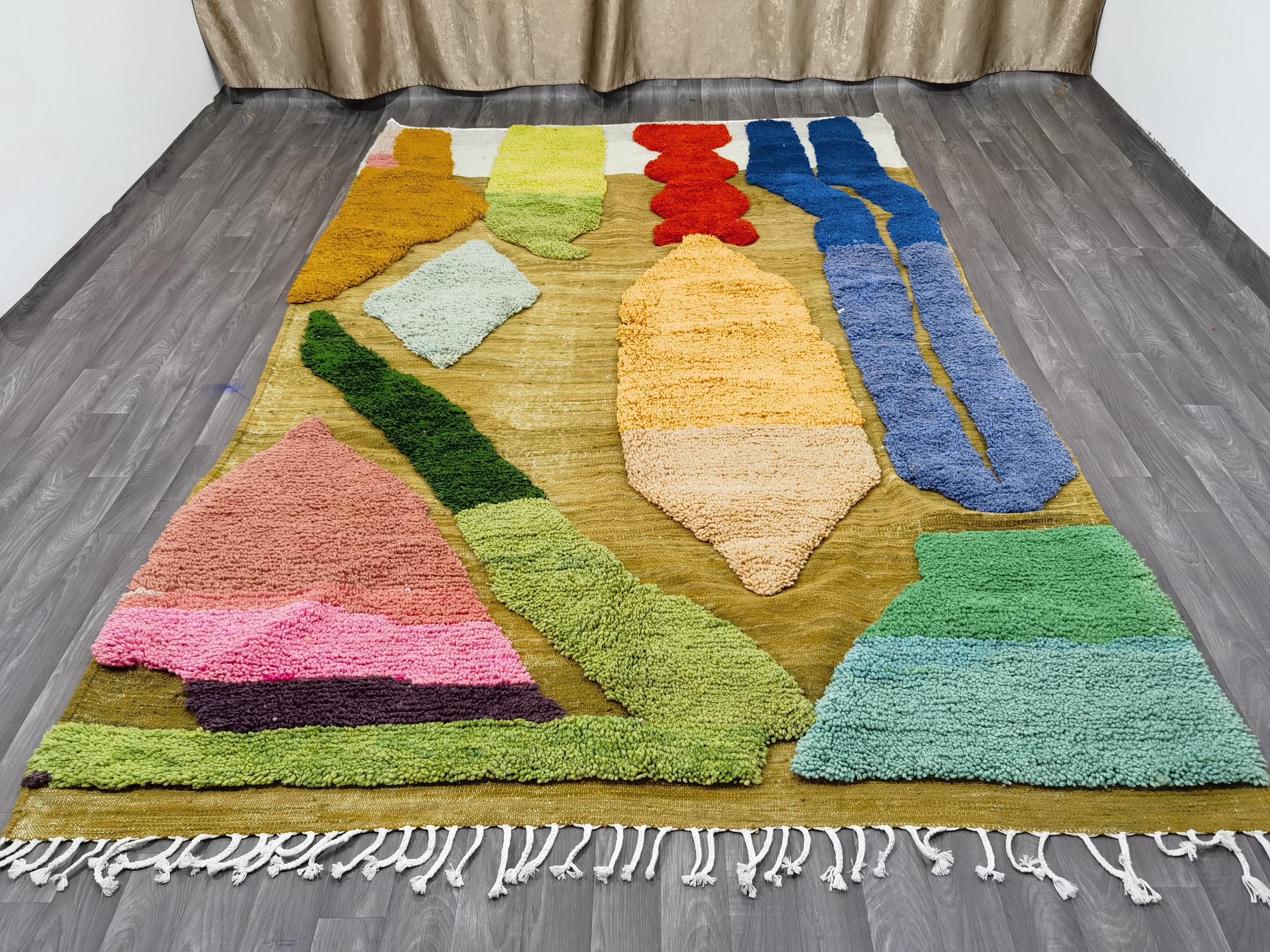 Beni Ourain Colorful Rug, Wool Rug, Green Moroccan Carpet, Soft Area Rug, Rugs For Living Room, Multicolored Rug .