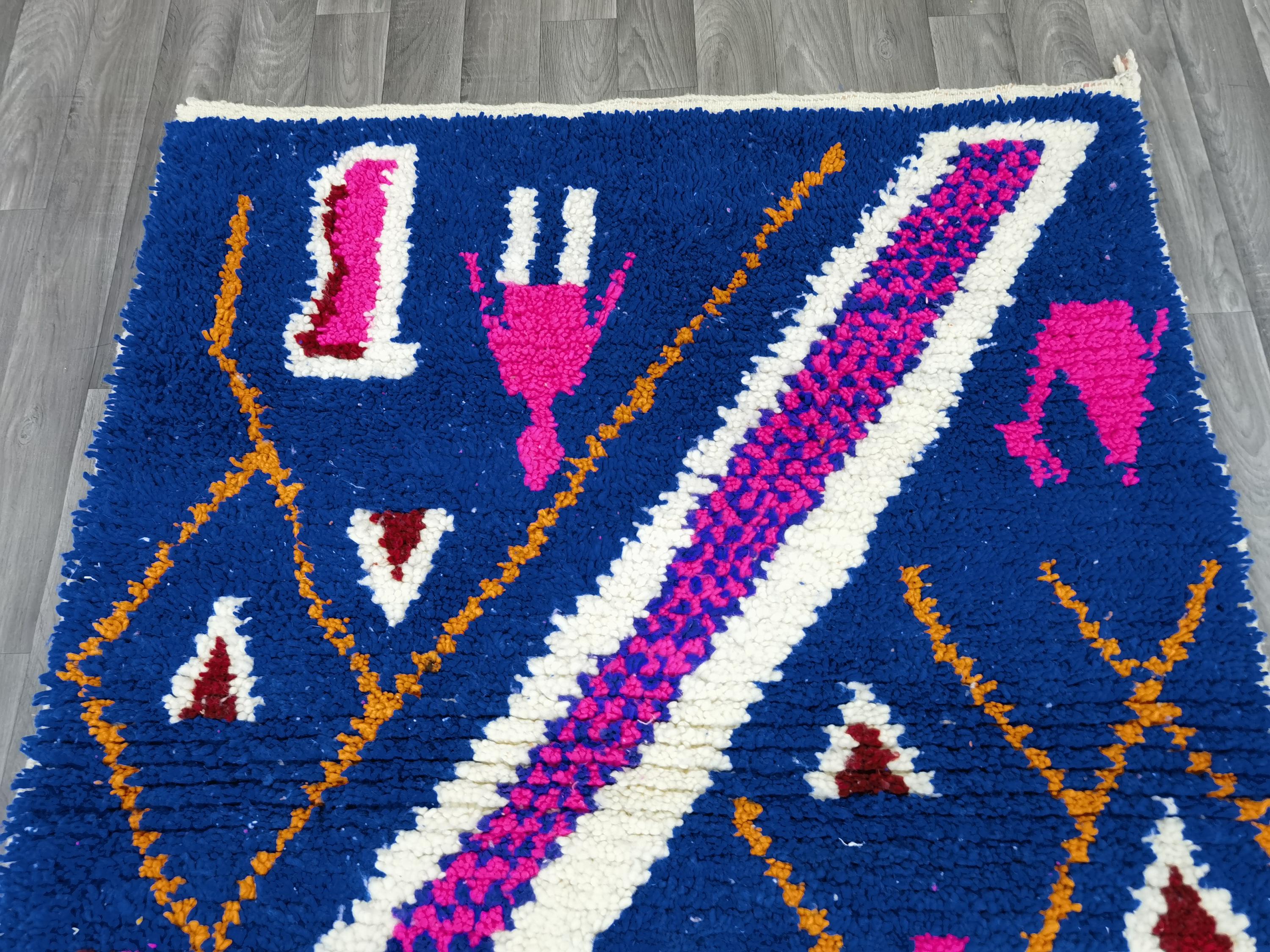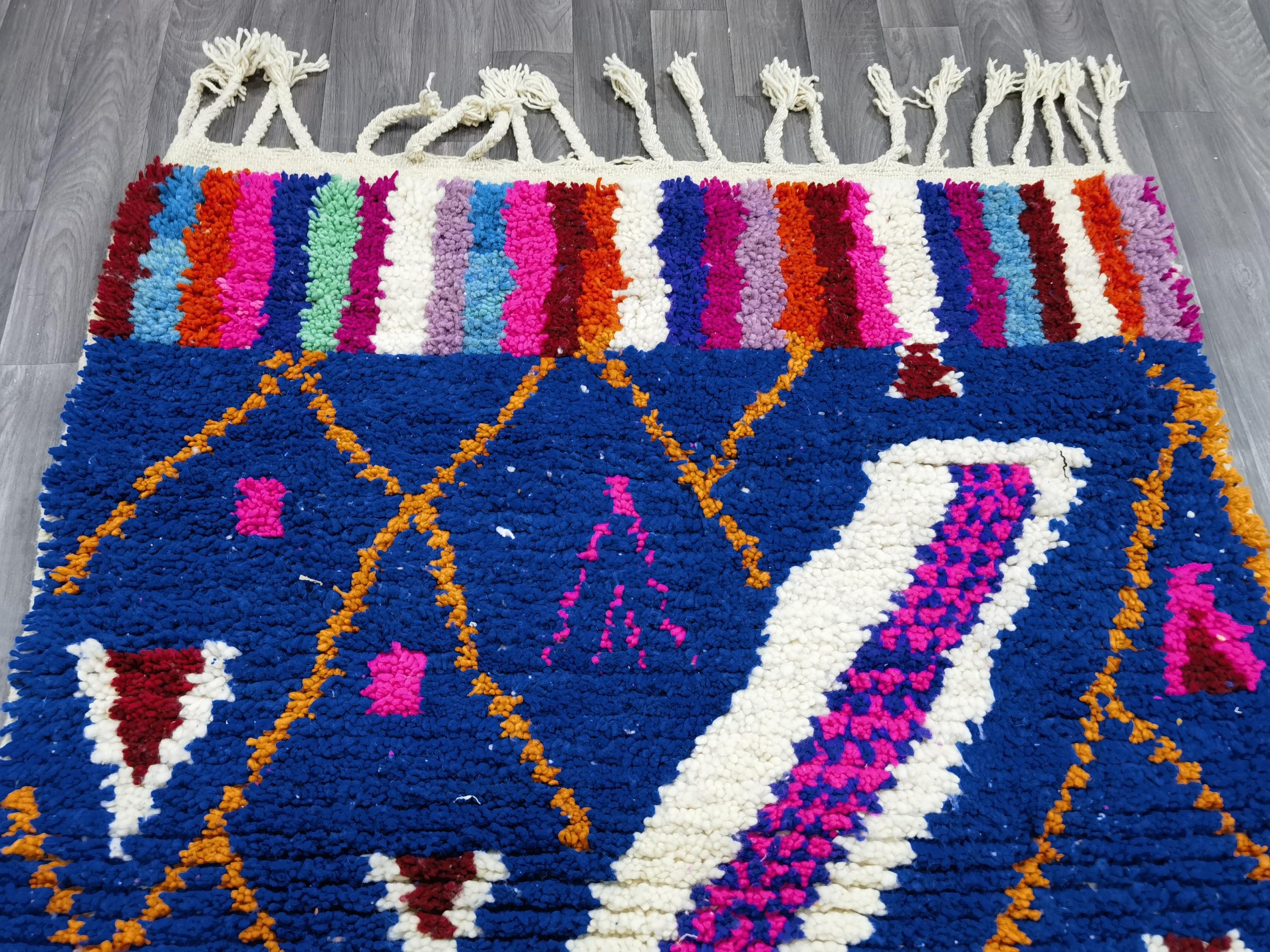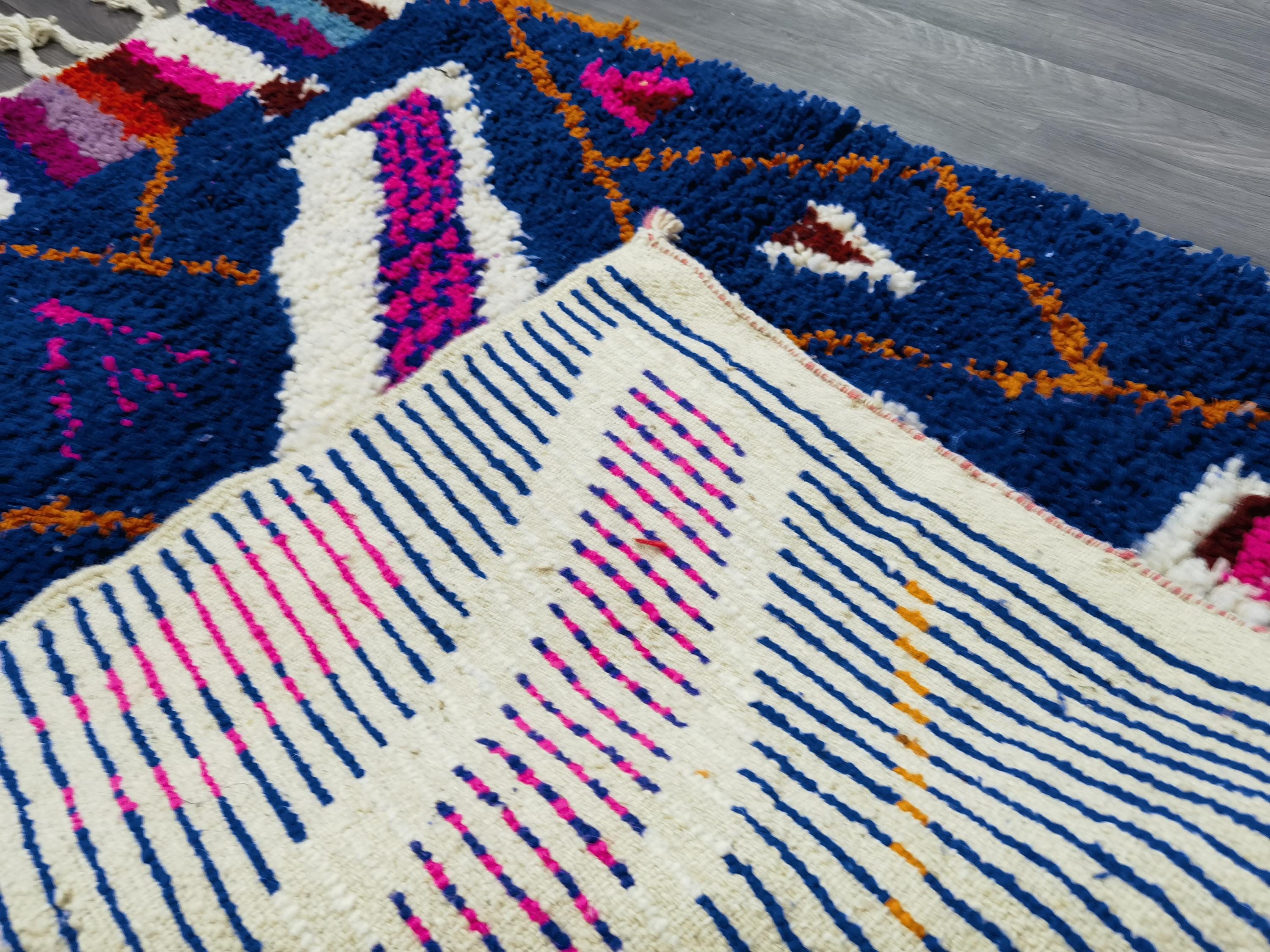 Beni Ourain Rug - Handmade Rug - Custom All Size Rug - Wool Blue Rug - White And Blue Rug - Moroccan Rug, Berber rug .