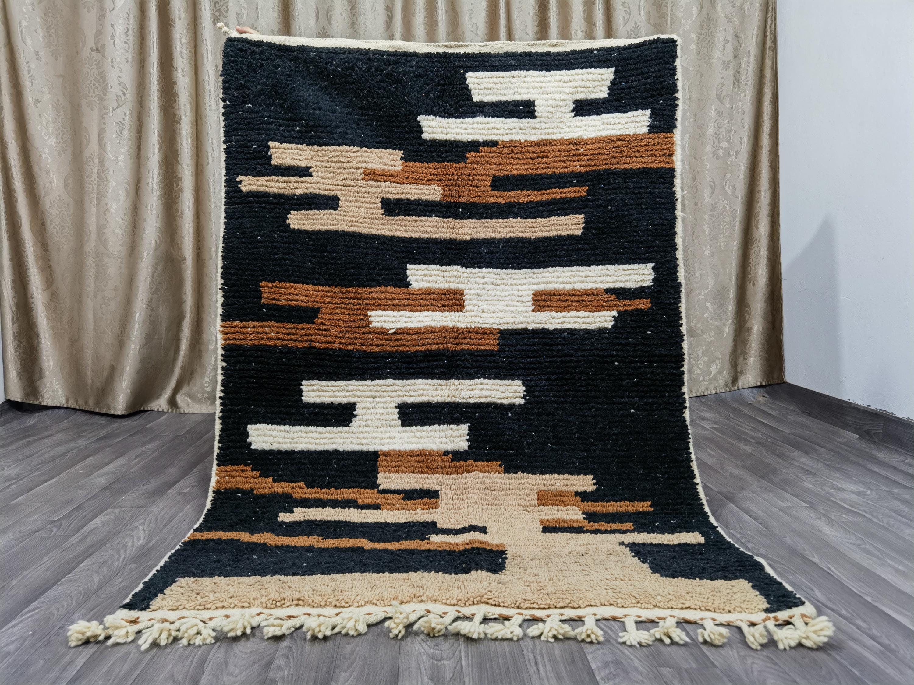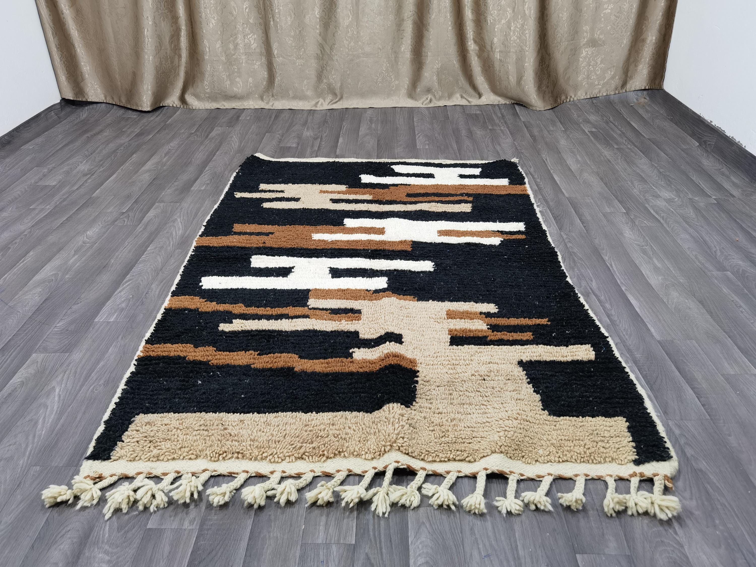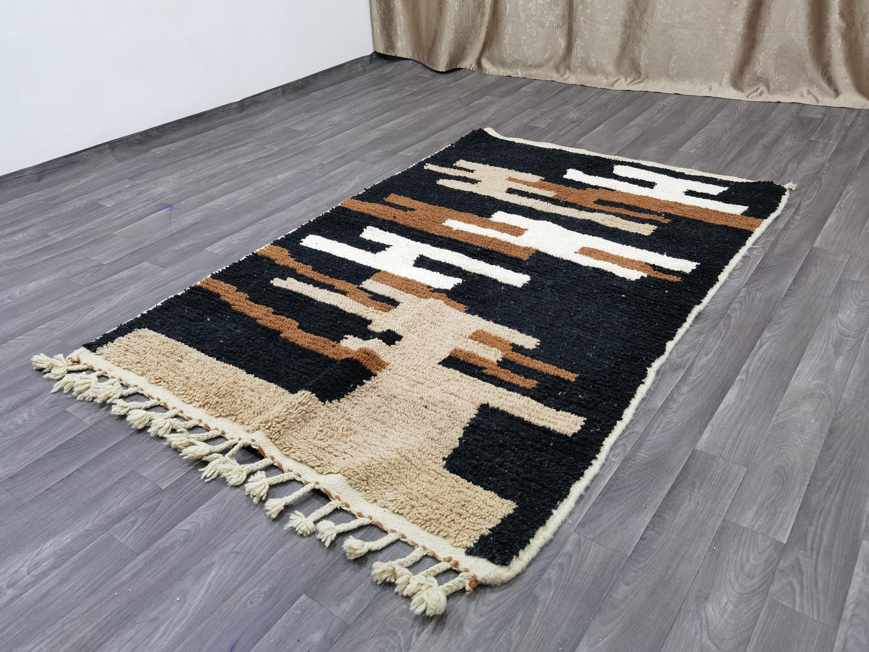 MOROCCAN BLACK RUG , Handmade Rug, Authentic Berber Rug, Bohemian Style Rug For Living Room .