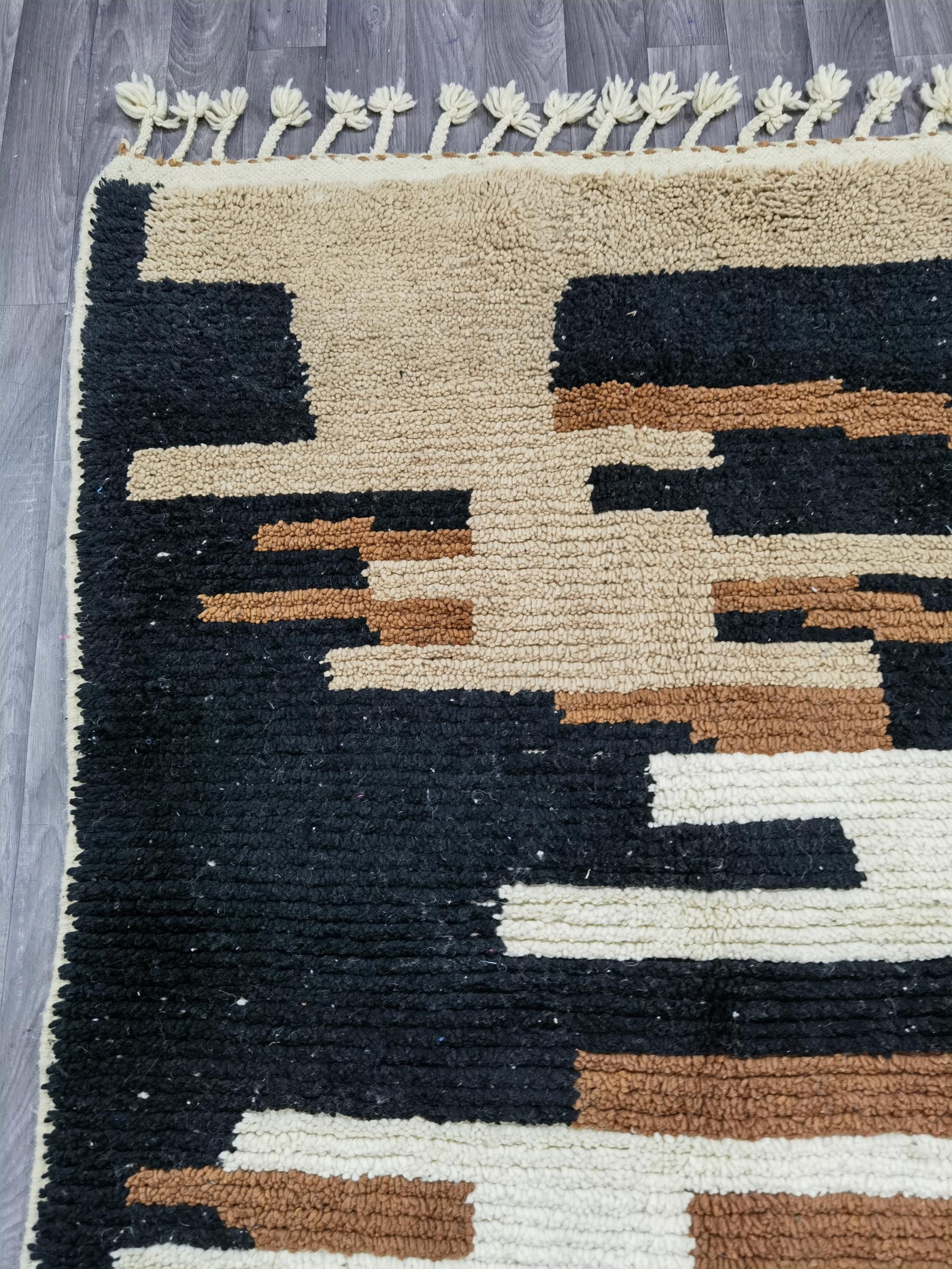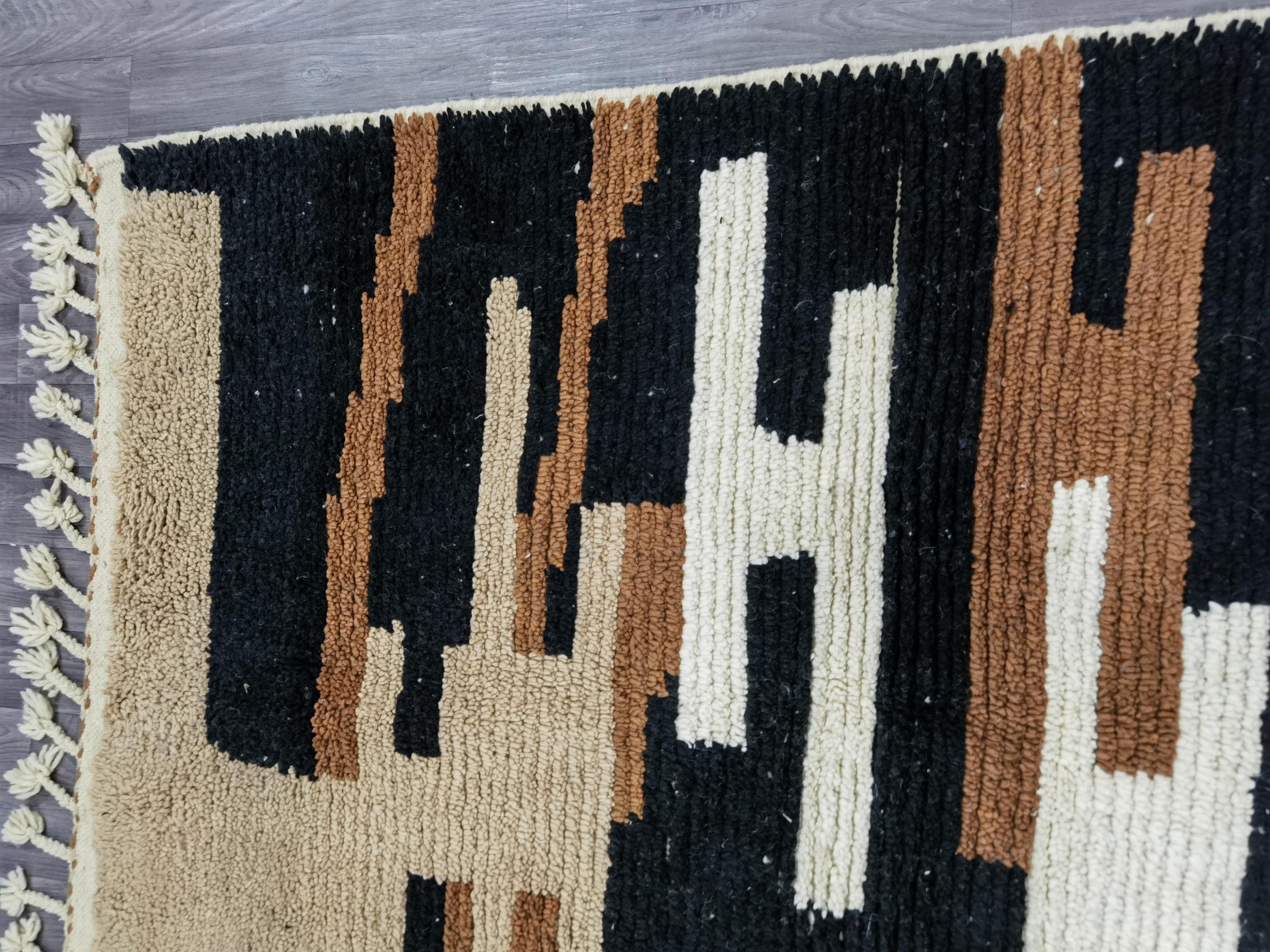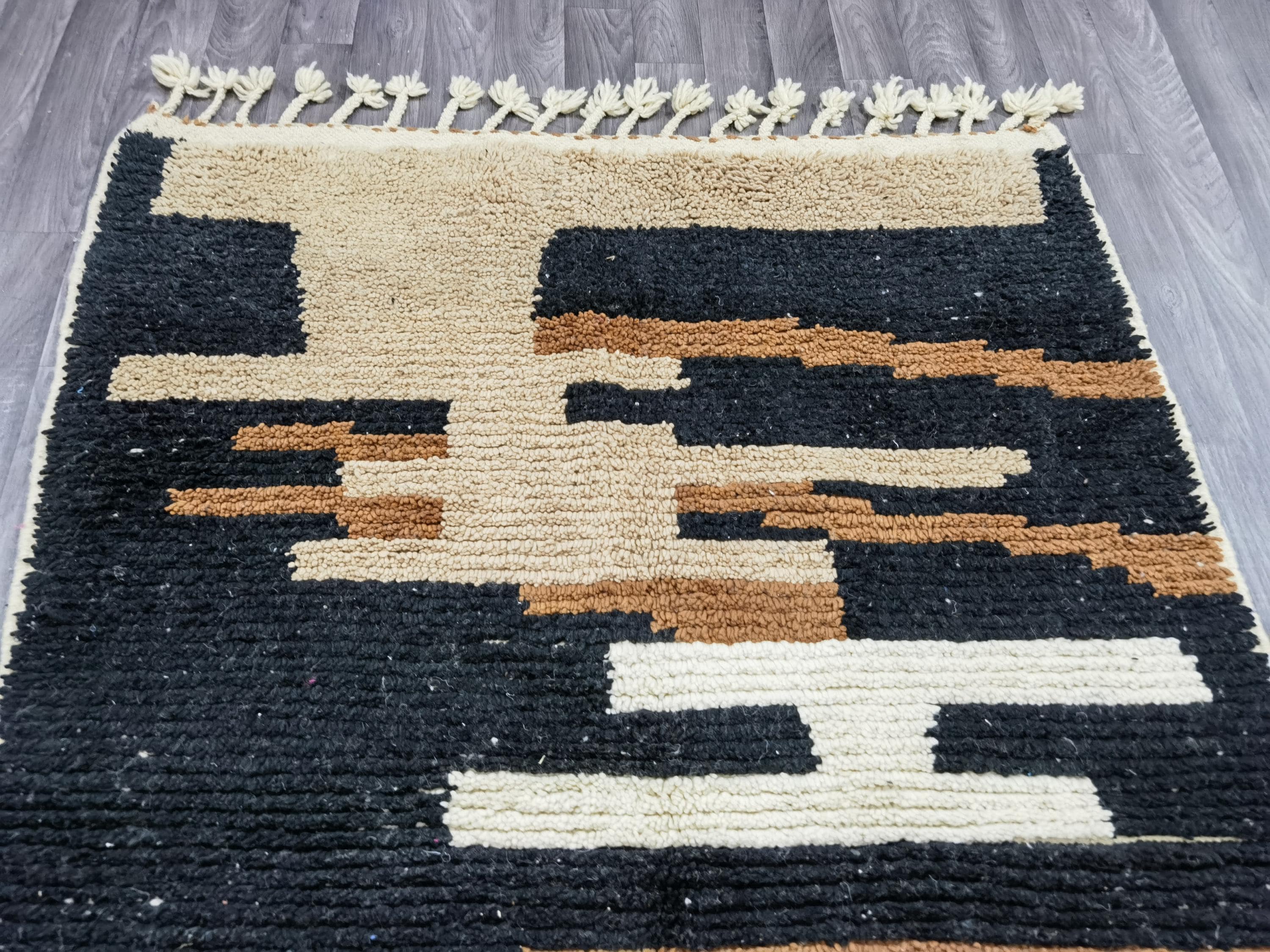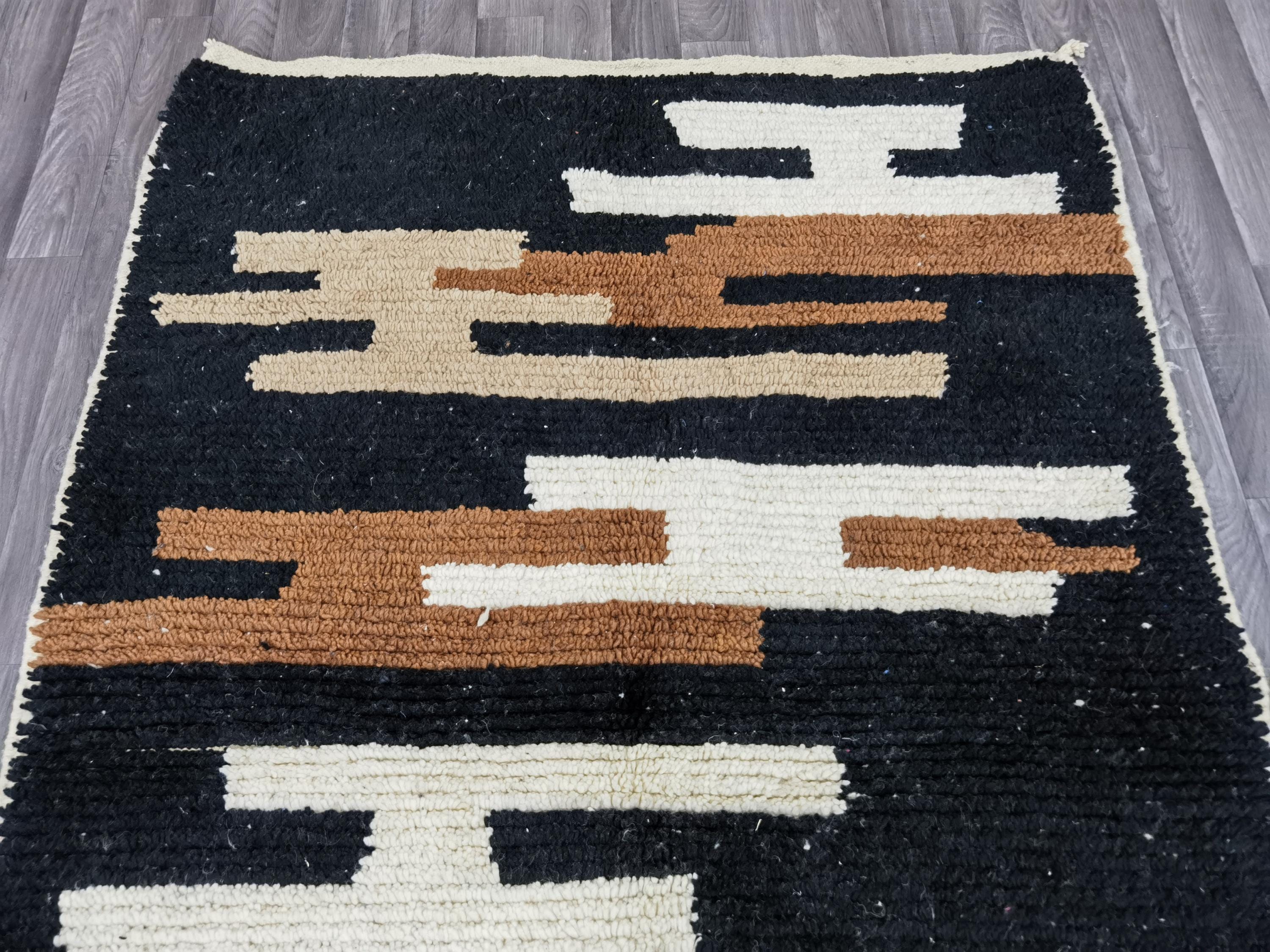 MOROCCAN BLACK RUG , Handmade Rug, Authentic Berber Rug, Bohemian Style Rug For Living Room .