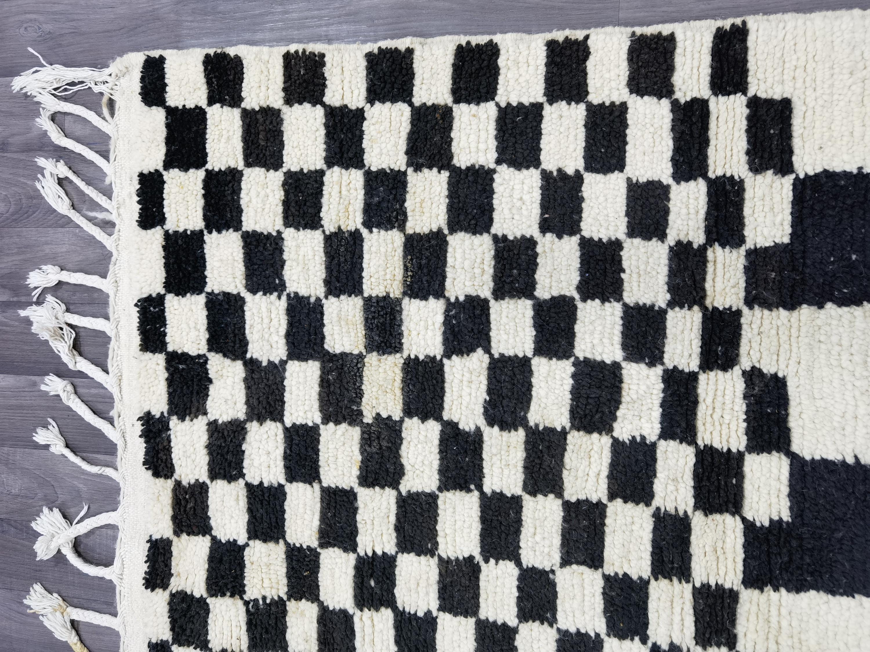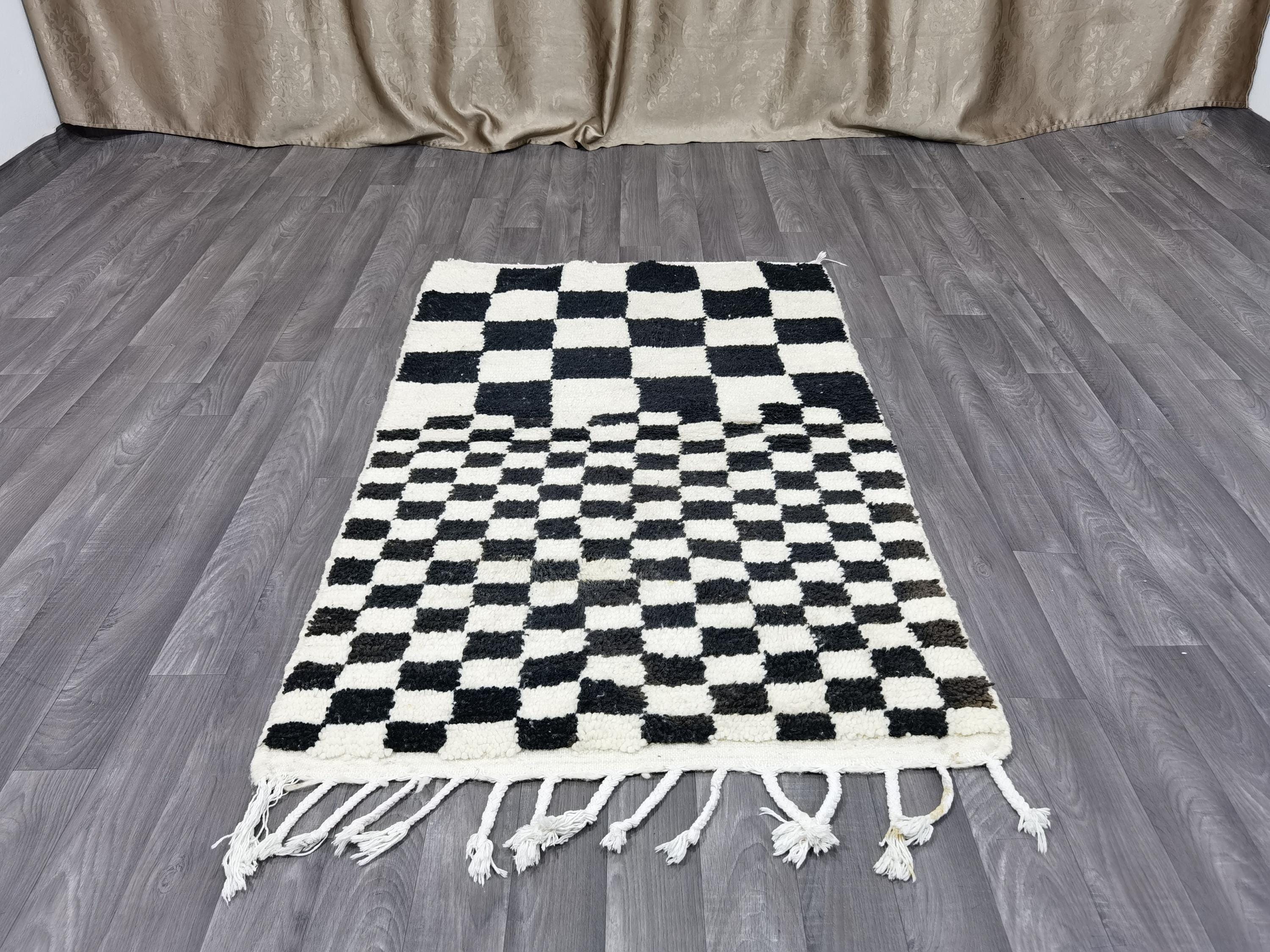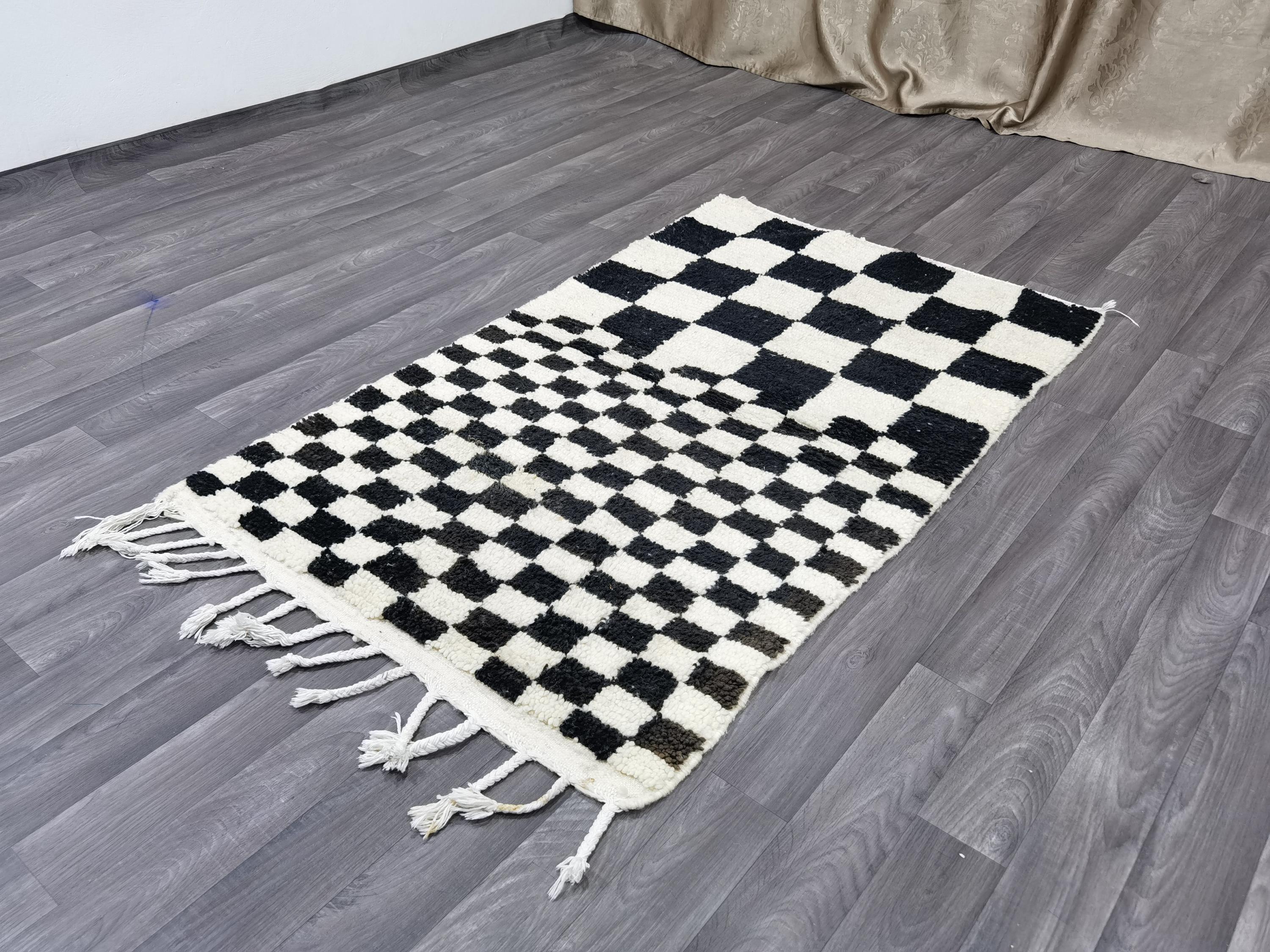 MOROCCAN BLACK & WHITE Rug -Moroccan Checkered Rug - Wool Berber rug - Authentic Morrocan Rug - Rugs for Living Room .