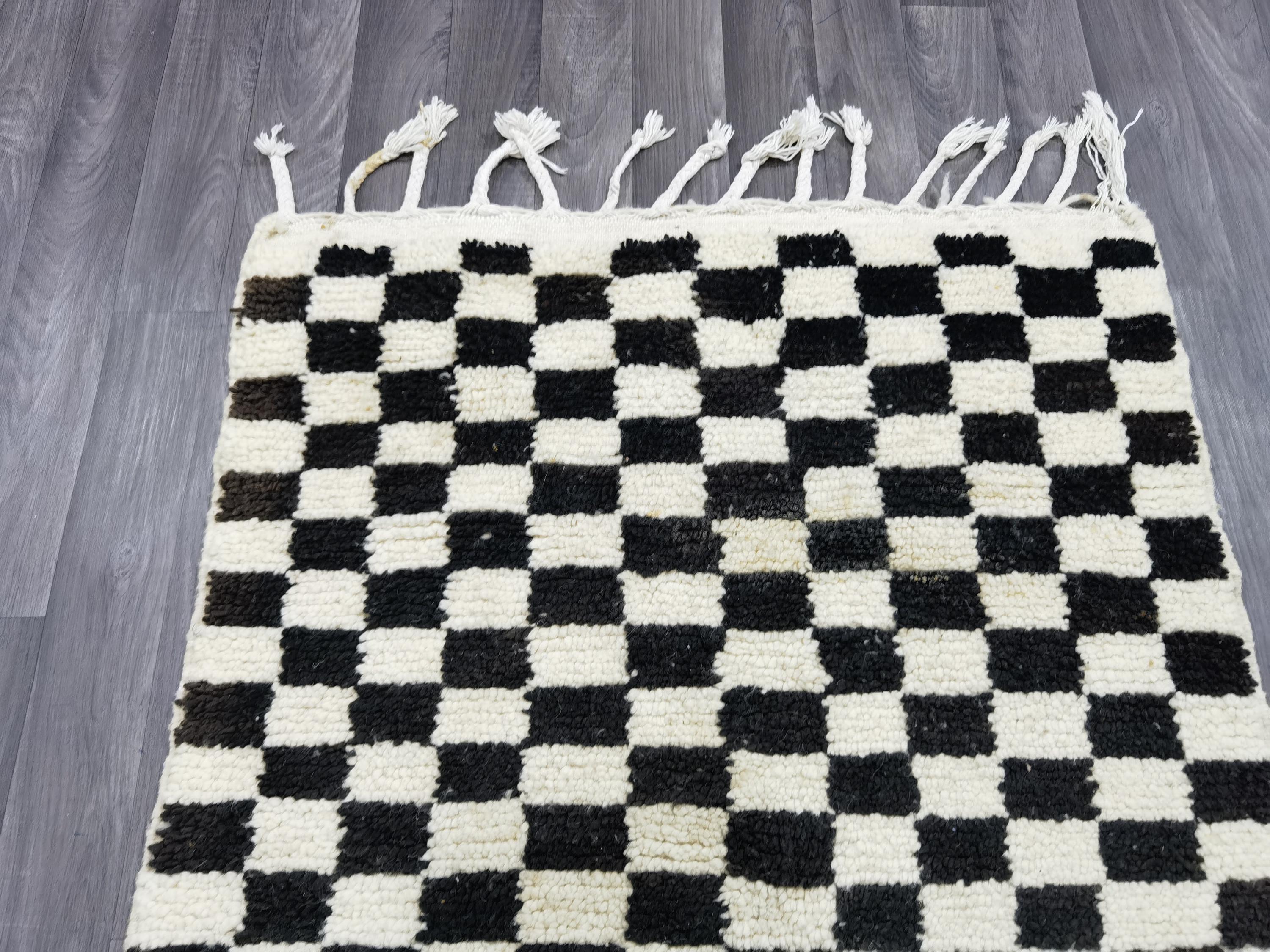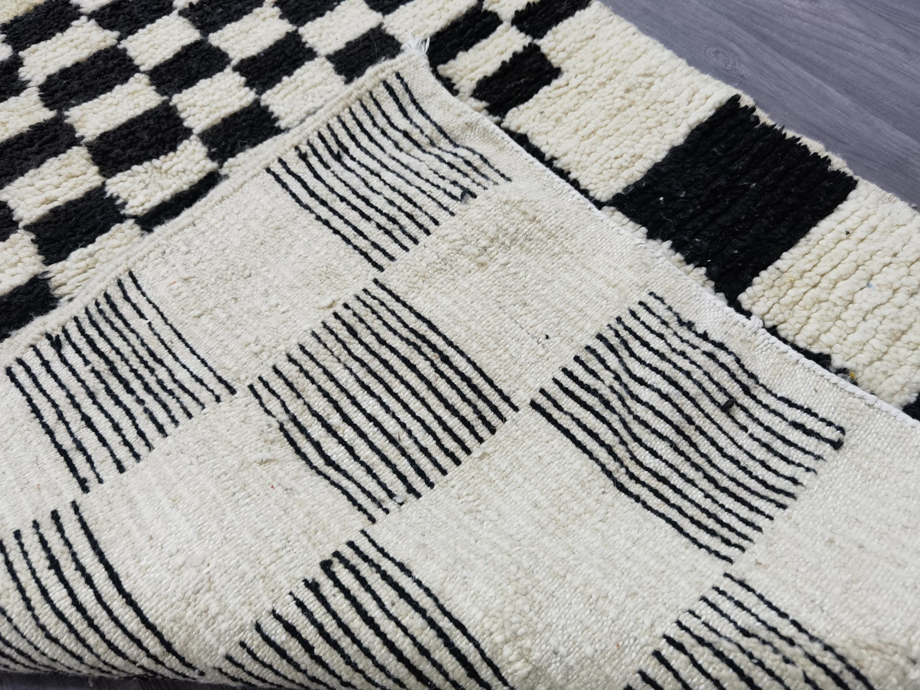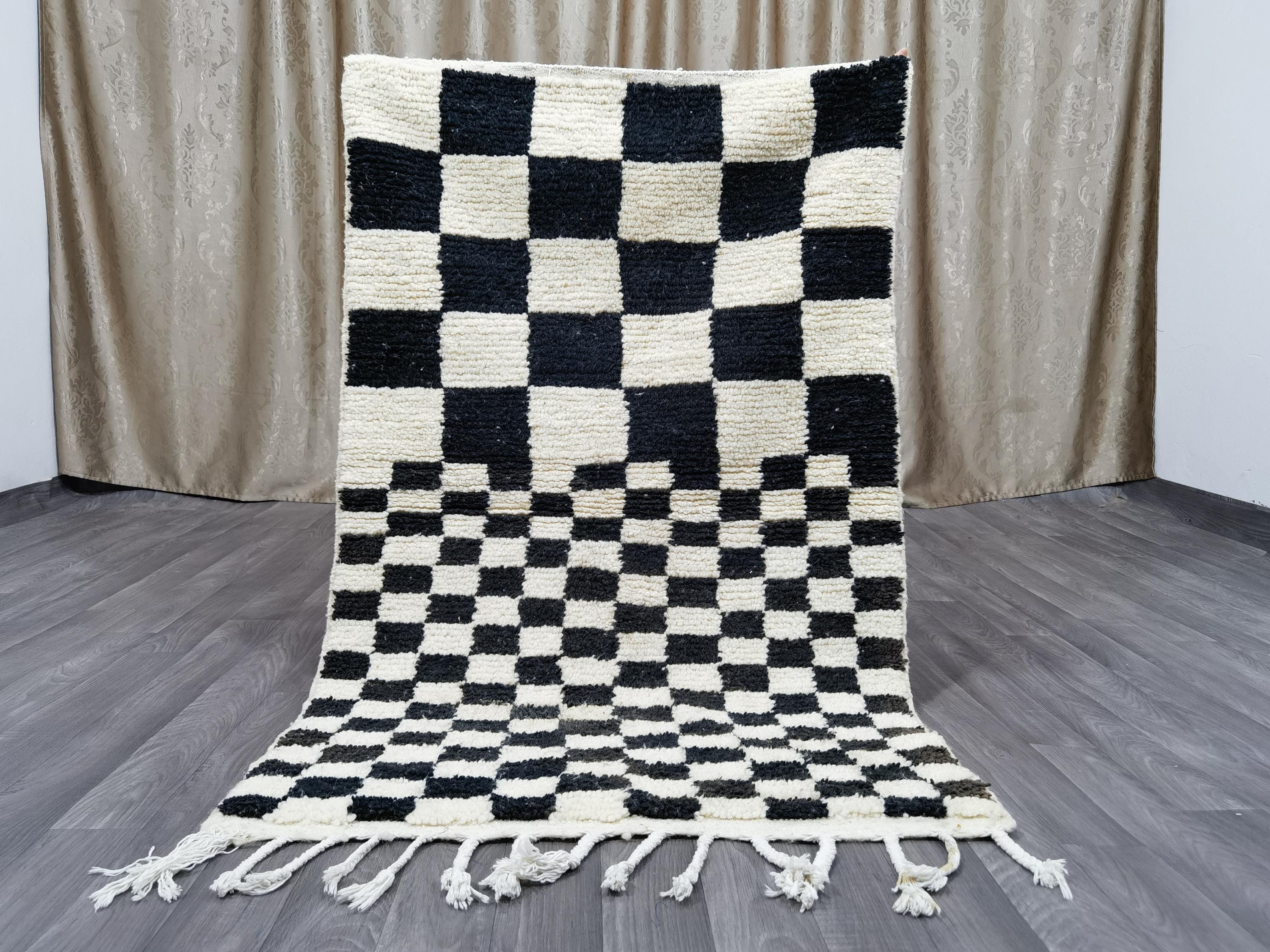 MOROCCAN BLACK & WHITE Rug -Moroccan Checkered Rug - Wool Berber rug - Authentic Morrocan Rug - Rugs for Living Room .