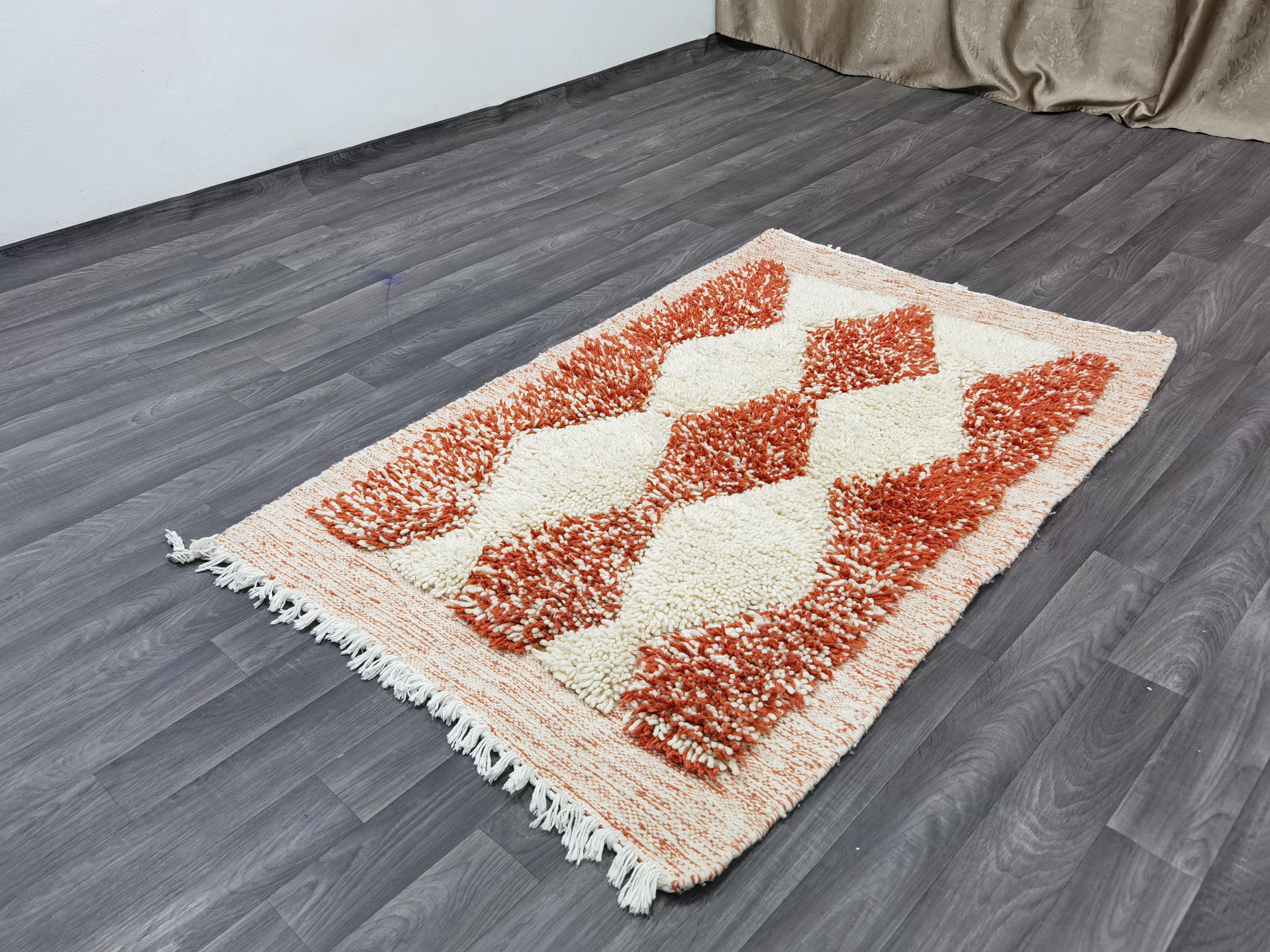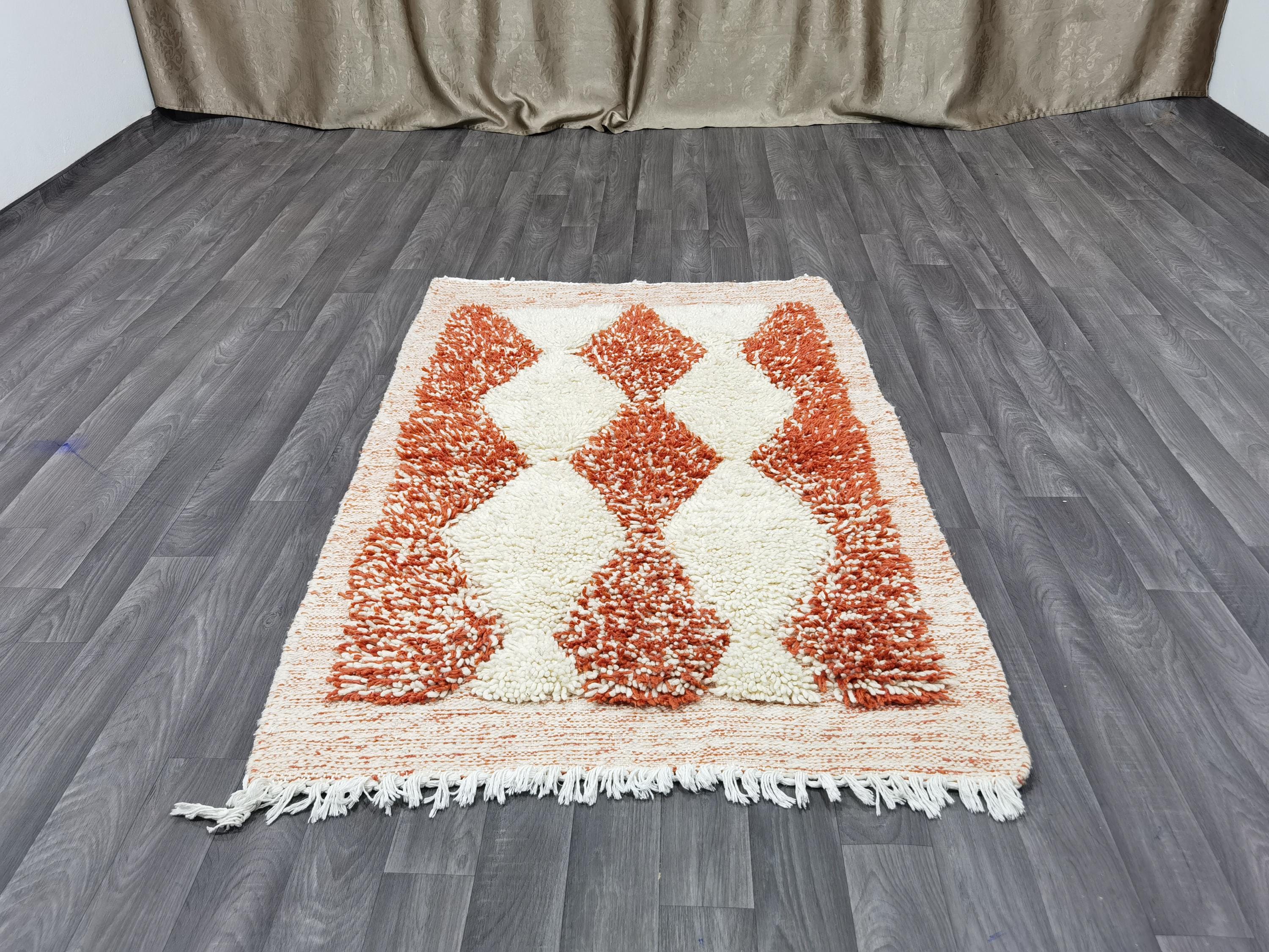 MOROCCAN ORANGE RUG - Handmade Morrocan Rug, Authentic Berber Rug, Bohemian Style Rug For Living Room .