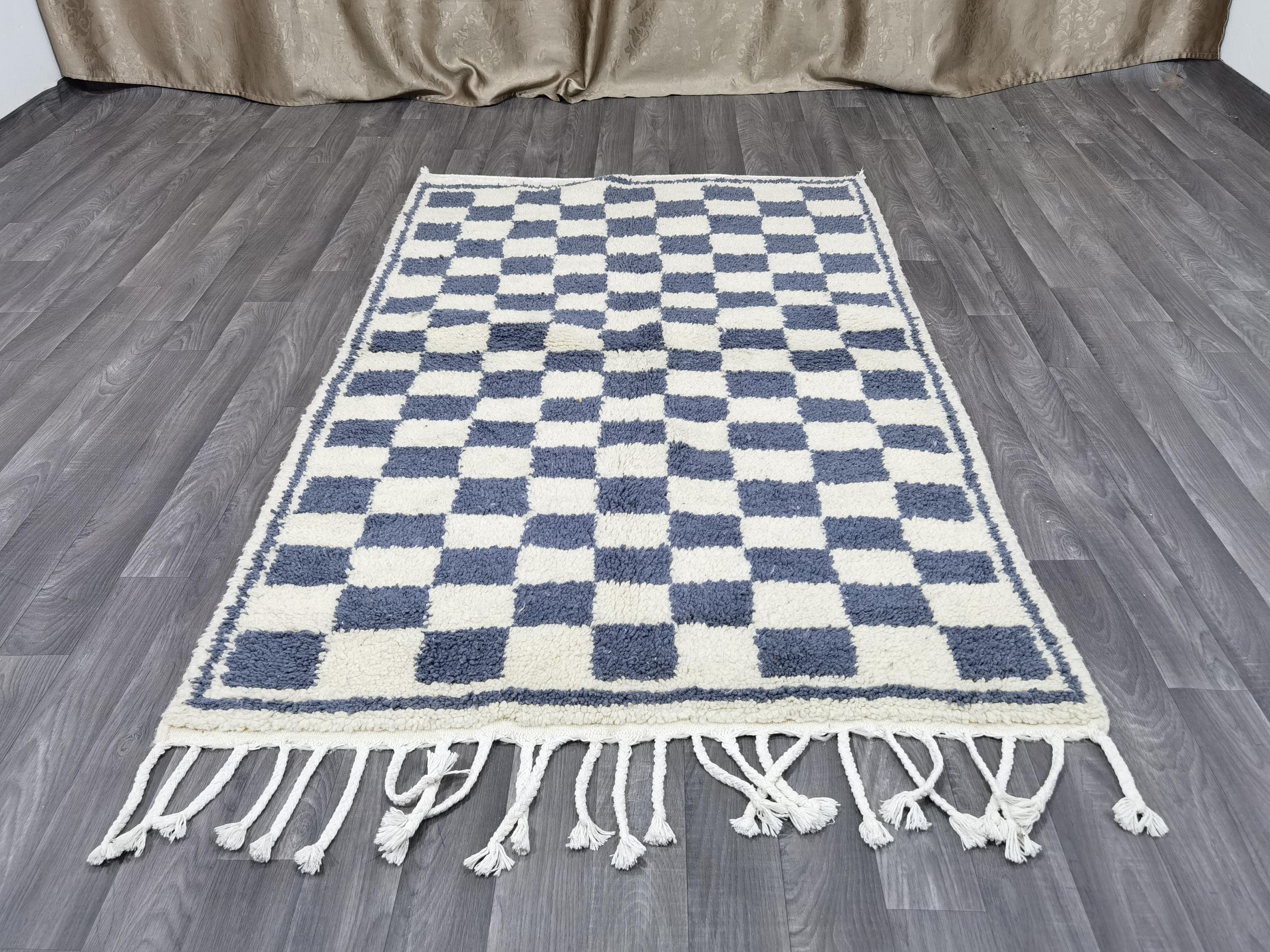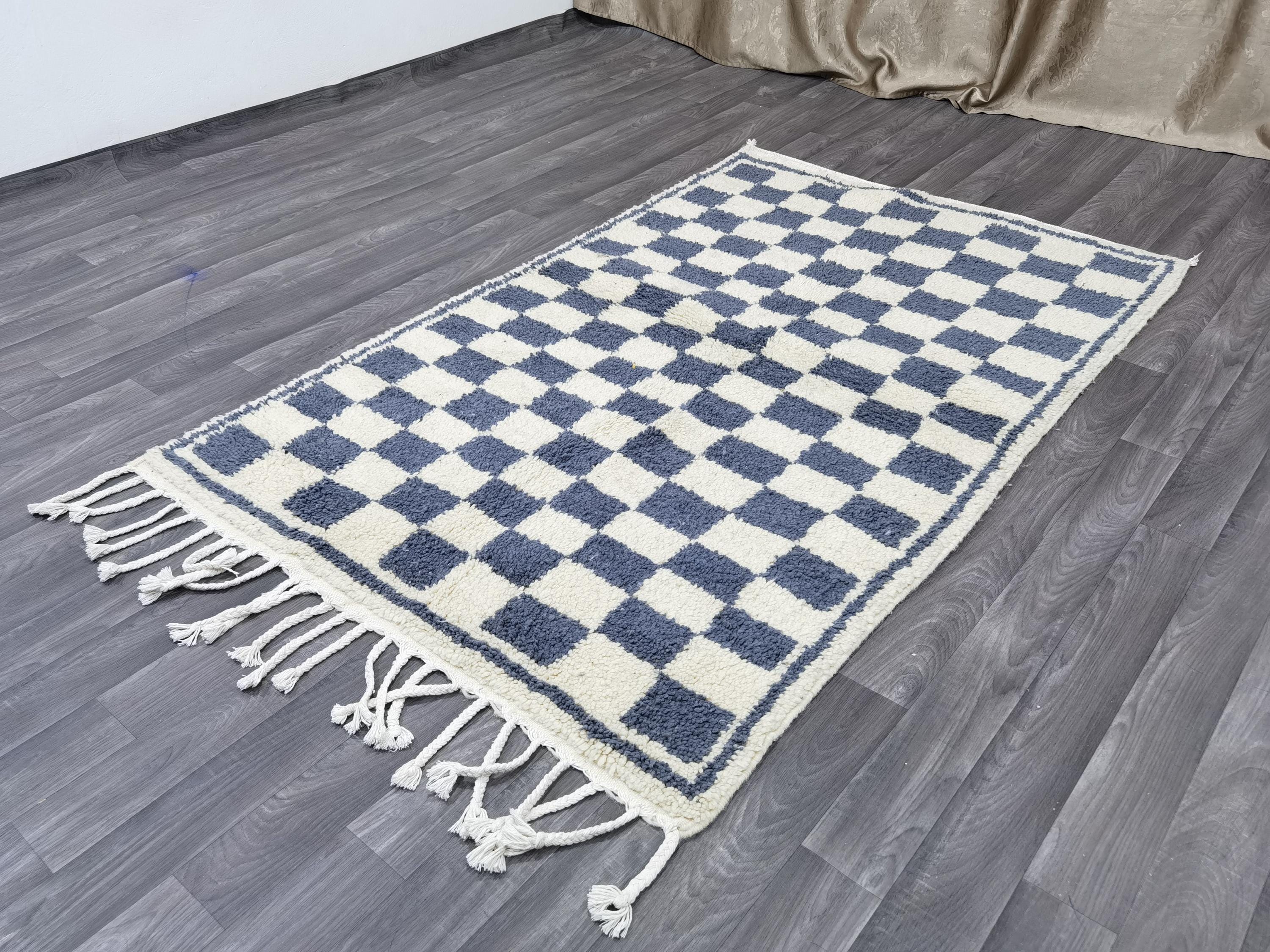Purple checkered Moroccan rug - Custom Handwoven Moroccan rug - Wool Berber rug - Authentic Morrocan Rug - Rugs for Living Room .