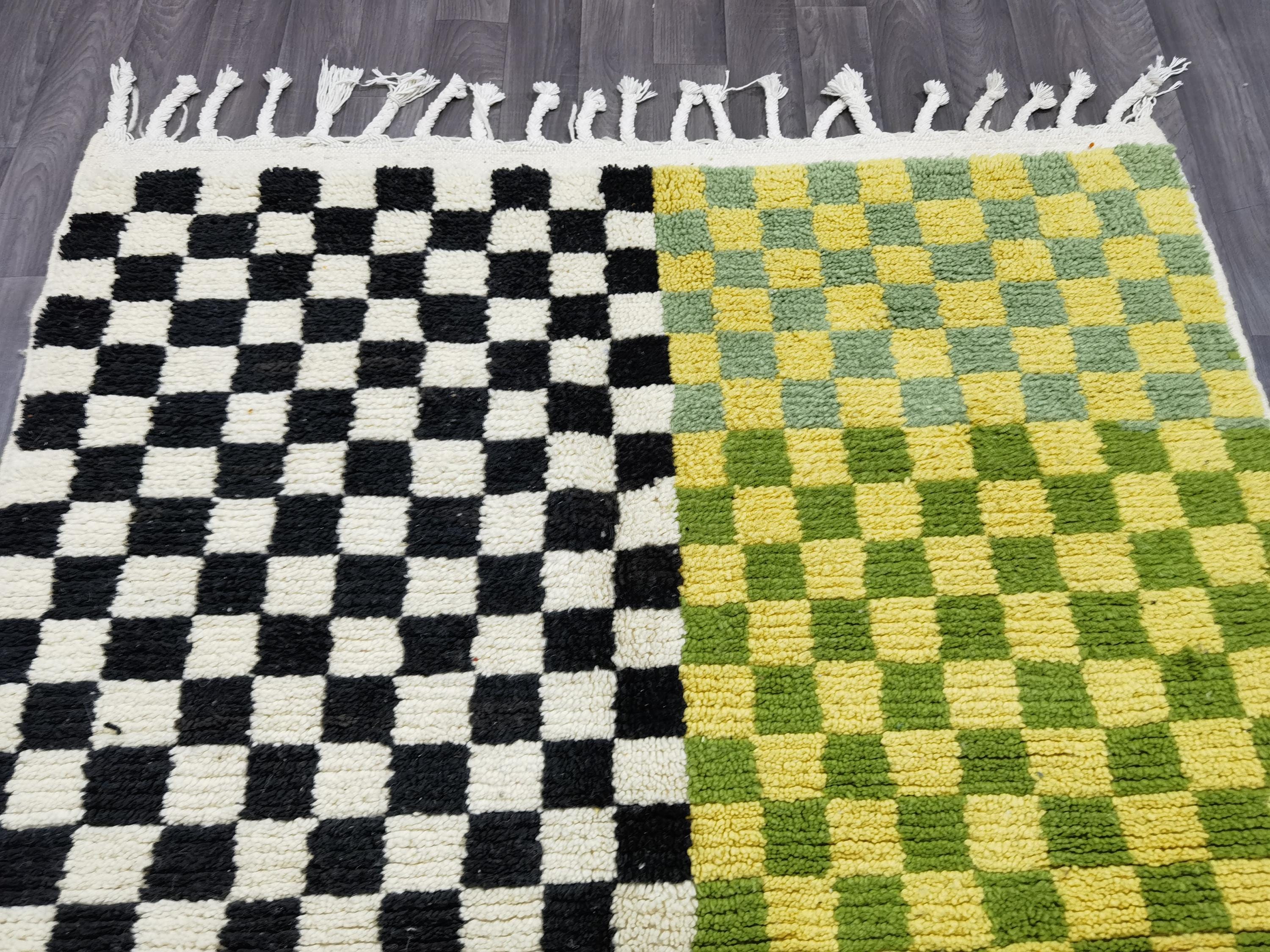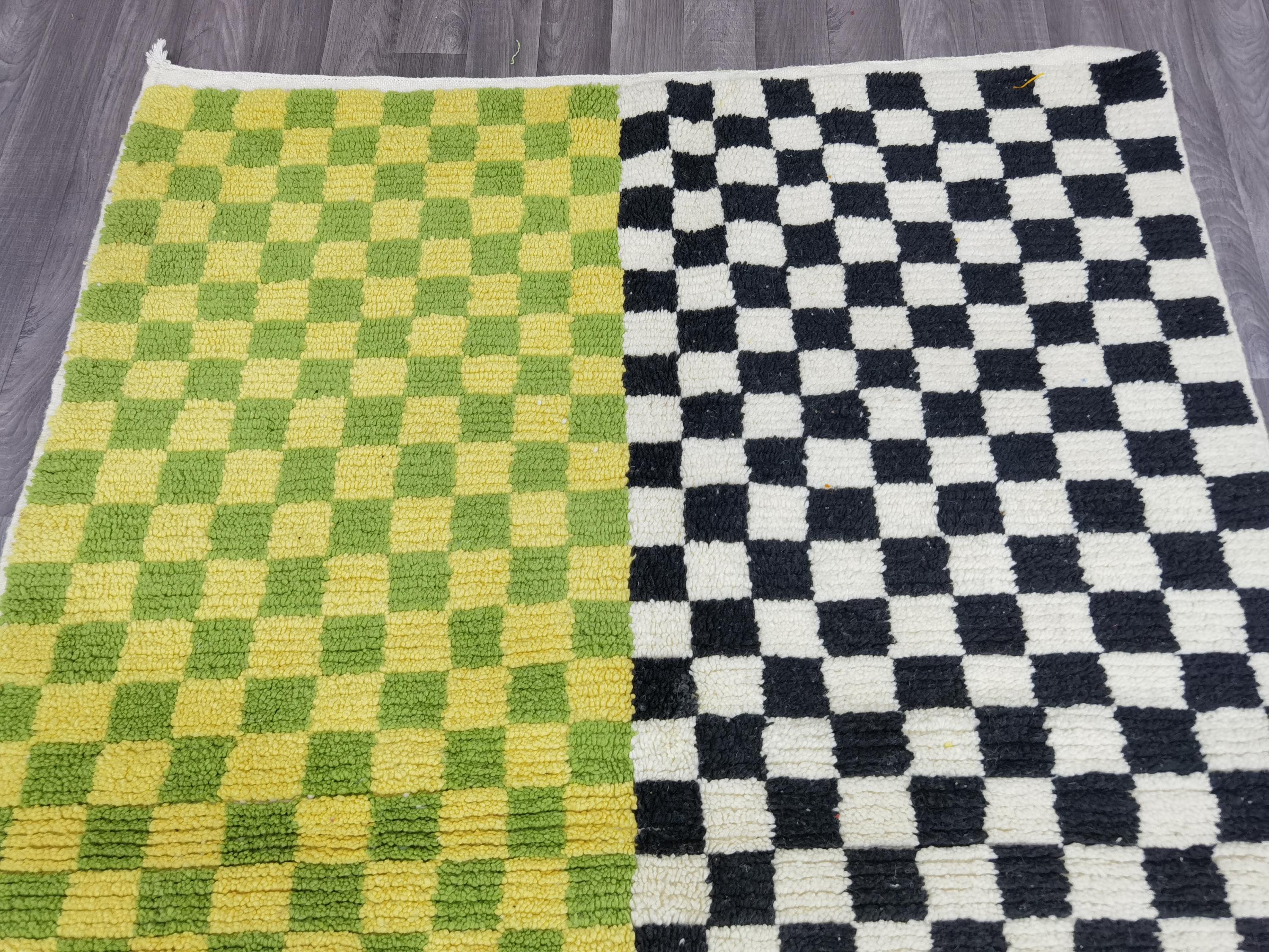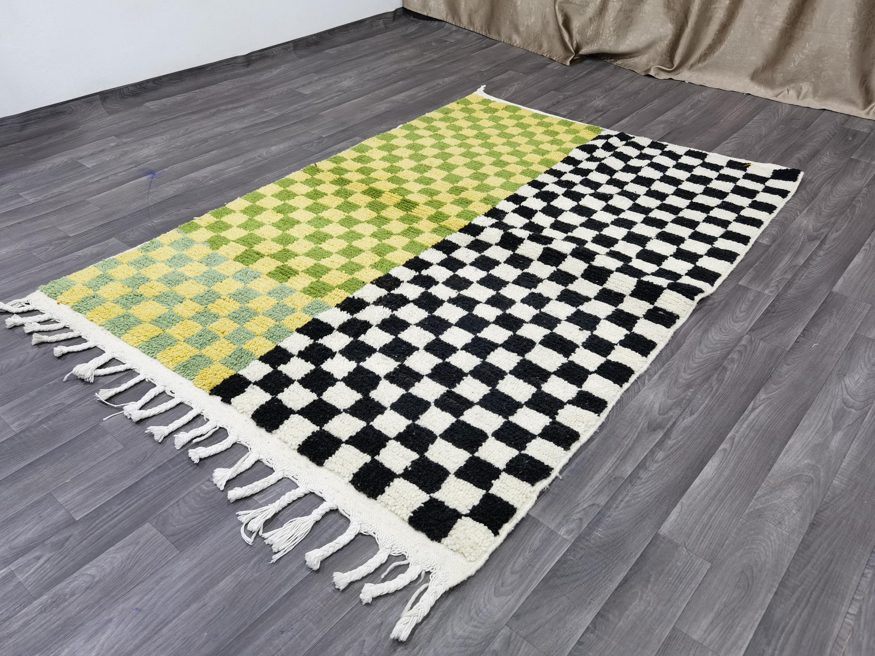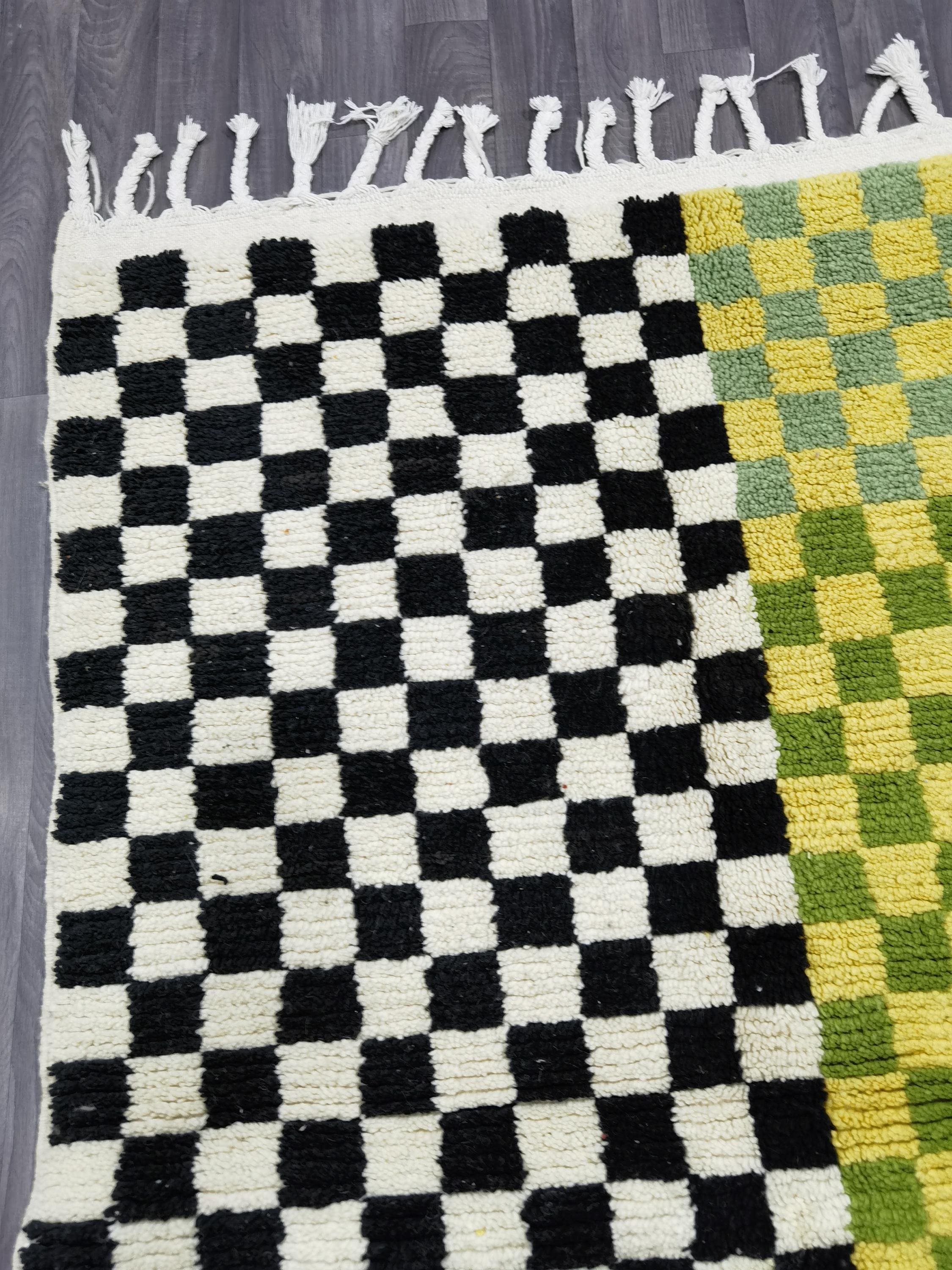 Unique Handmade Moroccan Checkered Rug - Beni Ourain Colorful Rug, Wool Rug, Checkered Rug.