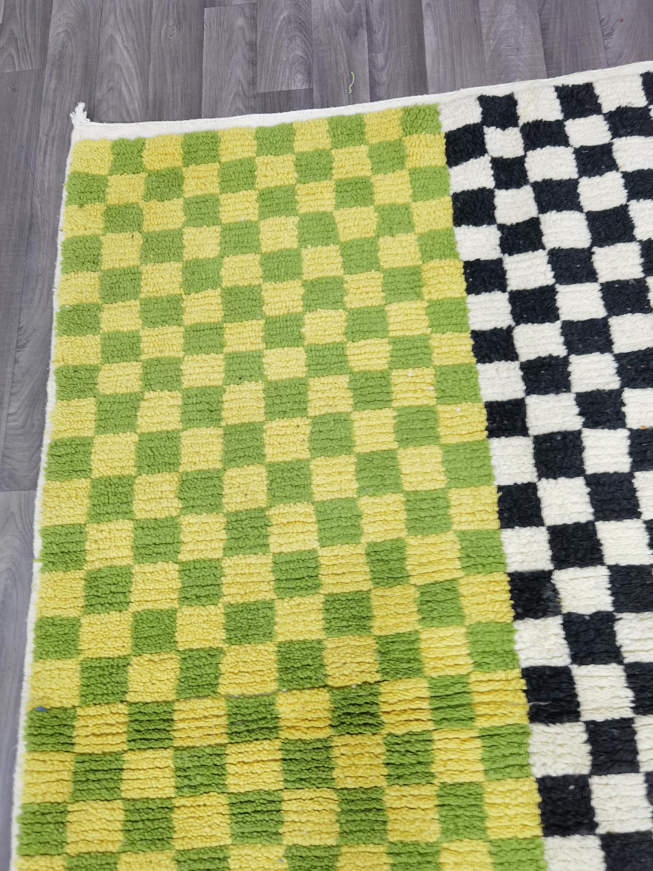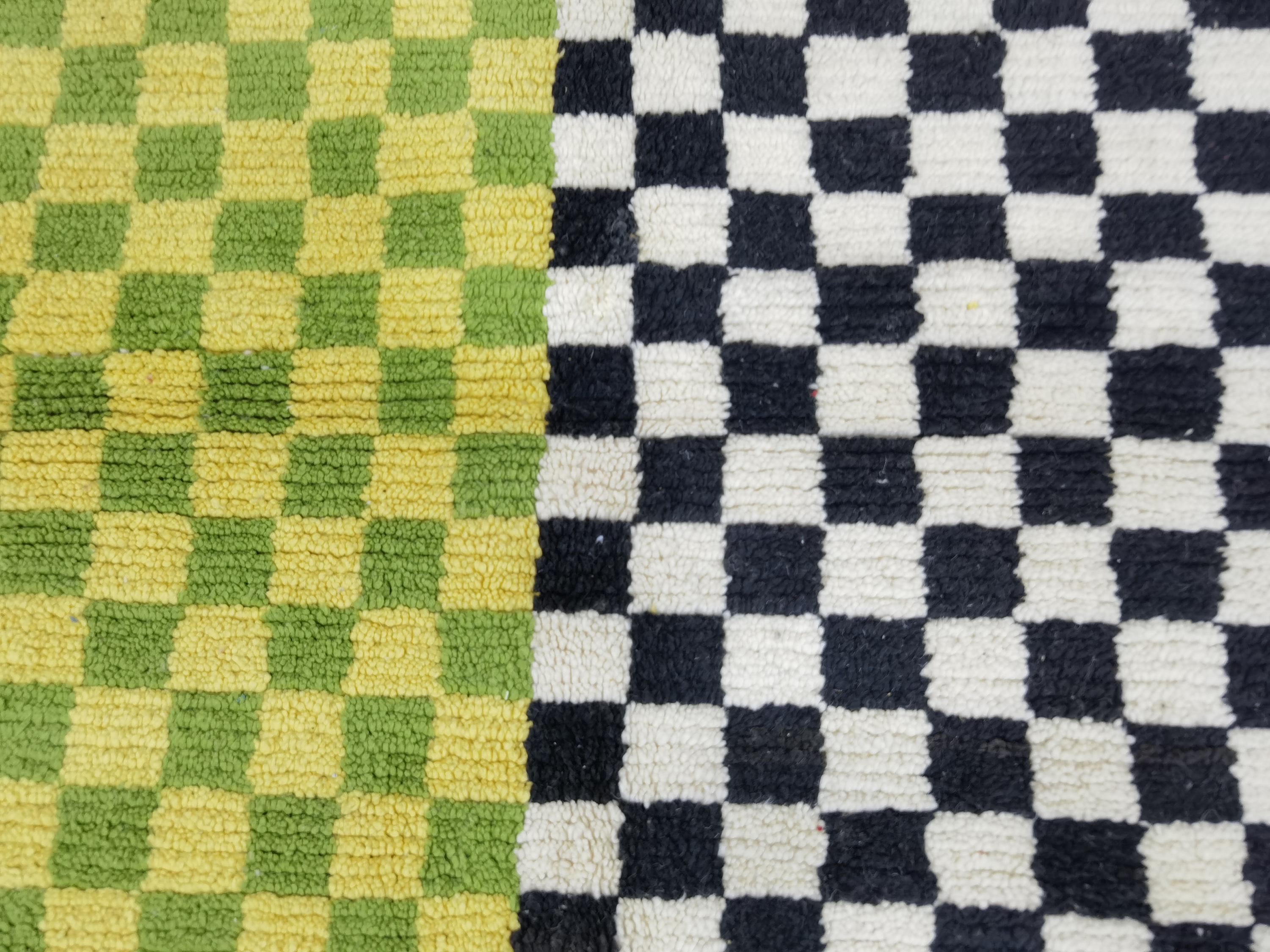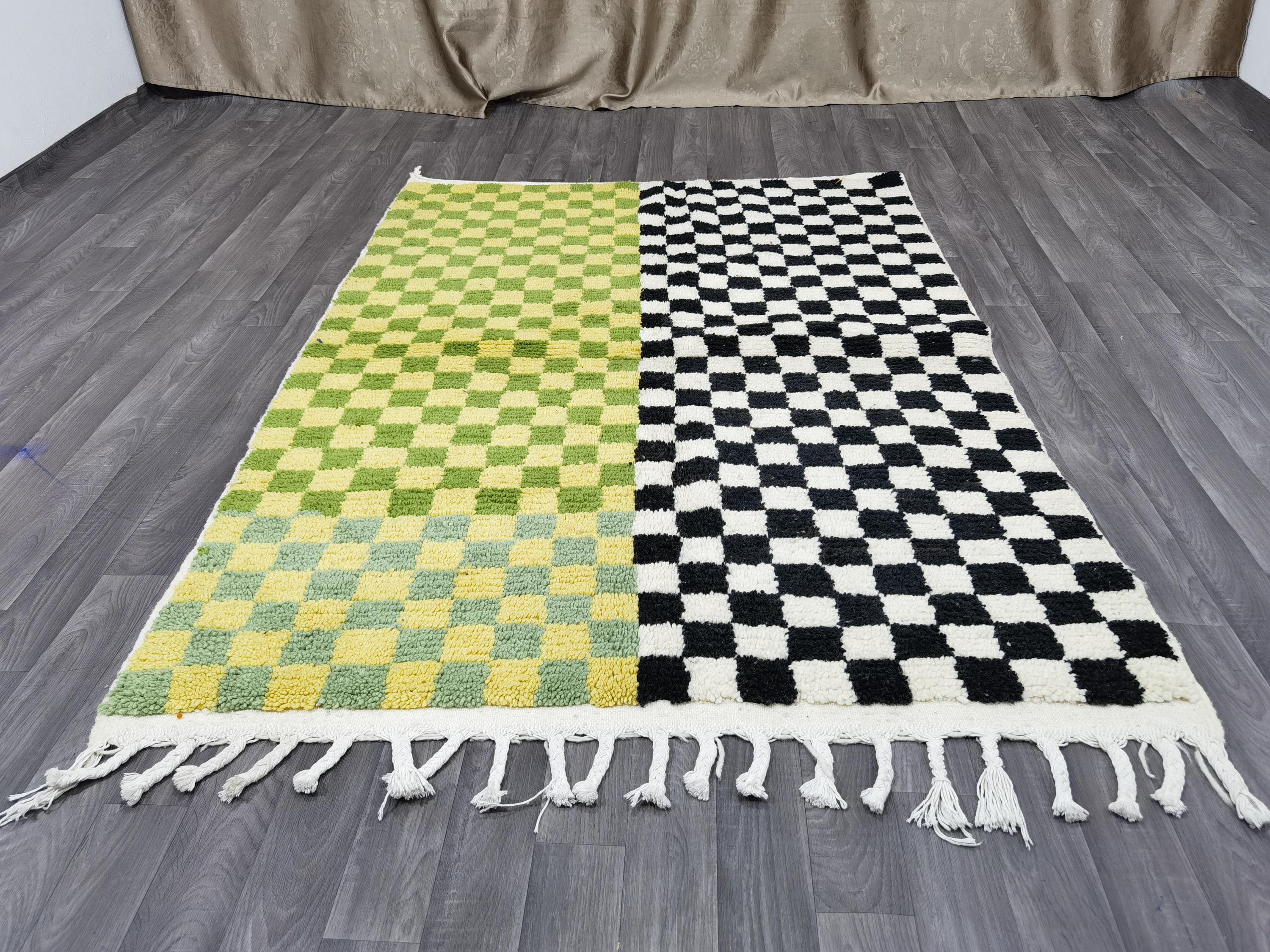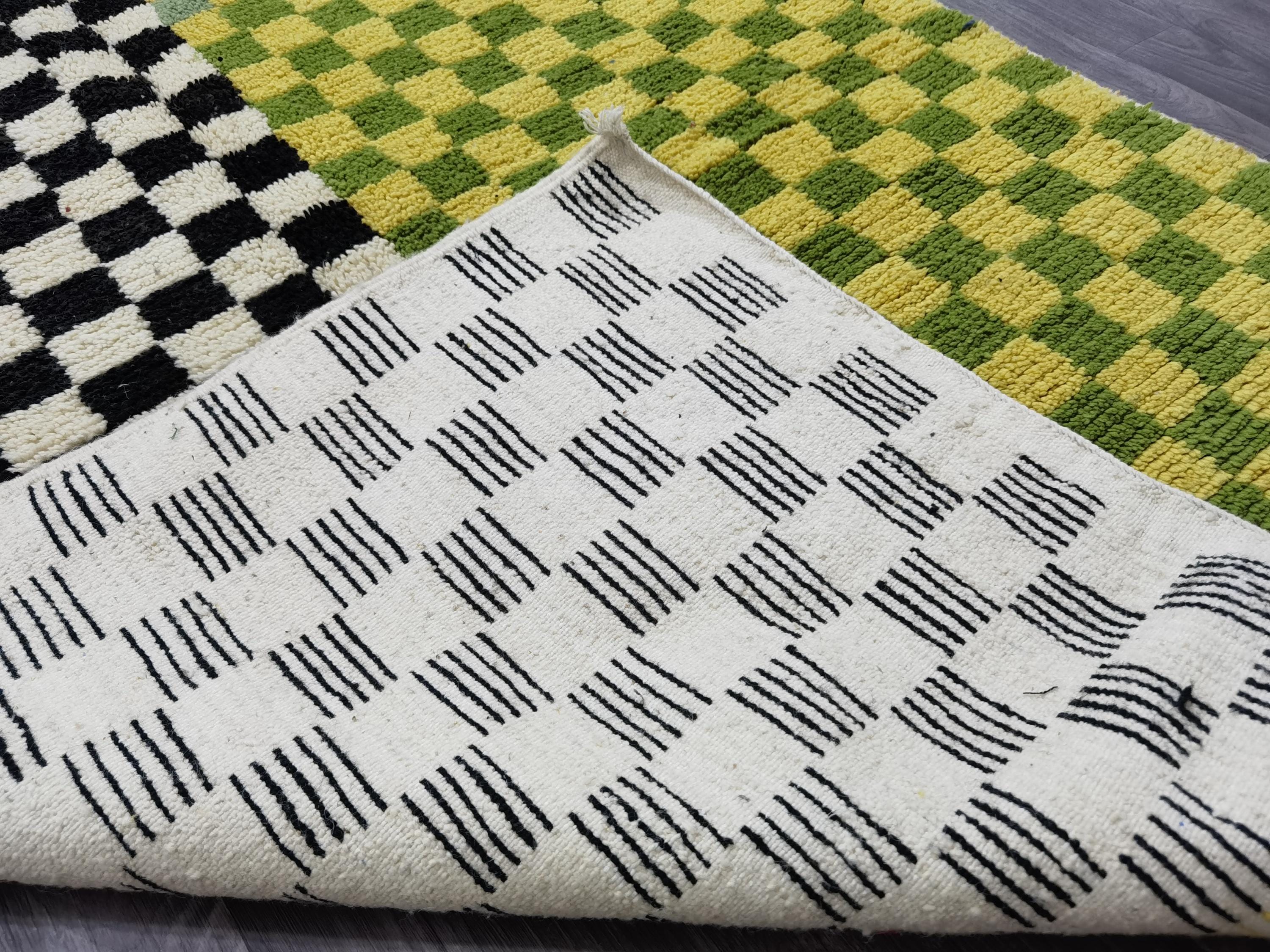 Unique Handmade Moroccan Checkered Rug - Beni Ourain Colorful Rug, Wool Rug, Checkered Rug.