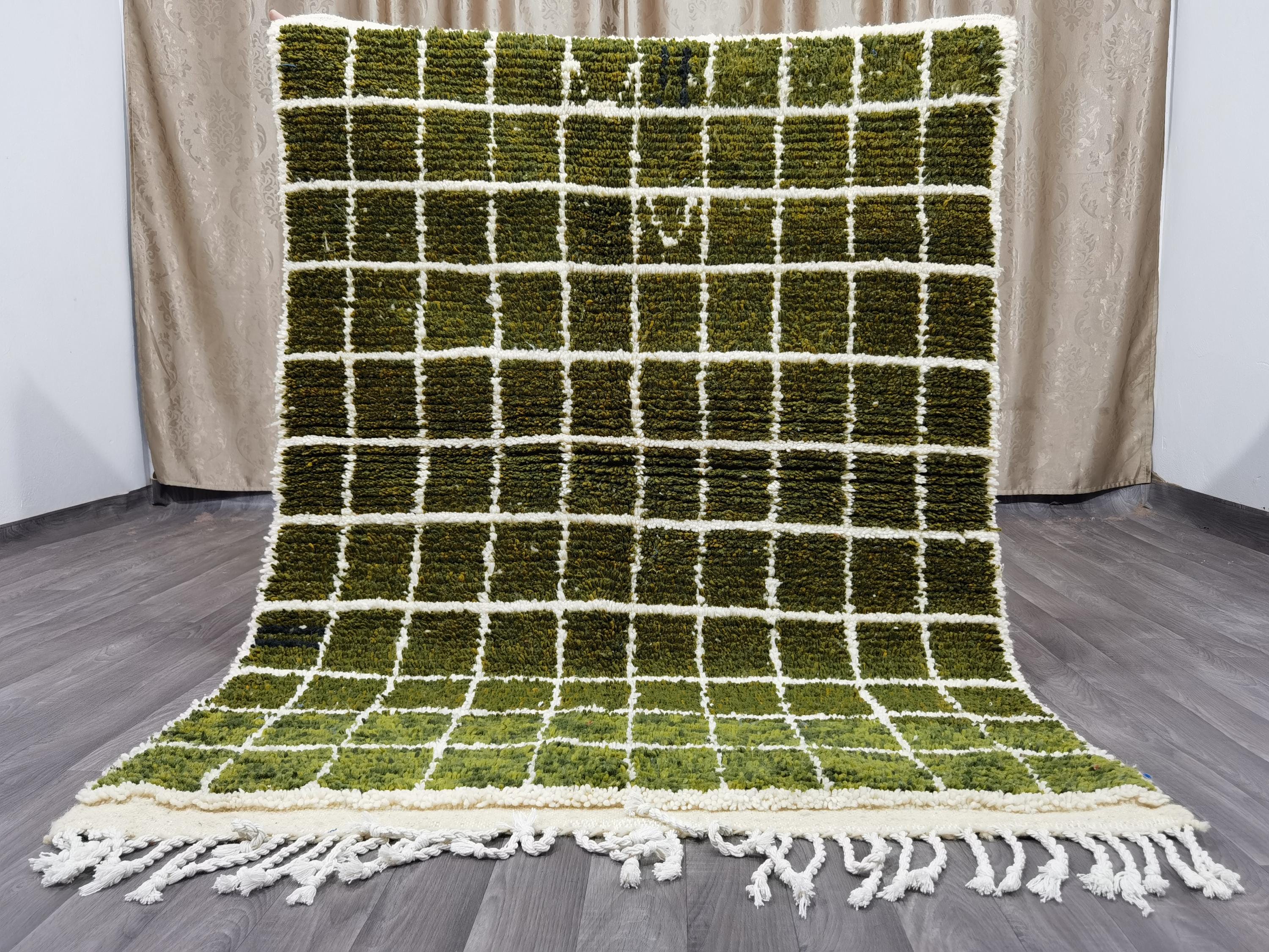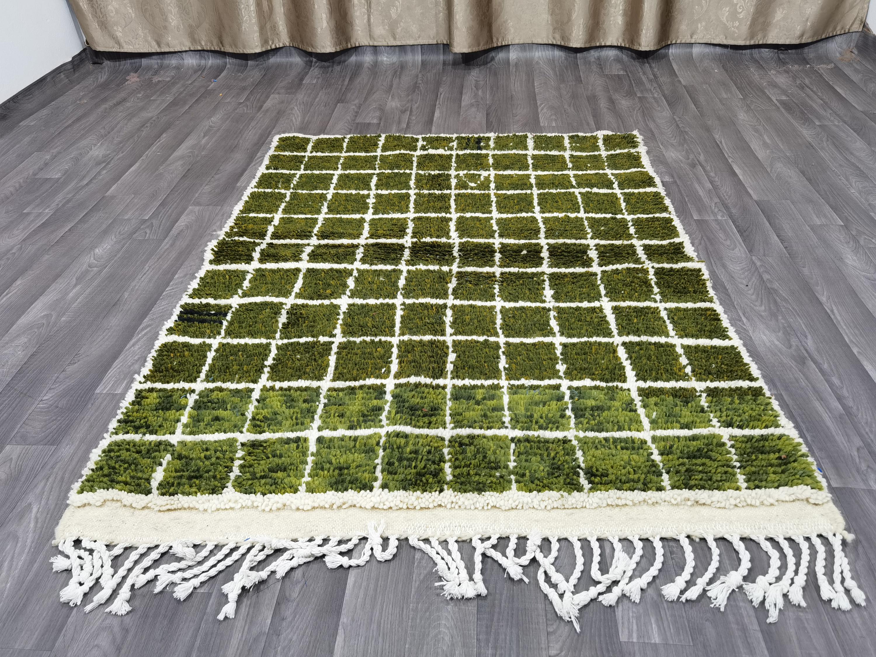 Gorgeous Rugs For Living Room, Boujaad Moroccan Rug, Soft Area Rug, Morrocan Rug Bohemian, Wool Green Shaggy Rug, Beniourain Sofa Rug