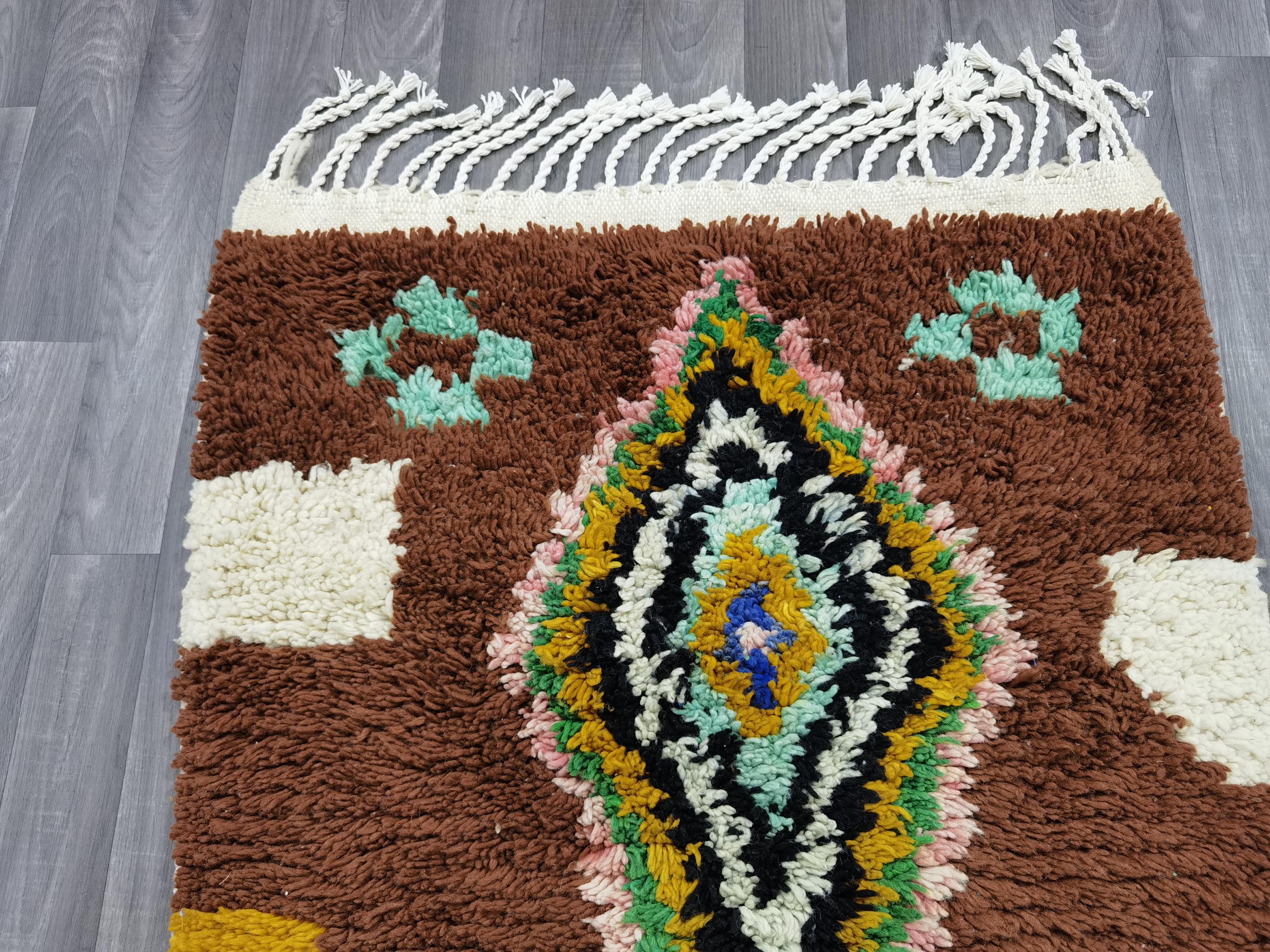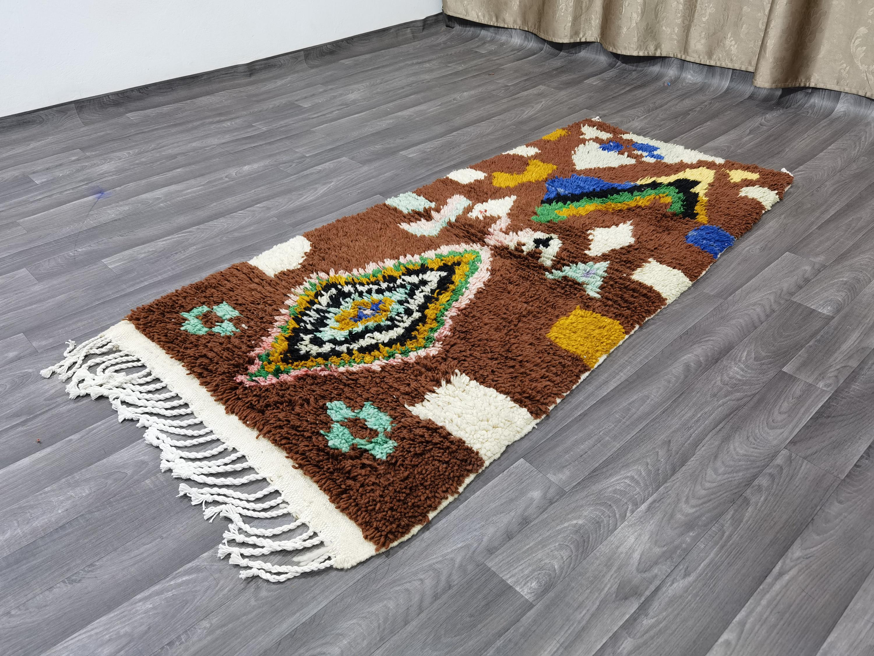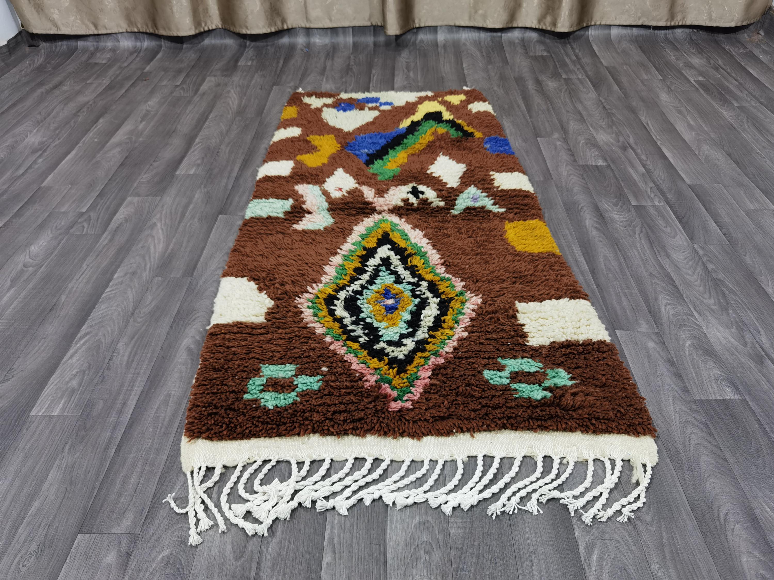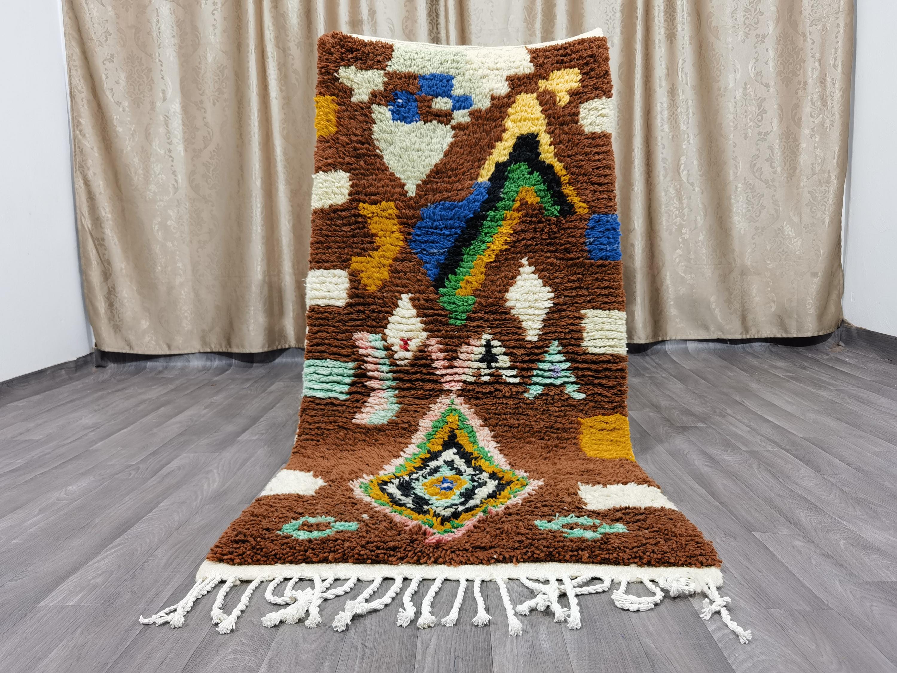 Unique Moroccan Brown Rug - Handmade Morrocan Rug, Authentic Berber Rug, Bohemian Style Rug For Living Room .