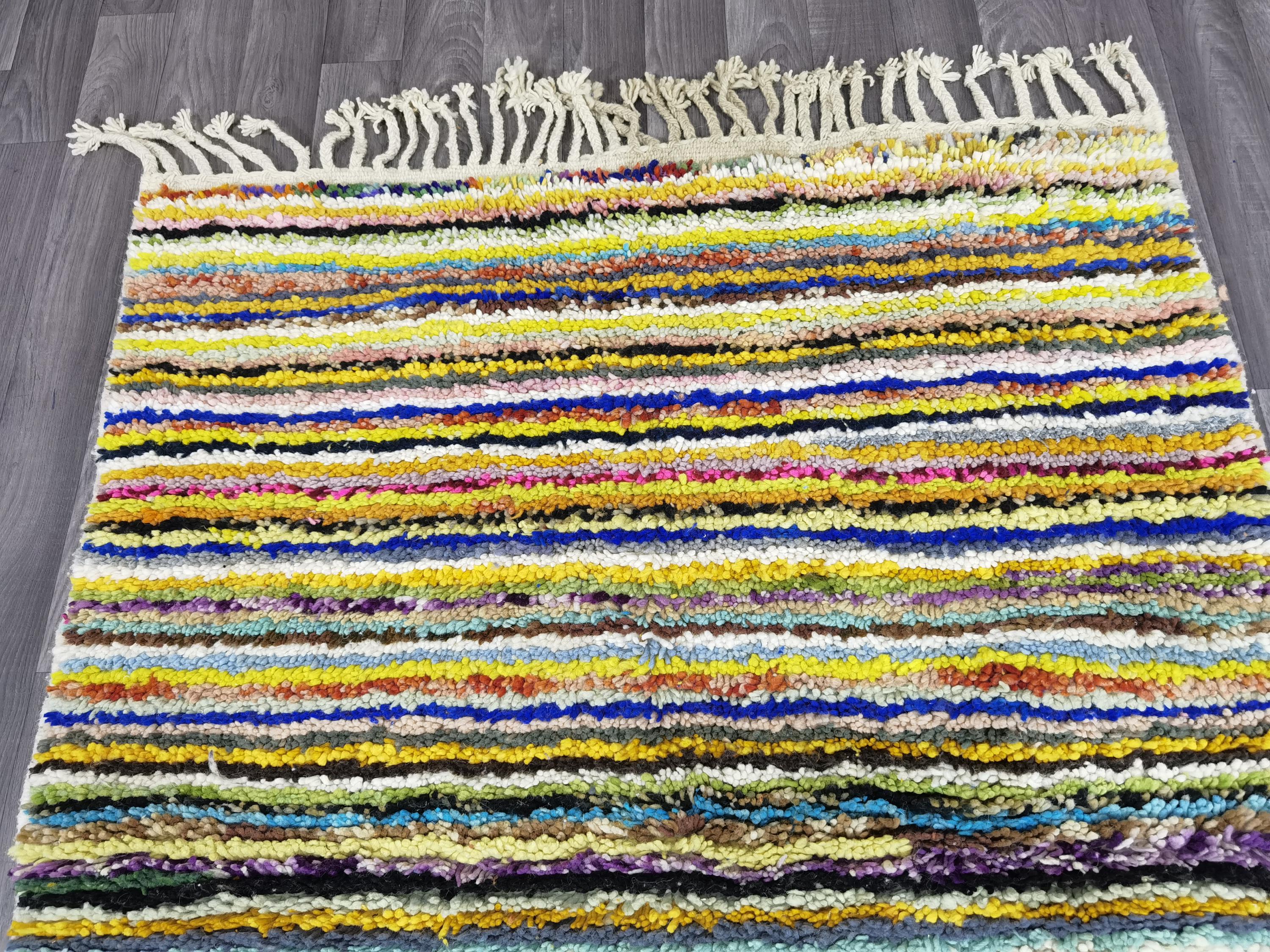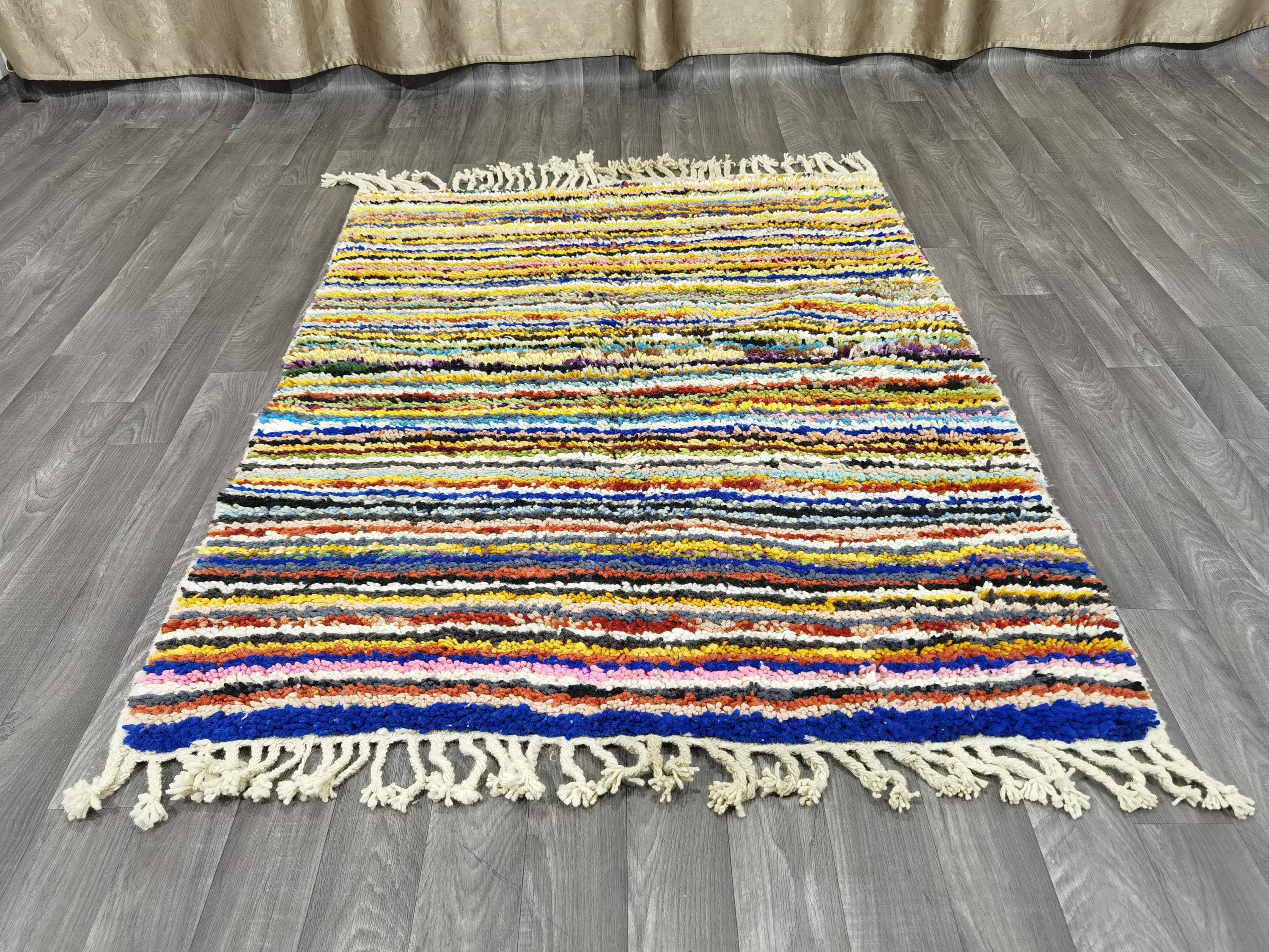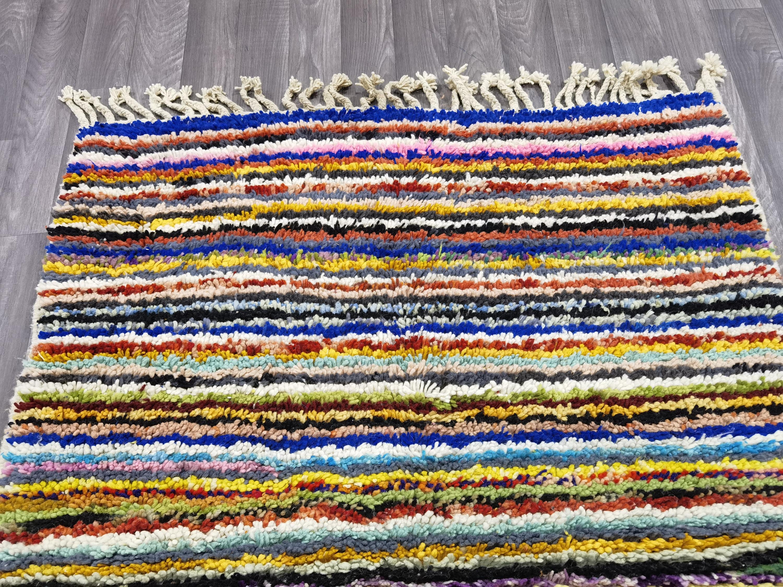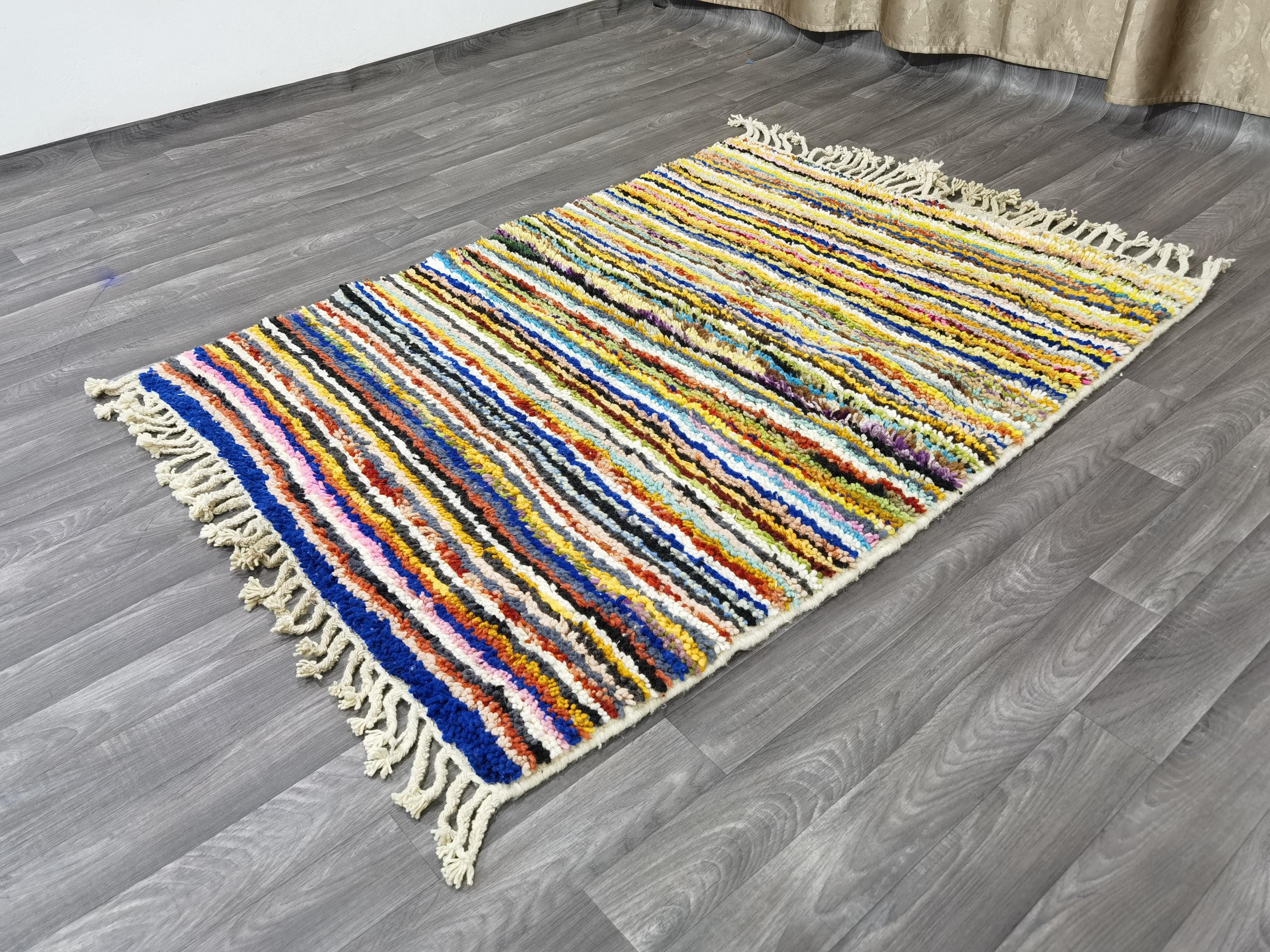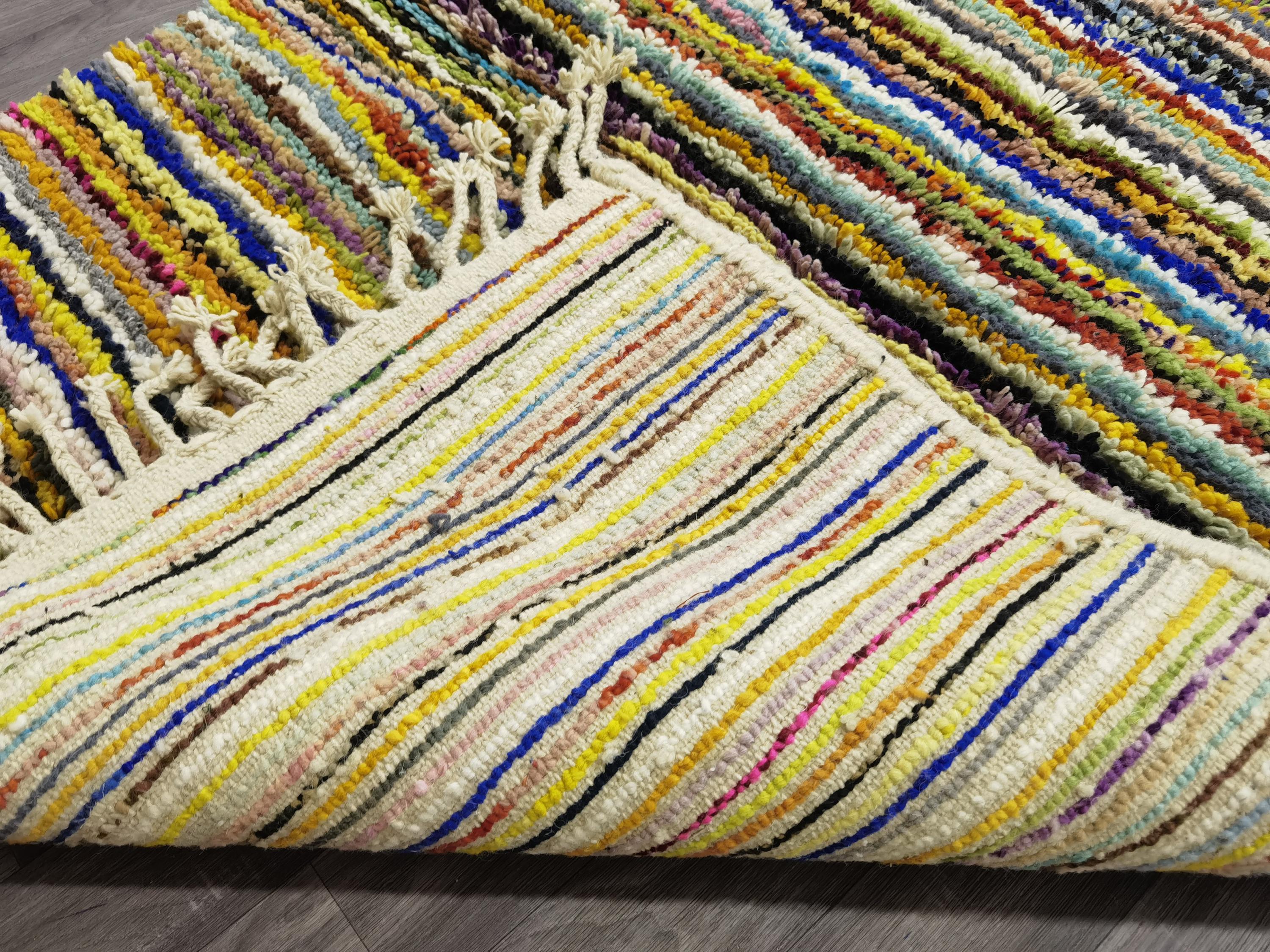 Unique Colorful Moroccan Rug - Beni Ourain Colorful Rug, Wool Rug, Handmade Striped Berber rug .
