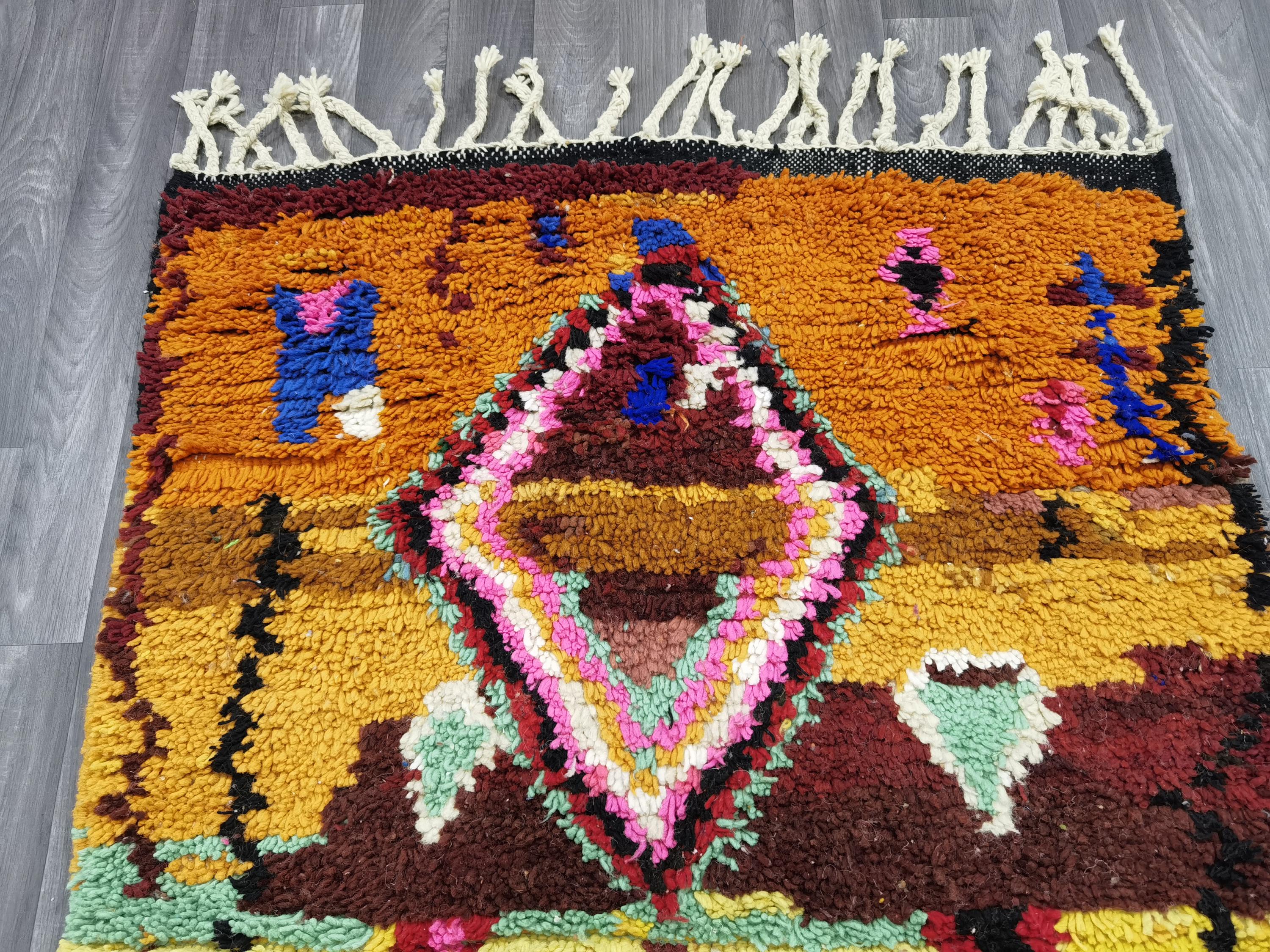 Unique Moroccan Orange Rug - Handmade Morrocan Rug, Authentic Berber Rug, Bohemian Style Rug For Living Room .