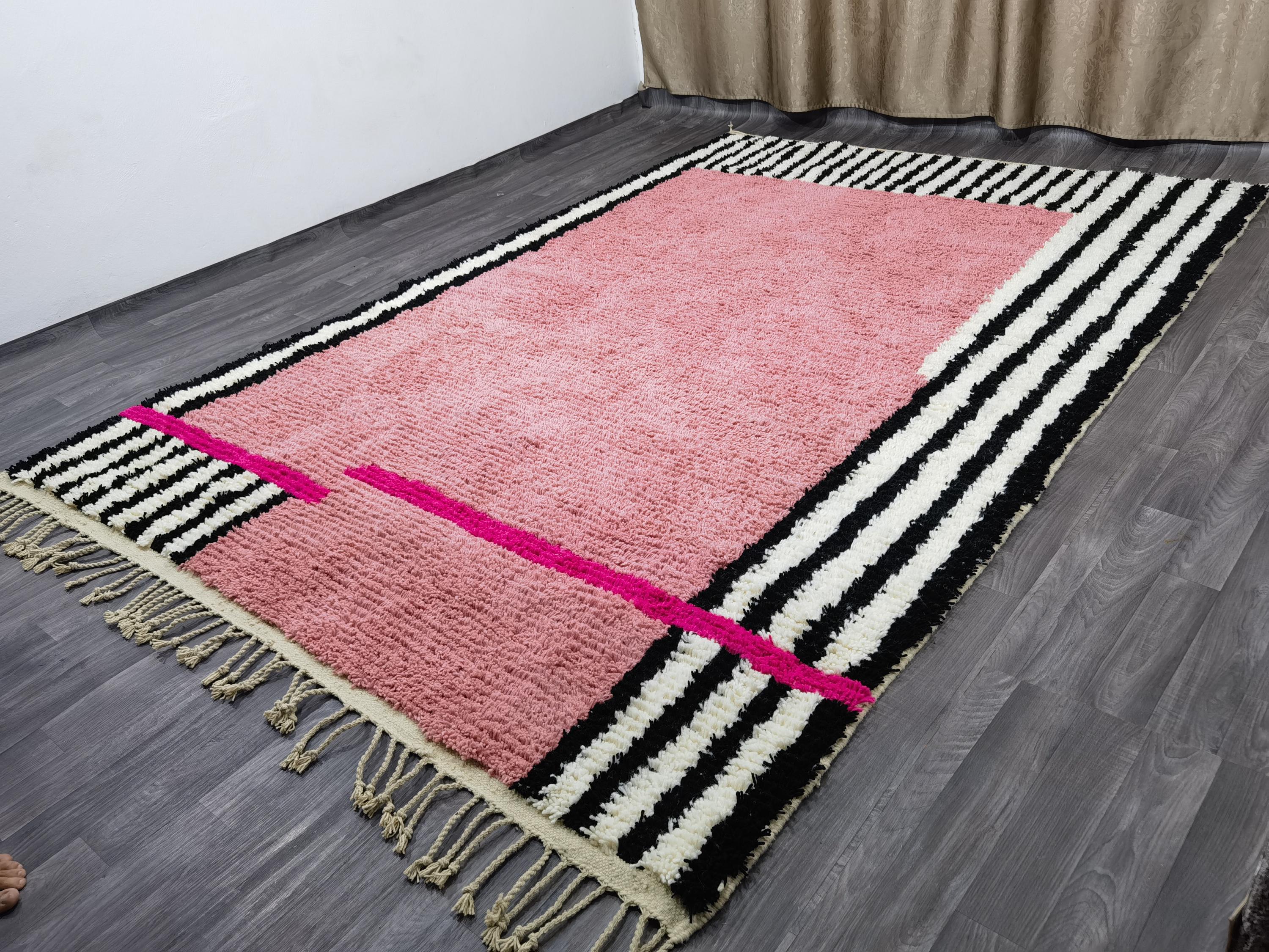 7x10 ft /214X305 cm - Moroccan Pink Rug - Handmade Morrocan Rug, Authentic Berber Rug, Bohemian Style Rug For Living Room .