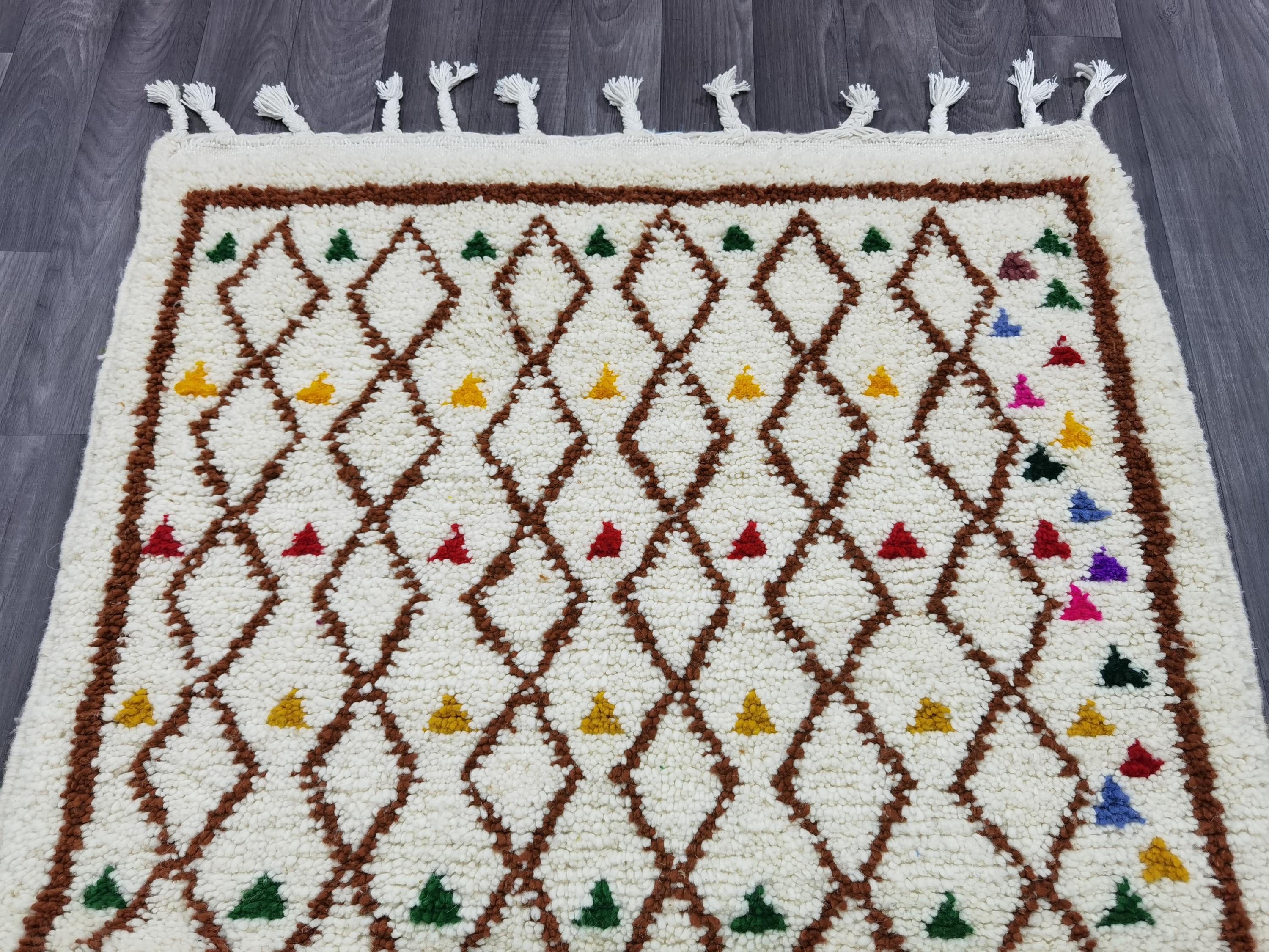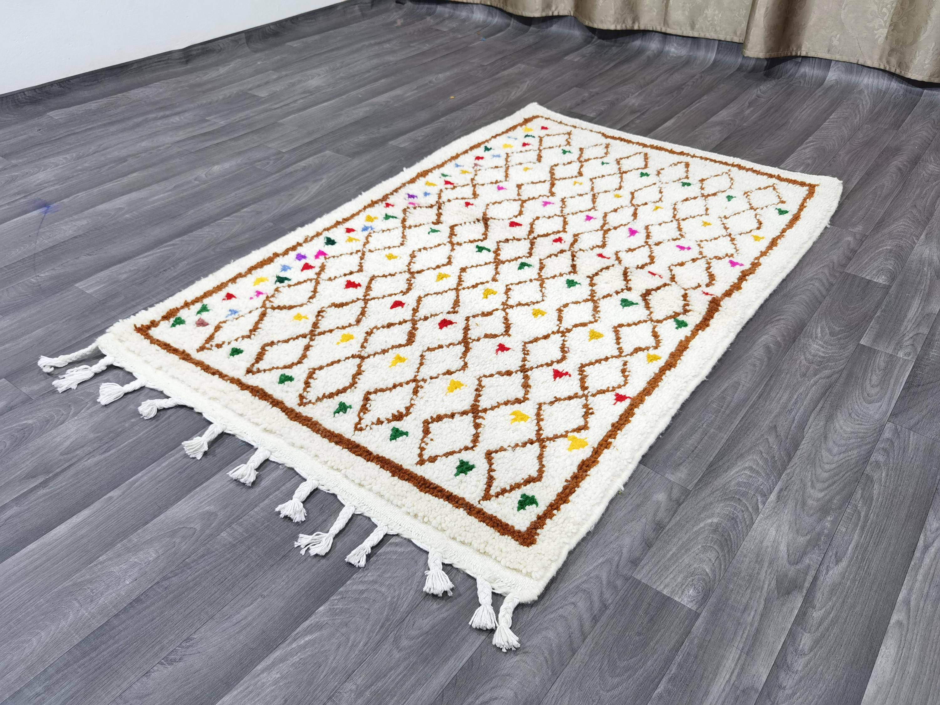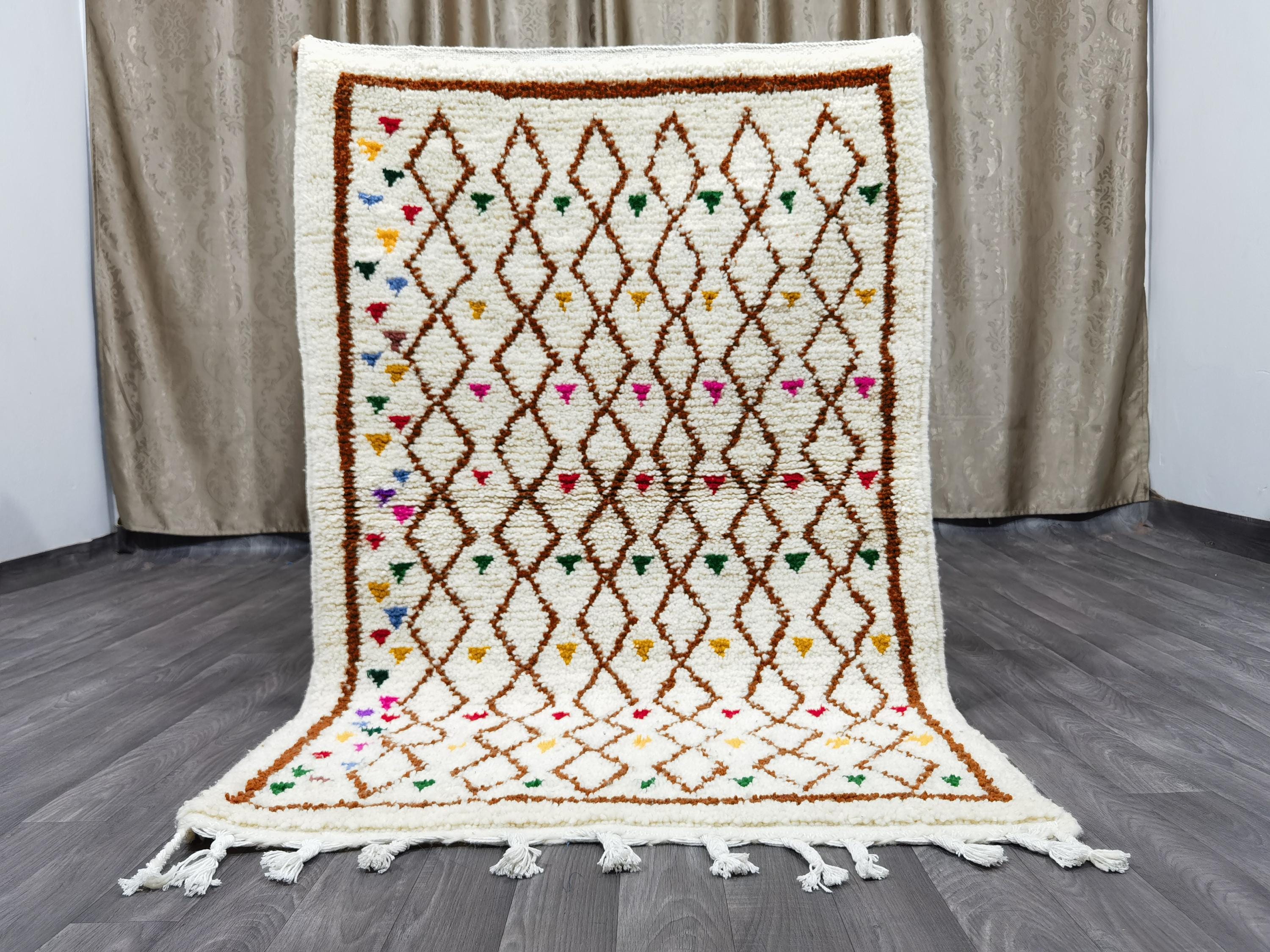 Beni ourain rug - white carpet - Handmade Morrocan Rug, Authentic Berber Rug, Bohemian Style Rug For Living Room .
