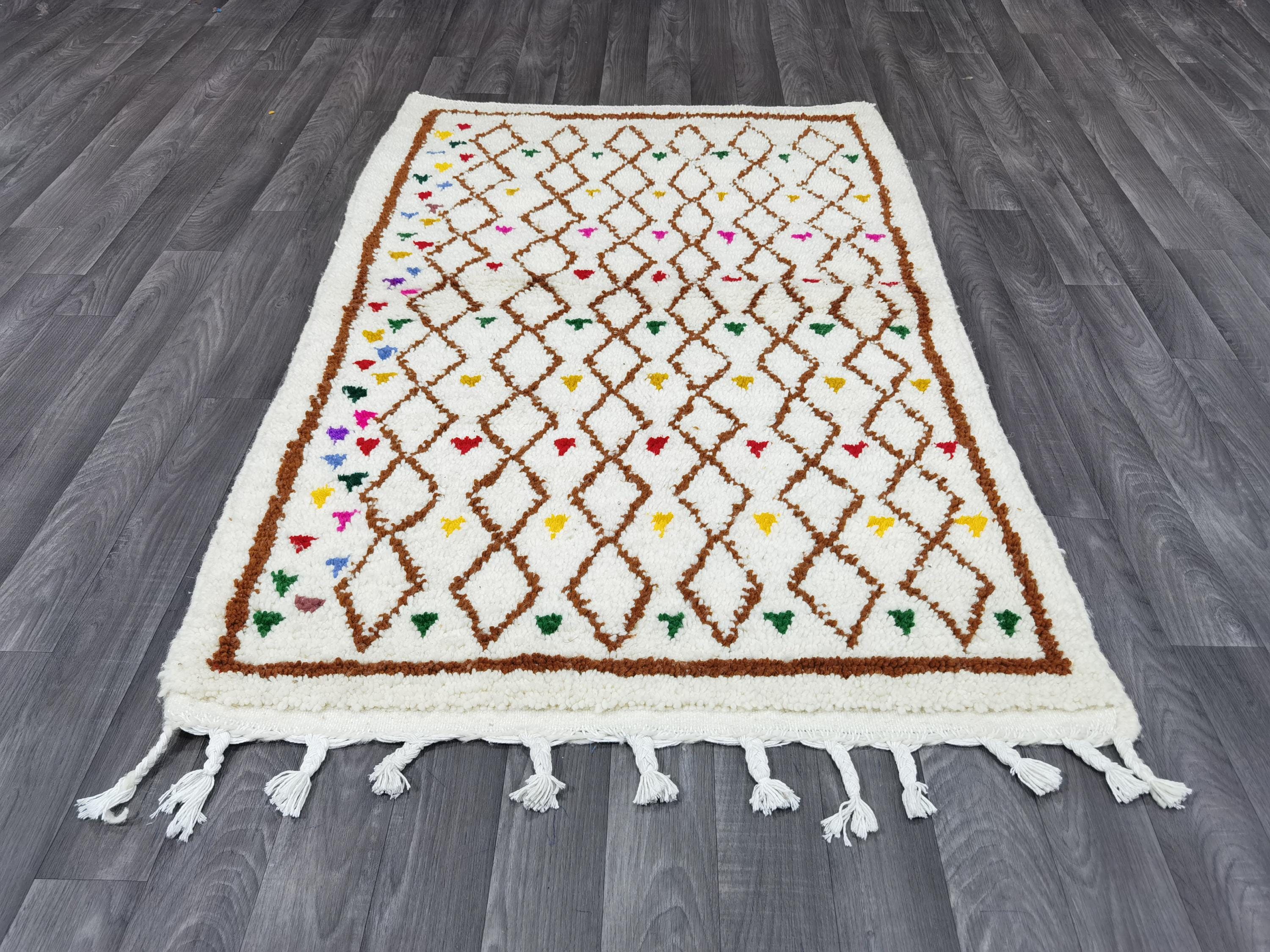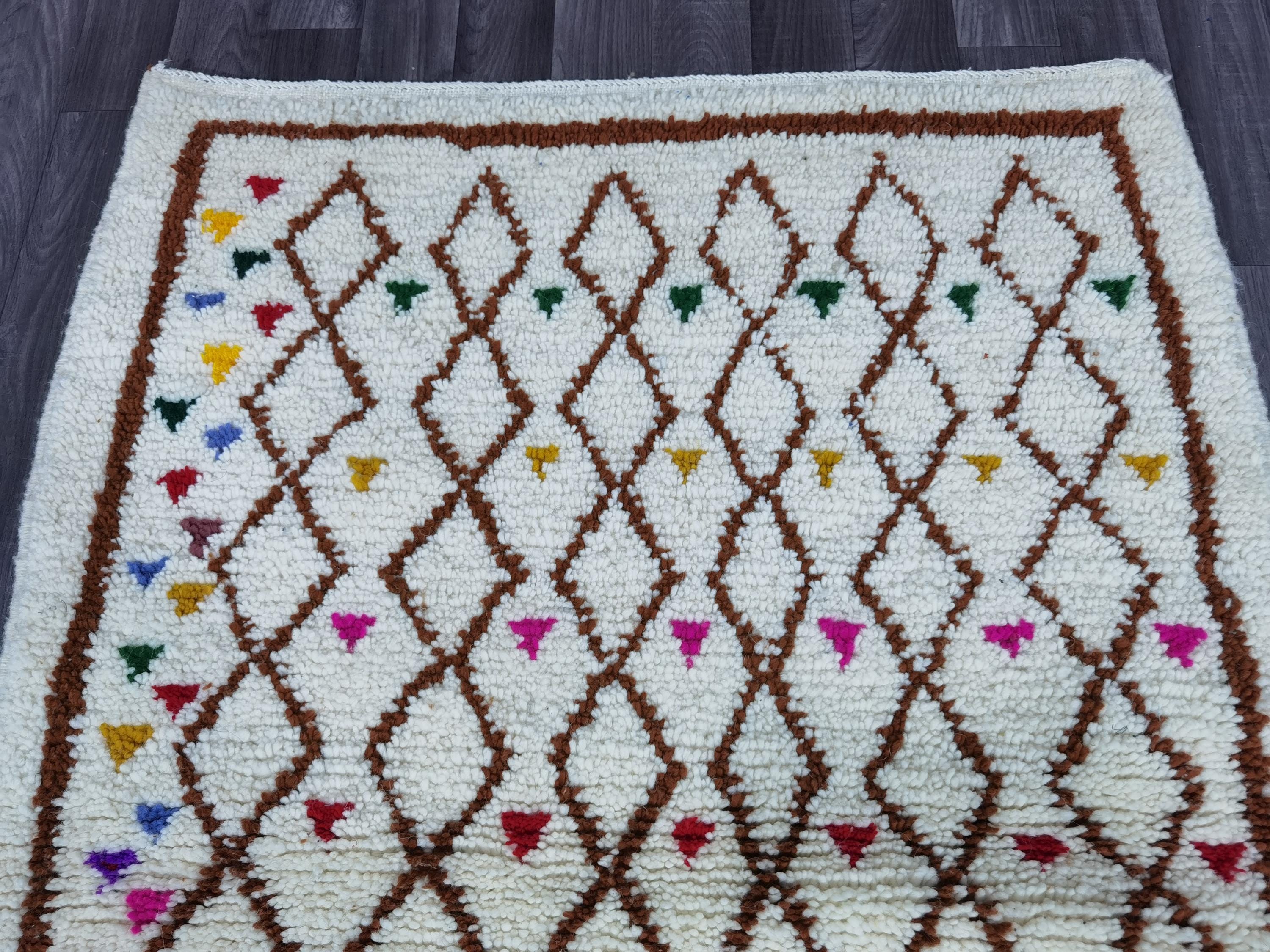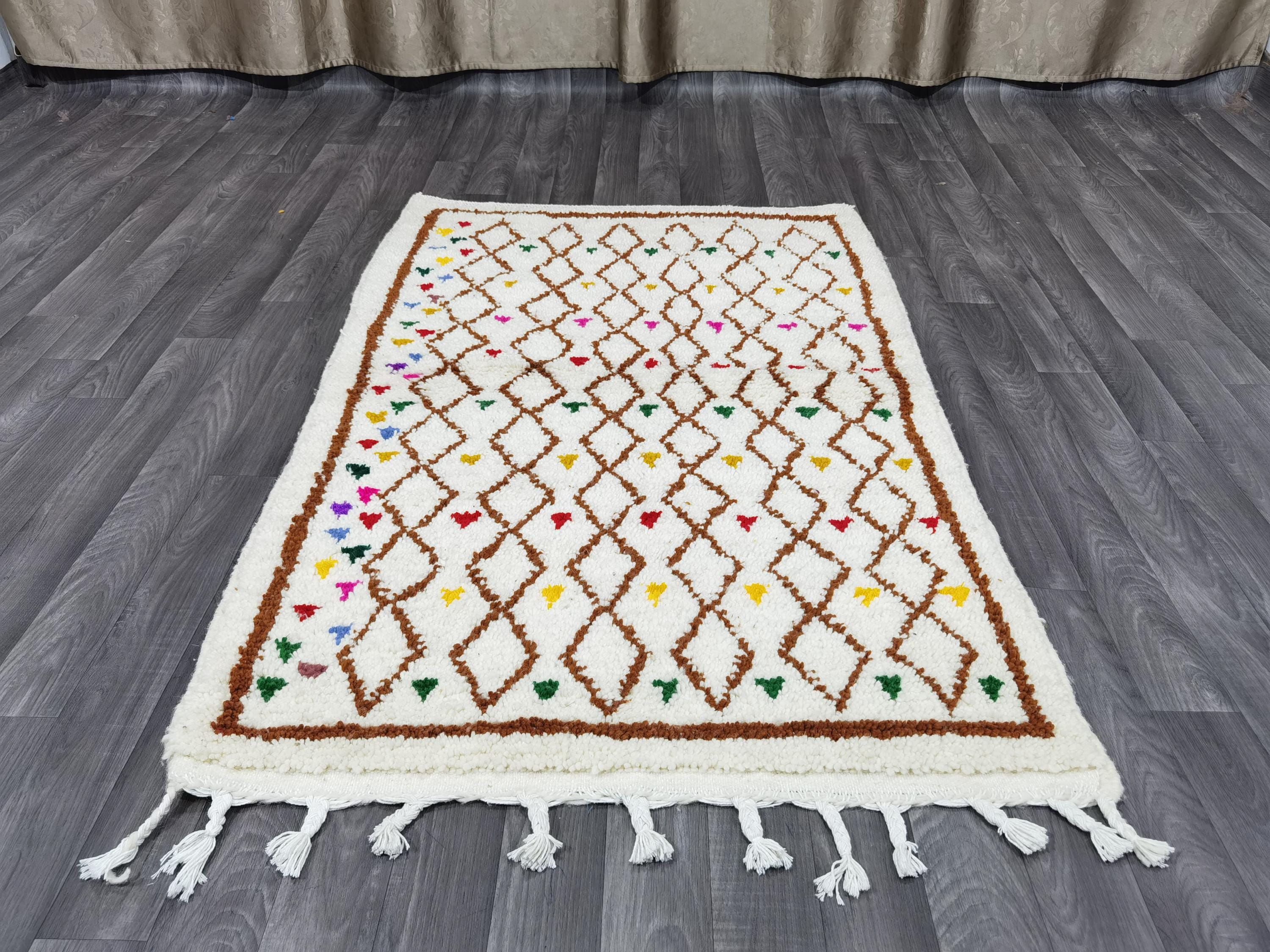 Beni ourain rug - white carpet - Handmade Morrocan Rug, Authentic Berber Rug, Bohemian Style Rug For Living Room .