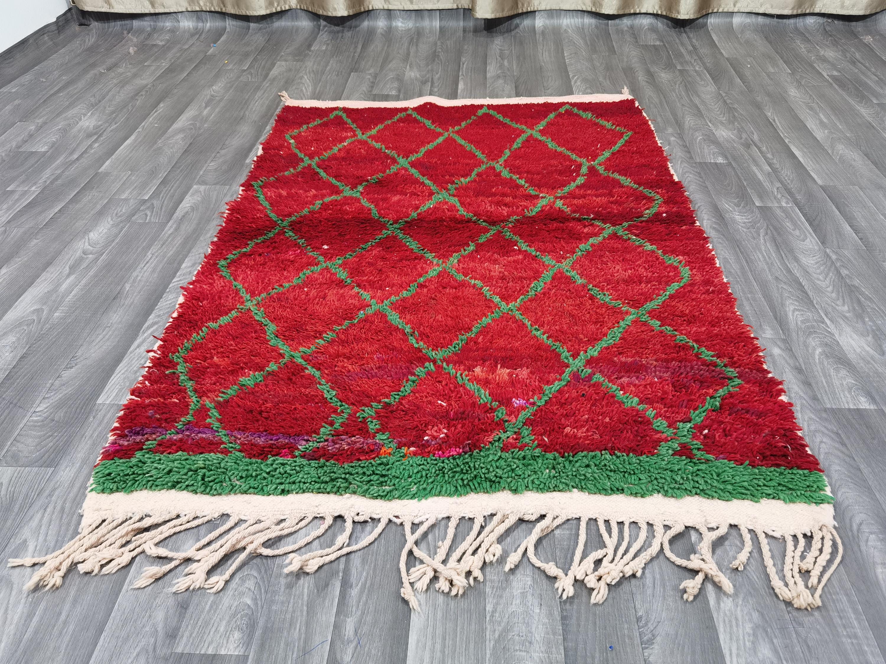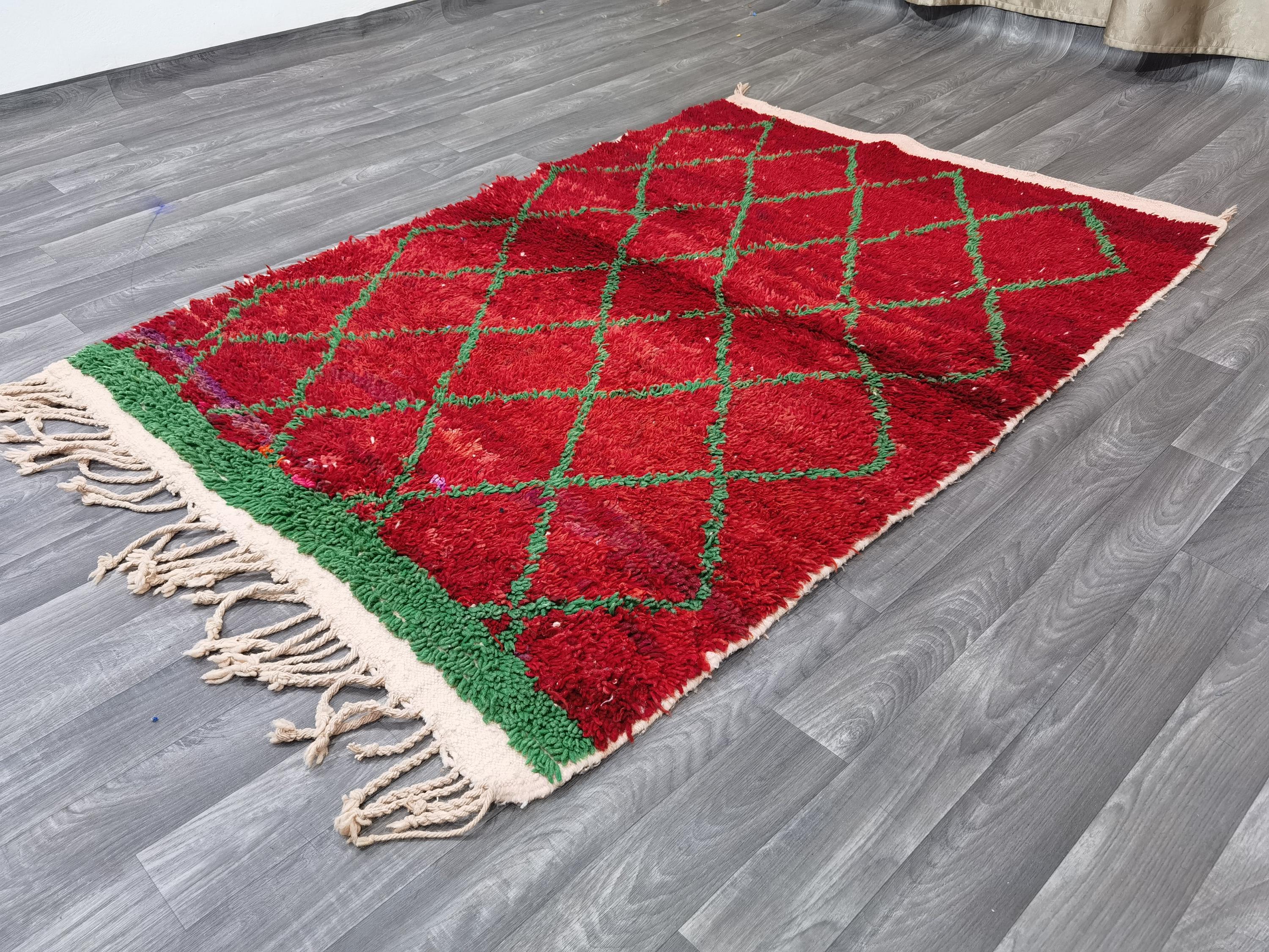 Unique Moroccan Red Rug - Handmade Morrocan Rug, Authentic Berber Rug, Bohemian Style Rug For Living Room .