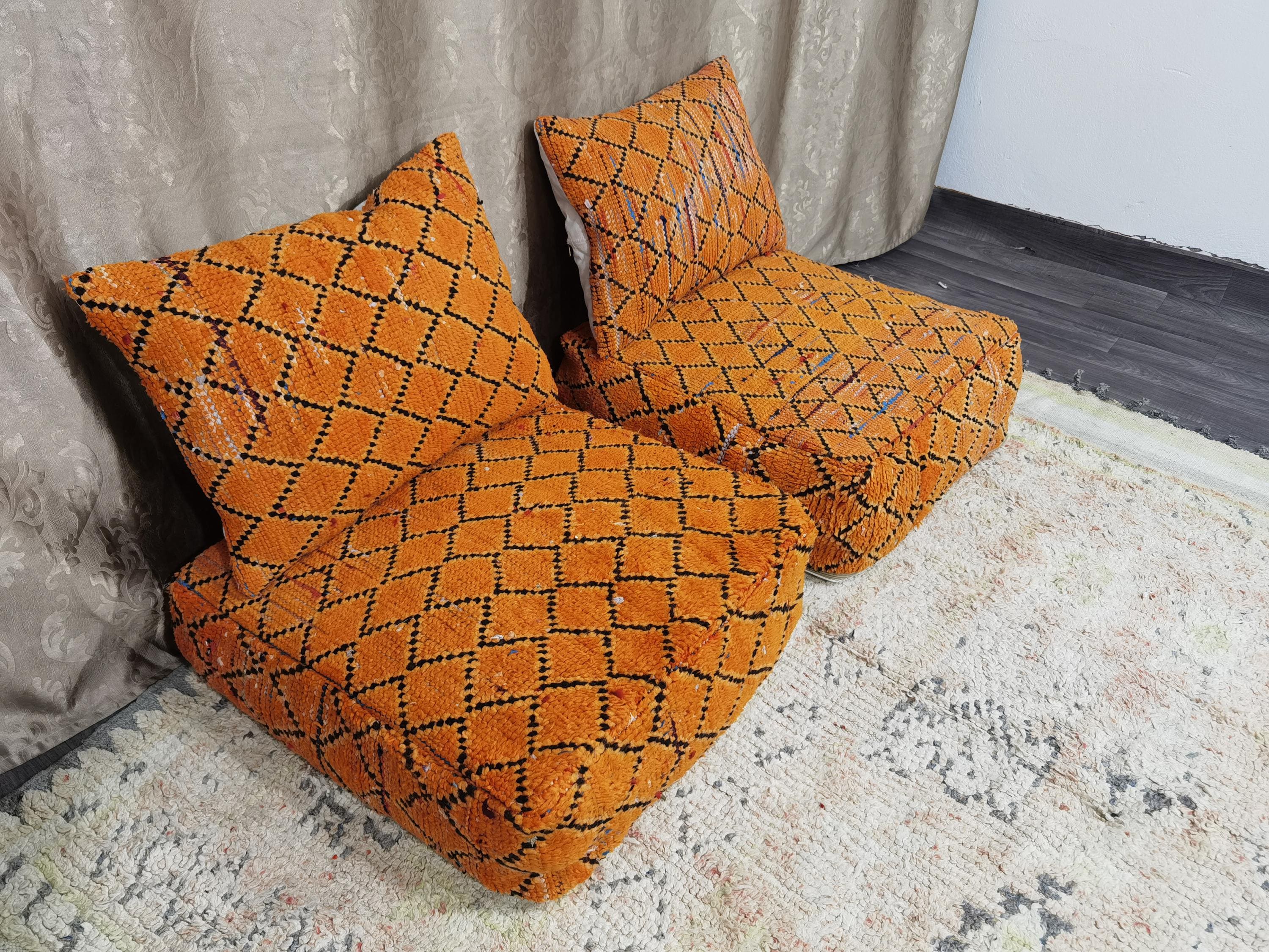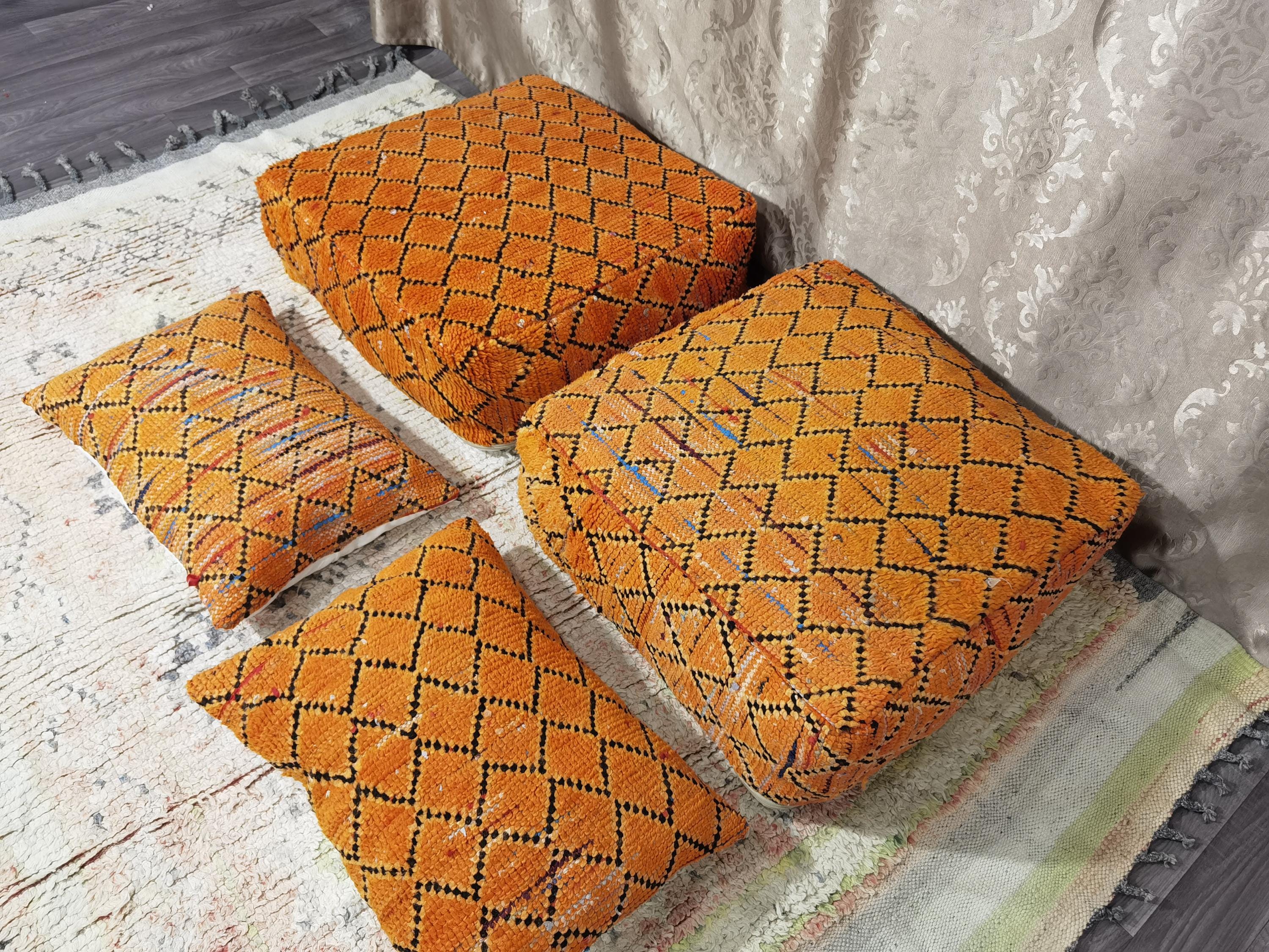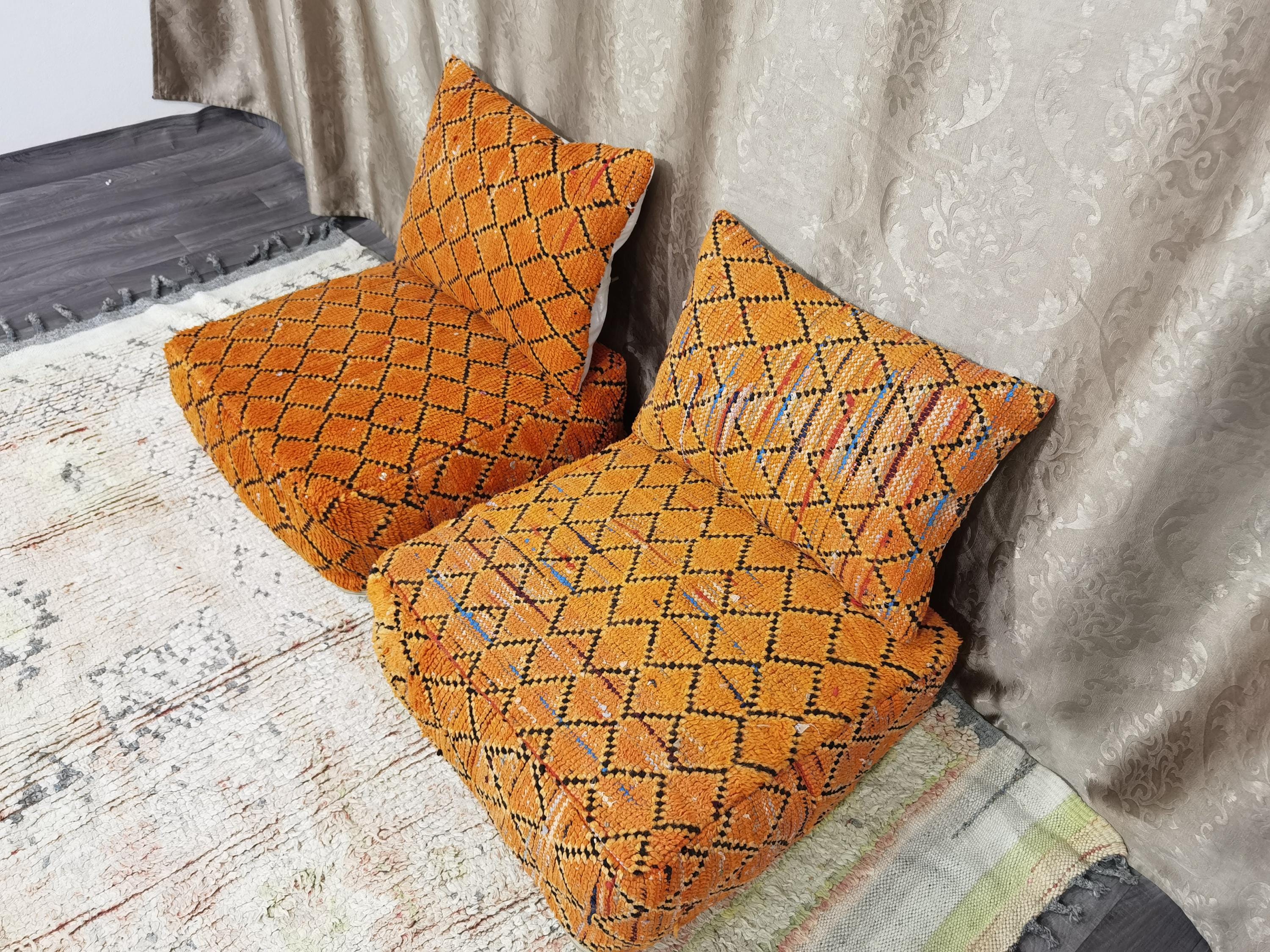 Moroccan Floor Cushion 2 Places Salon : Unstuffed Seats Cushions, 2 Back Cushions + 2 Pouffe Moroccan - Living room sofa, Morocco sofa .