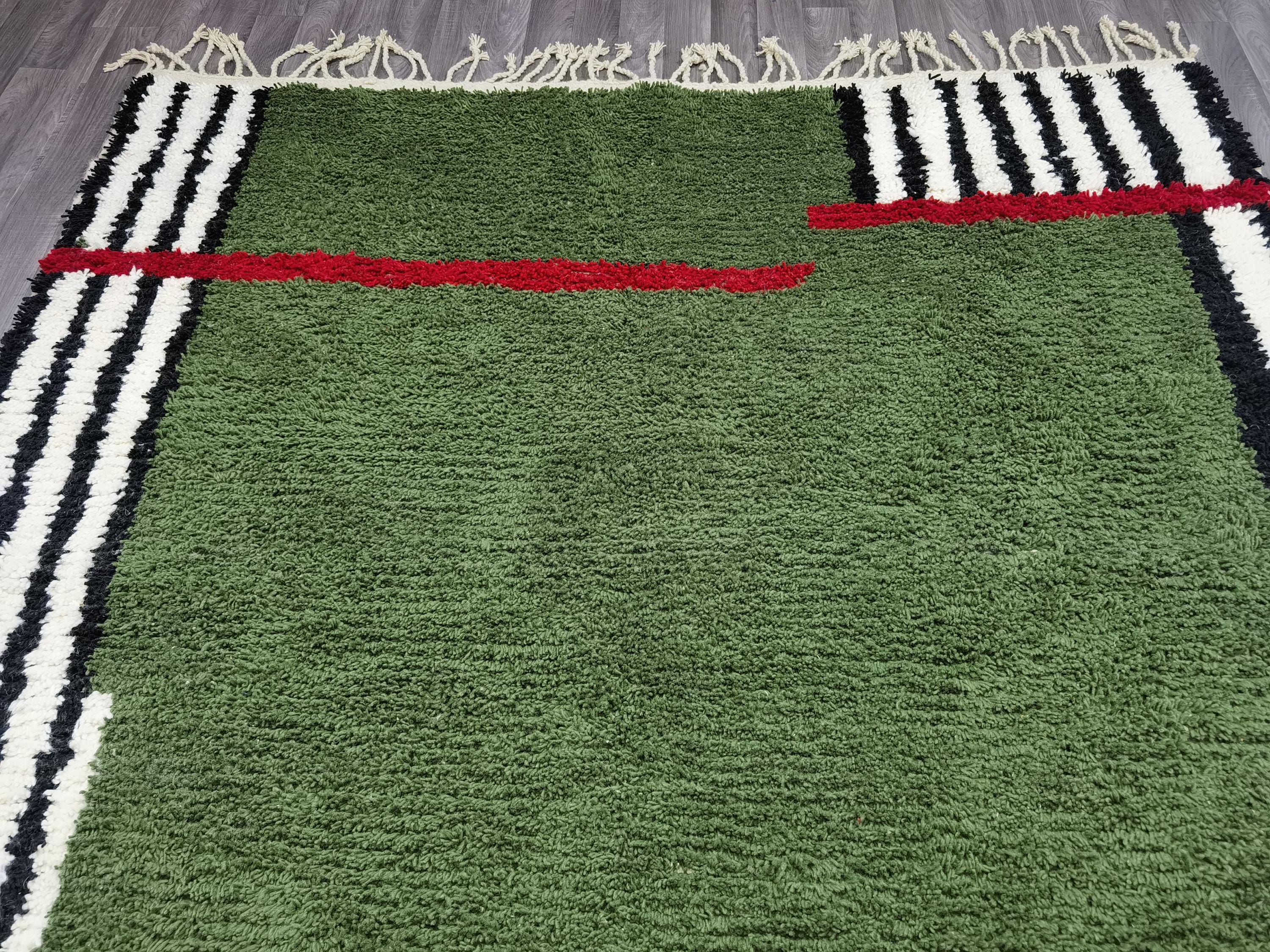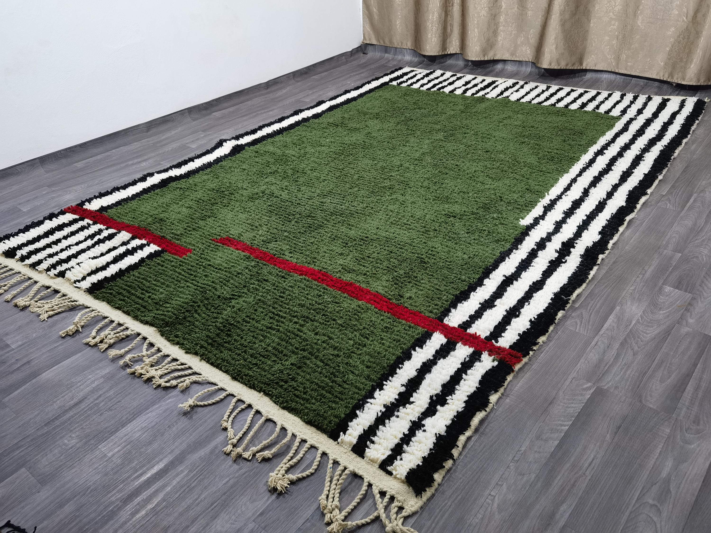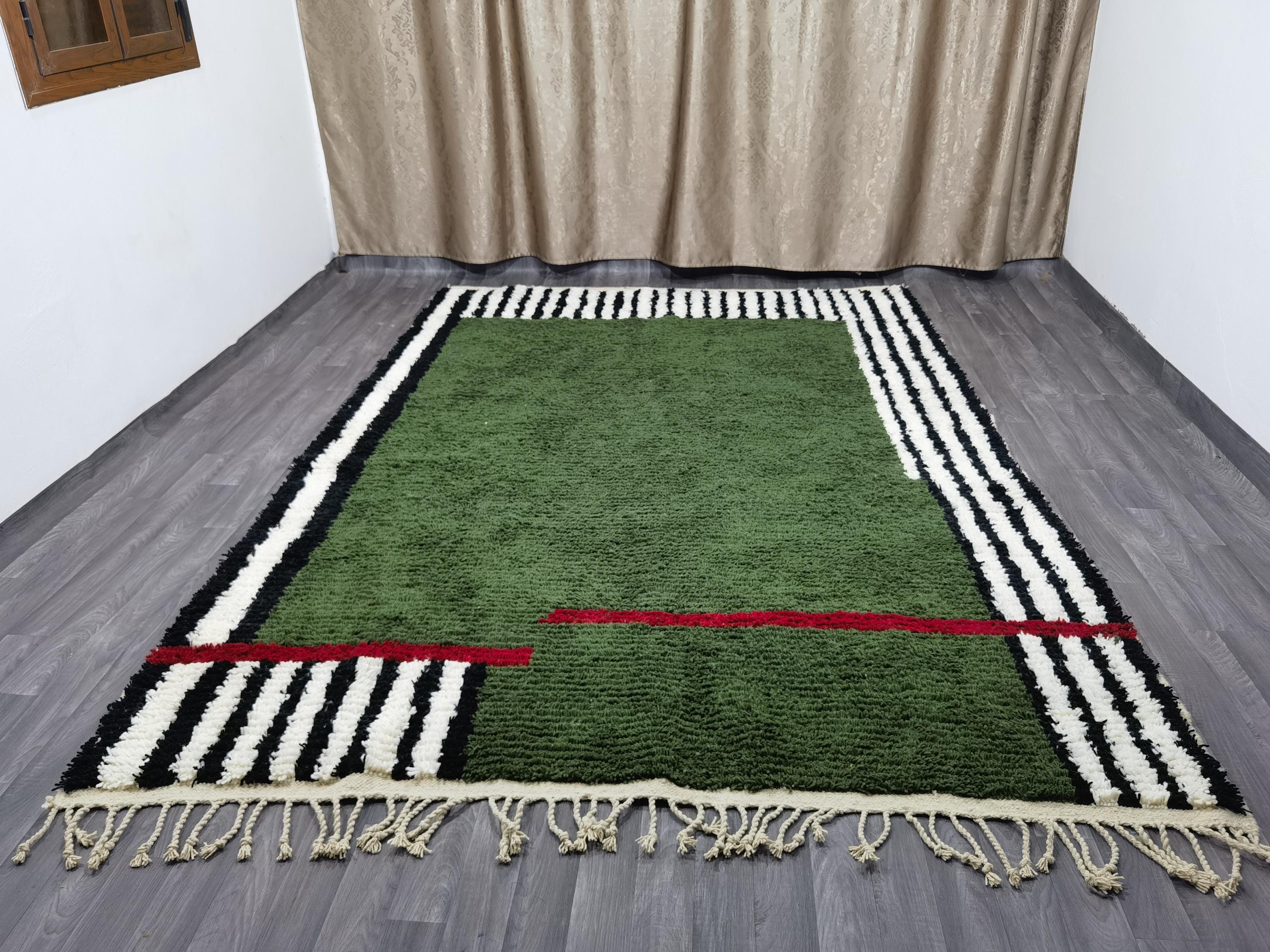 Moroccan Handmade Green Wool Rug: Berber Bohemian Decor .