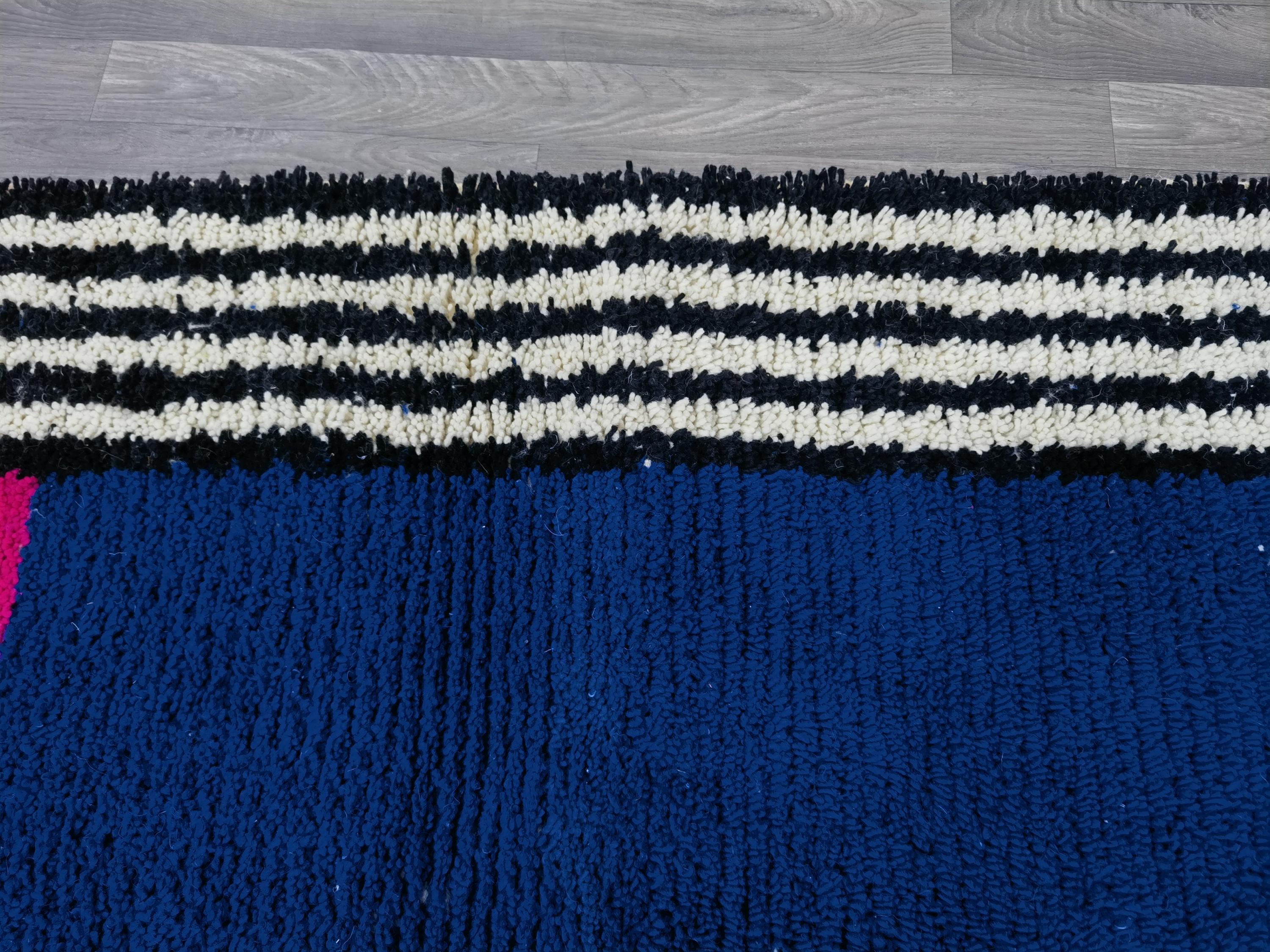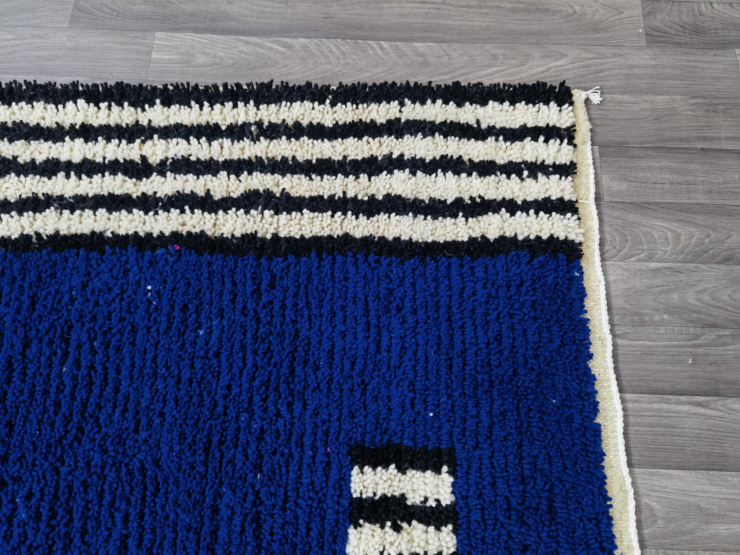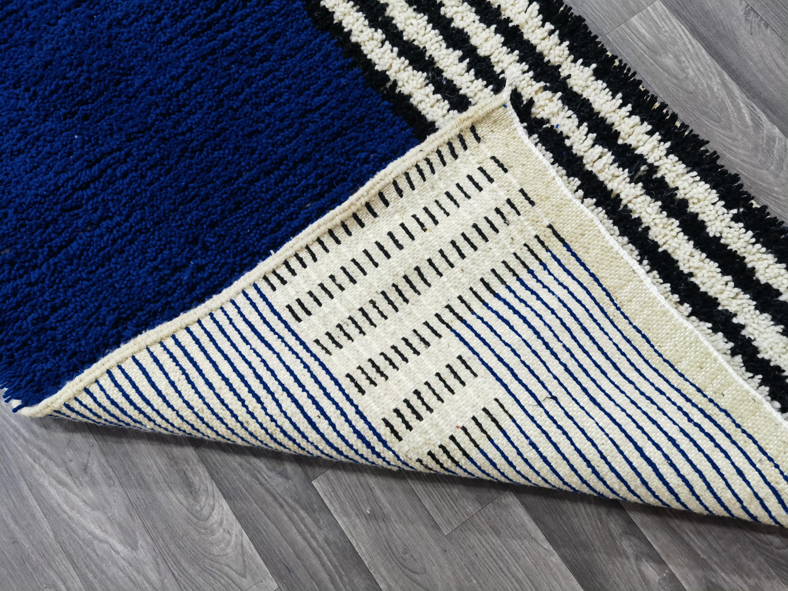 Blue Beni Ourain Shaggy Runner – Handmade Moroccan Wool Rug .