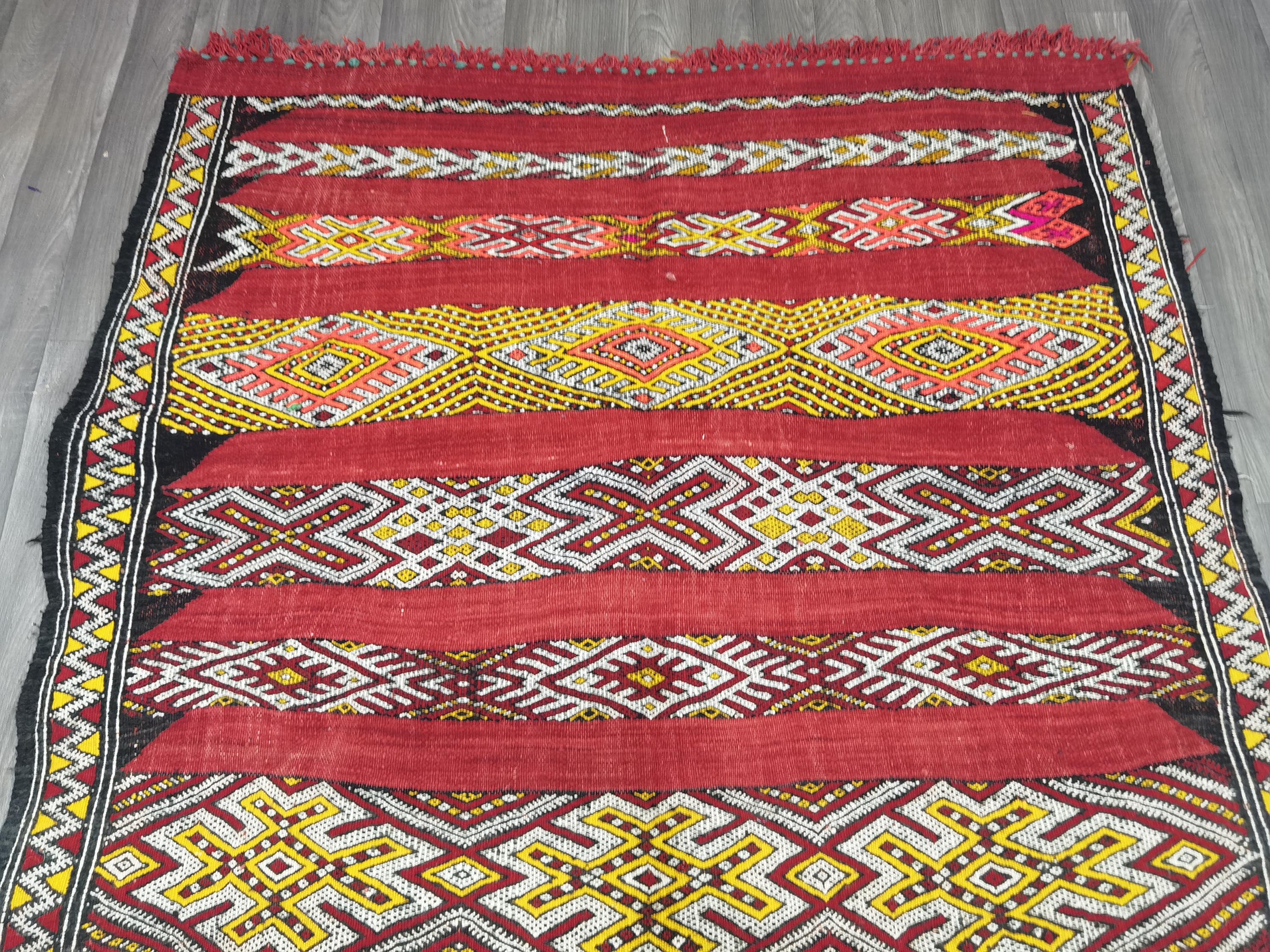 Hand-Knotted Wool Moroccan Rug – 5x8.7 ft, Berber Kilim Shag