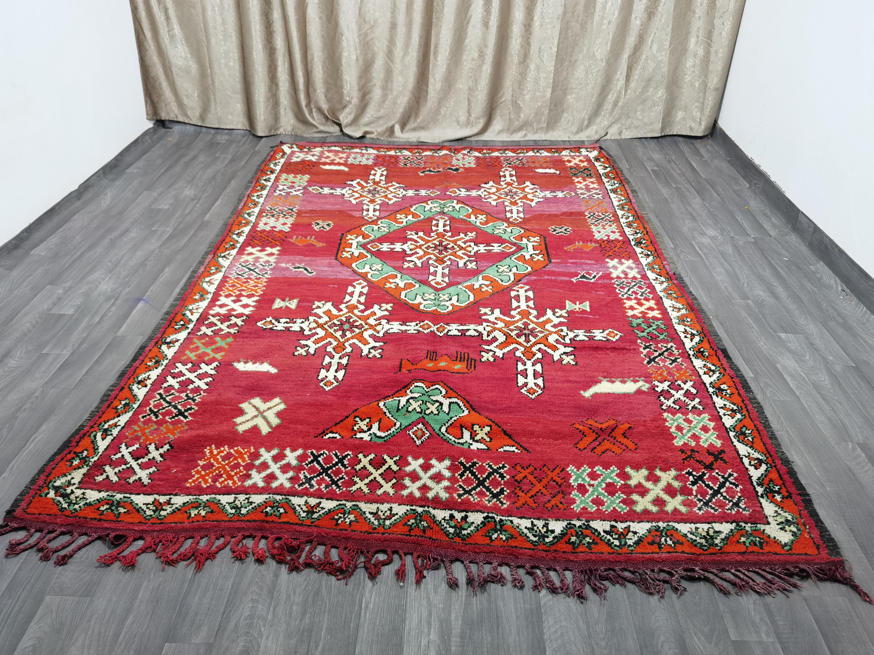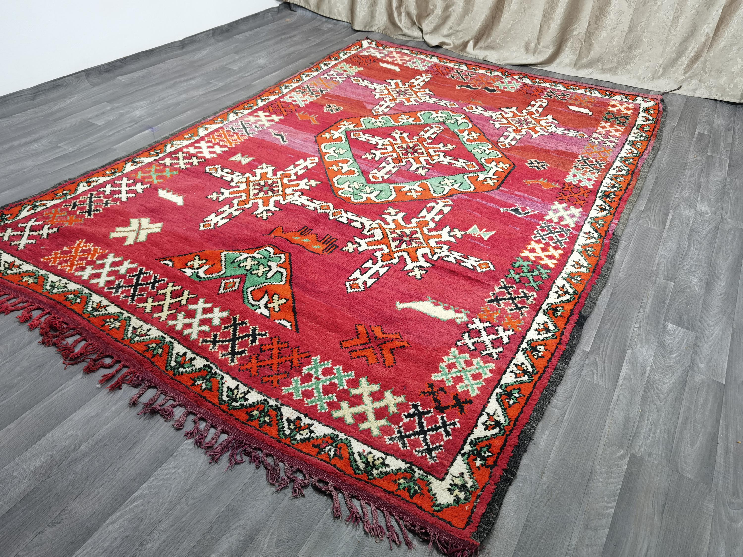 Moroccan Boujad Rug 6.7×10 Ft - Rugs For Living Room - Berber Woven Area Rug .