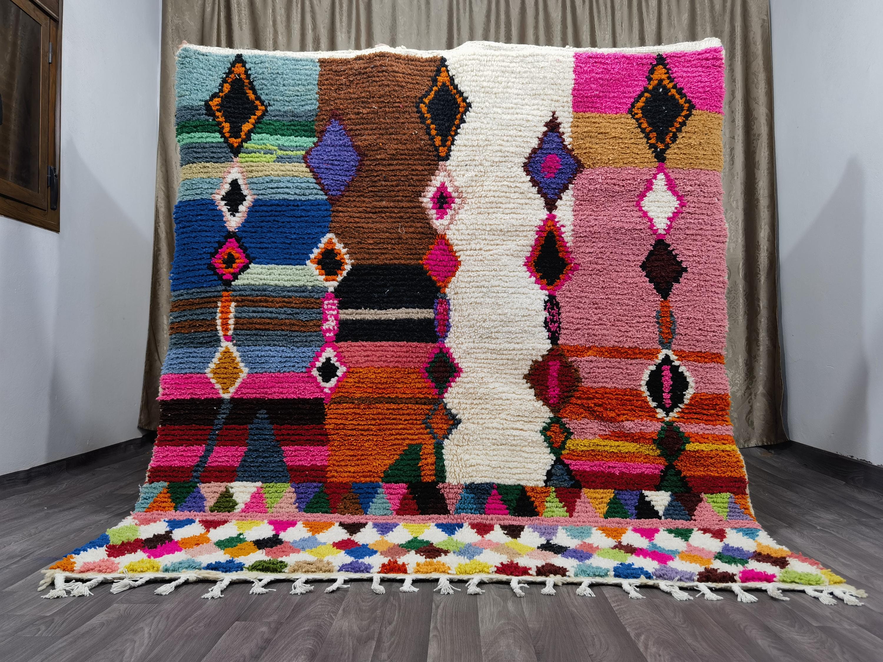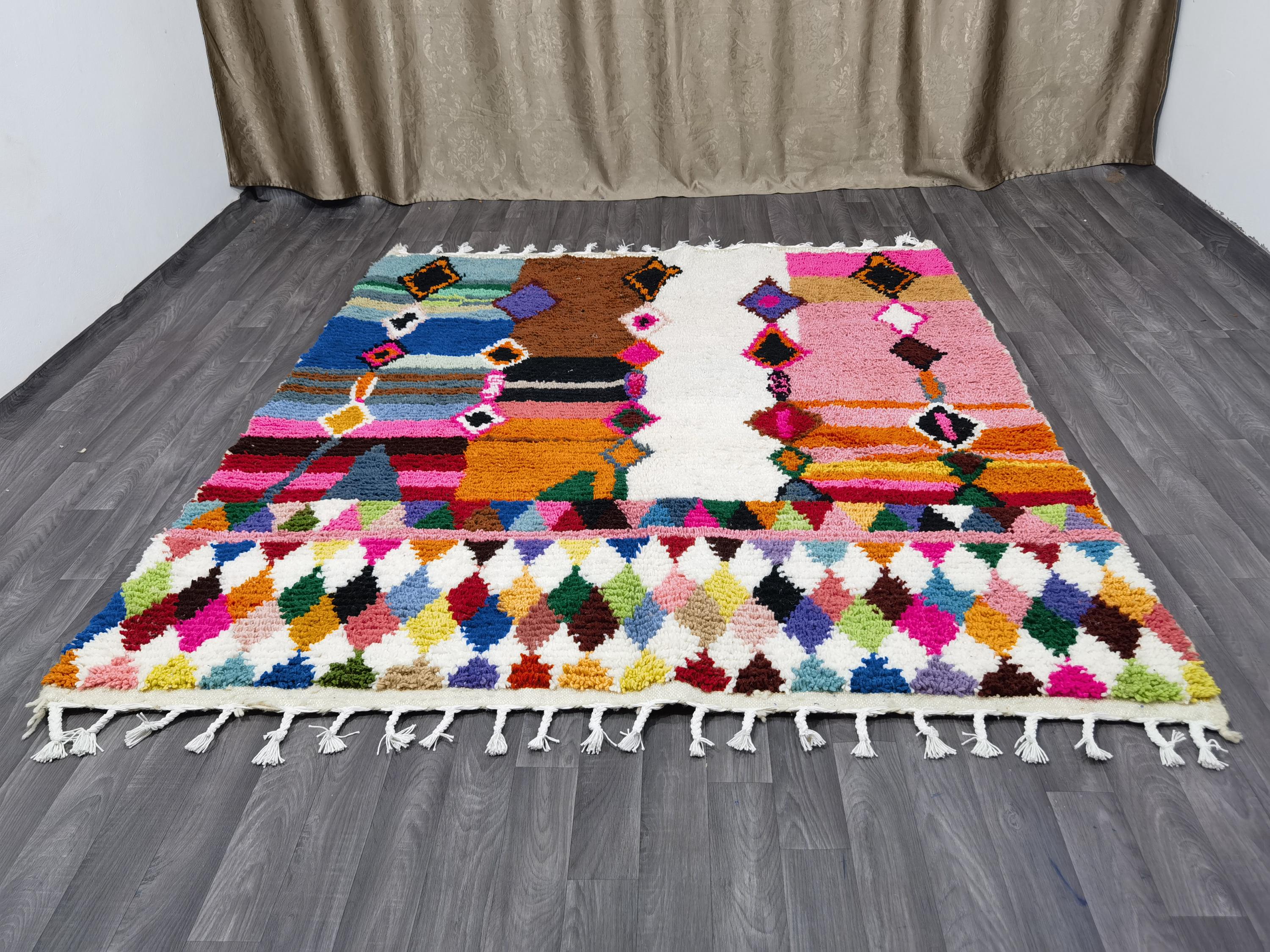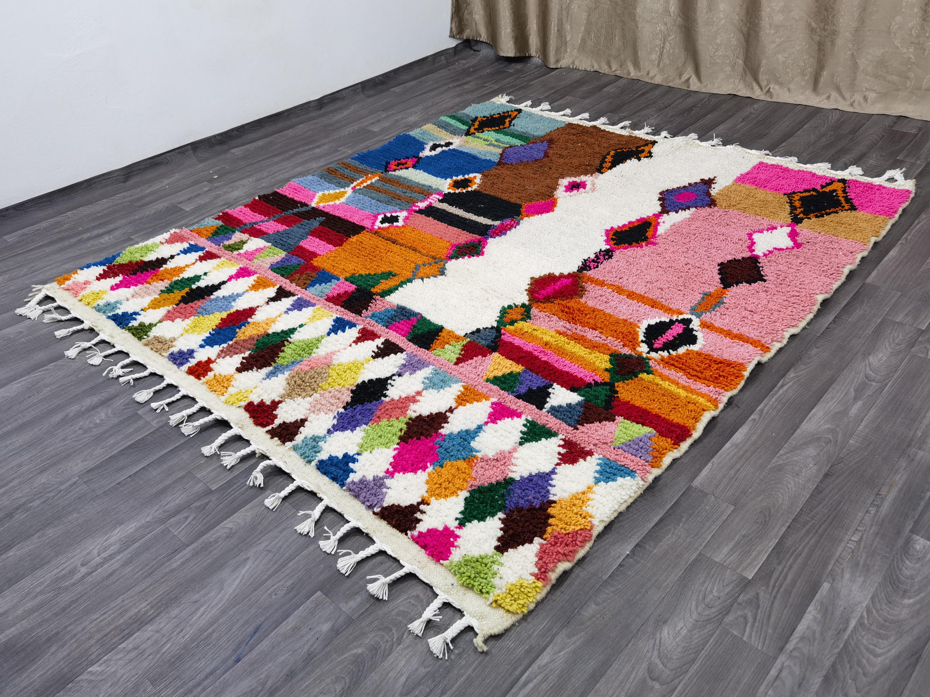 Multicolor Moroccan Wool Rug – Handmade Berber Boujaad Statement Carpet