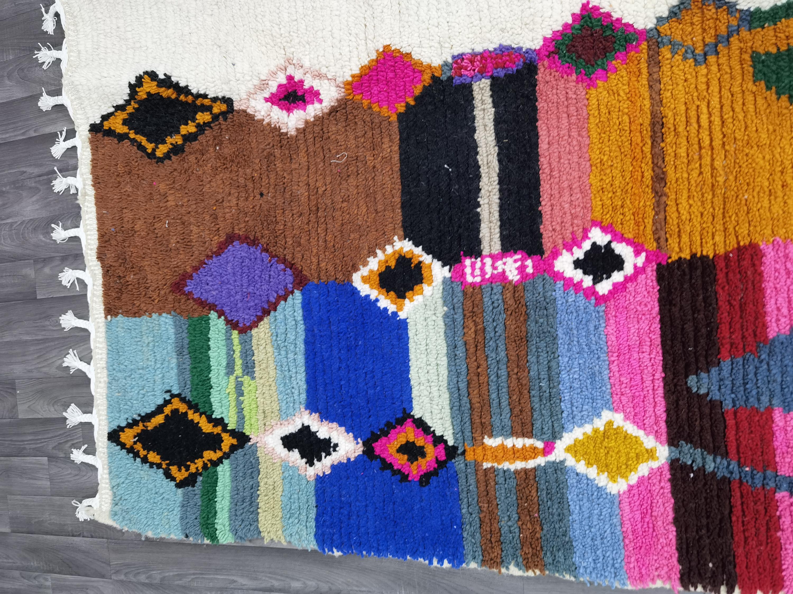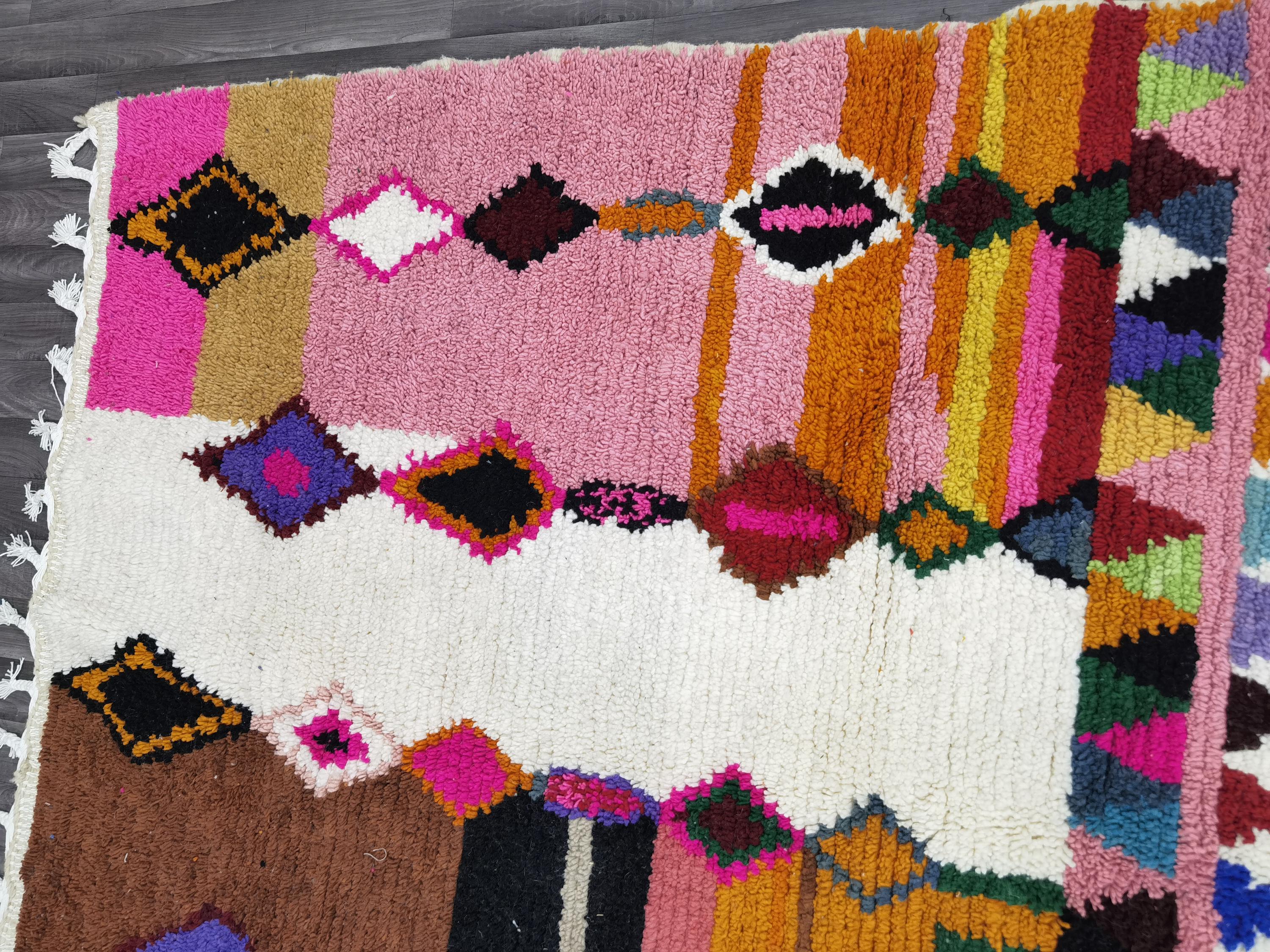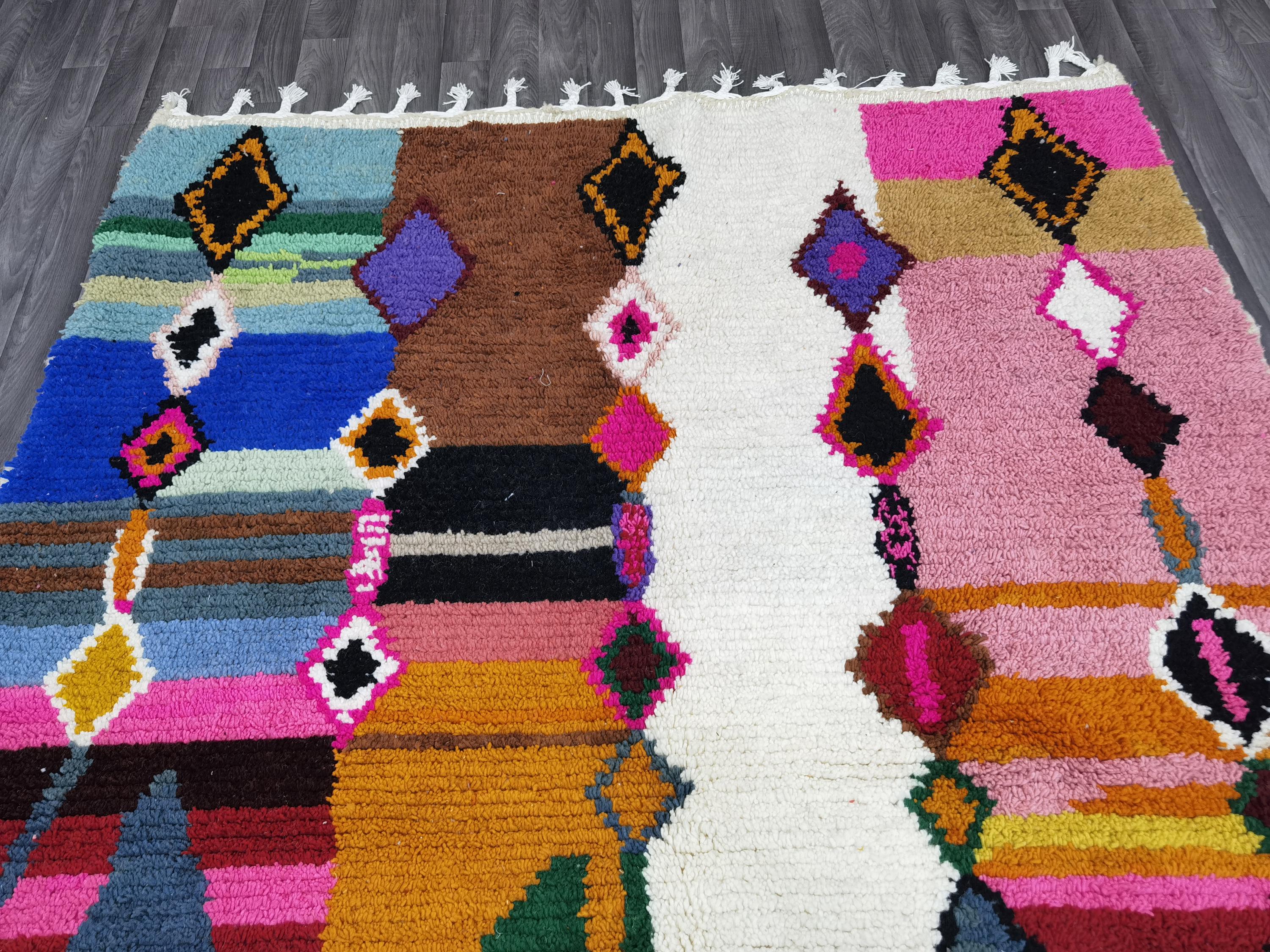 Multicolor Moroccan Wool Rug – Handmade Berber Boujaad Statement Carpet