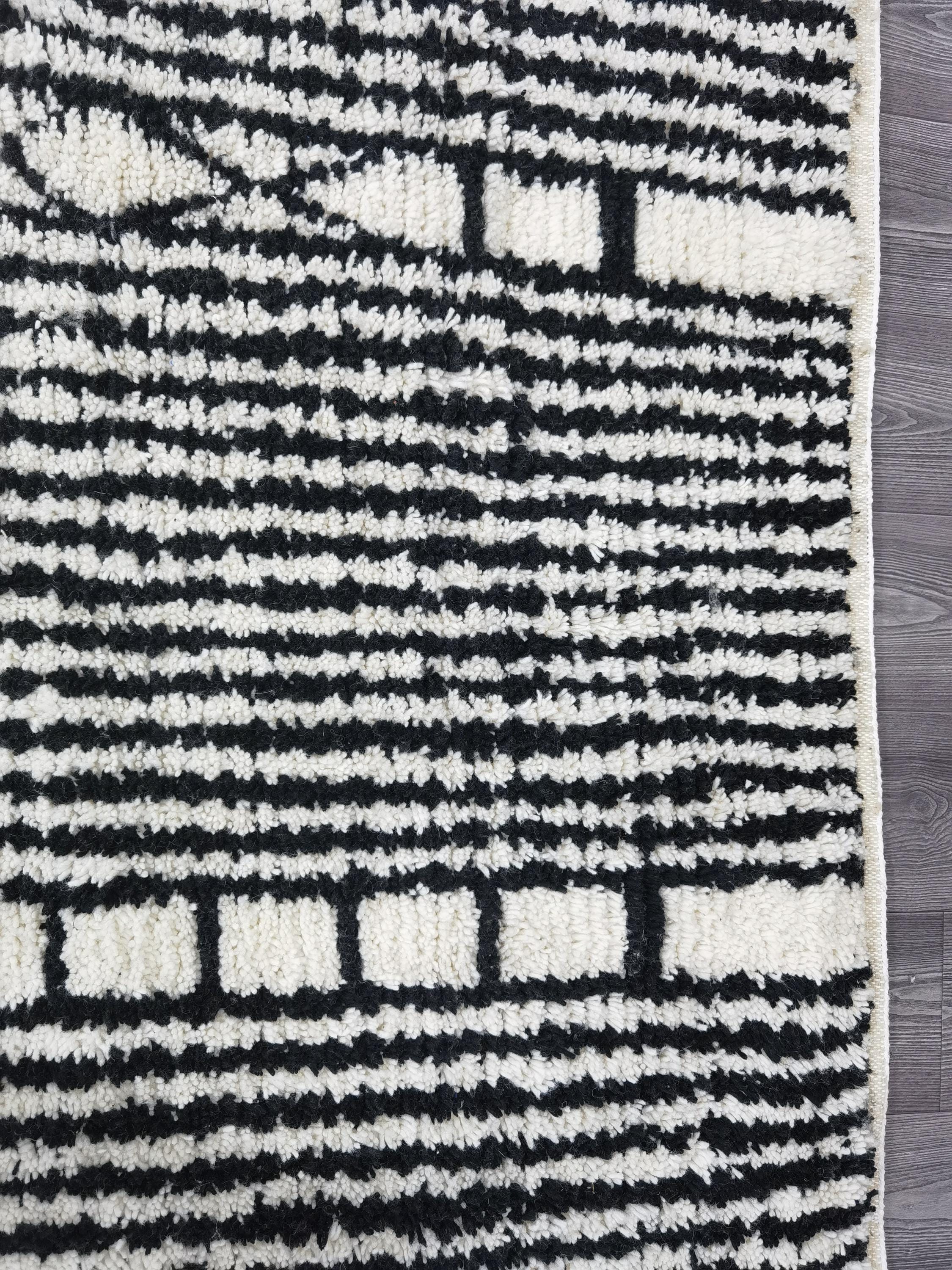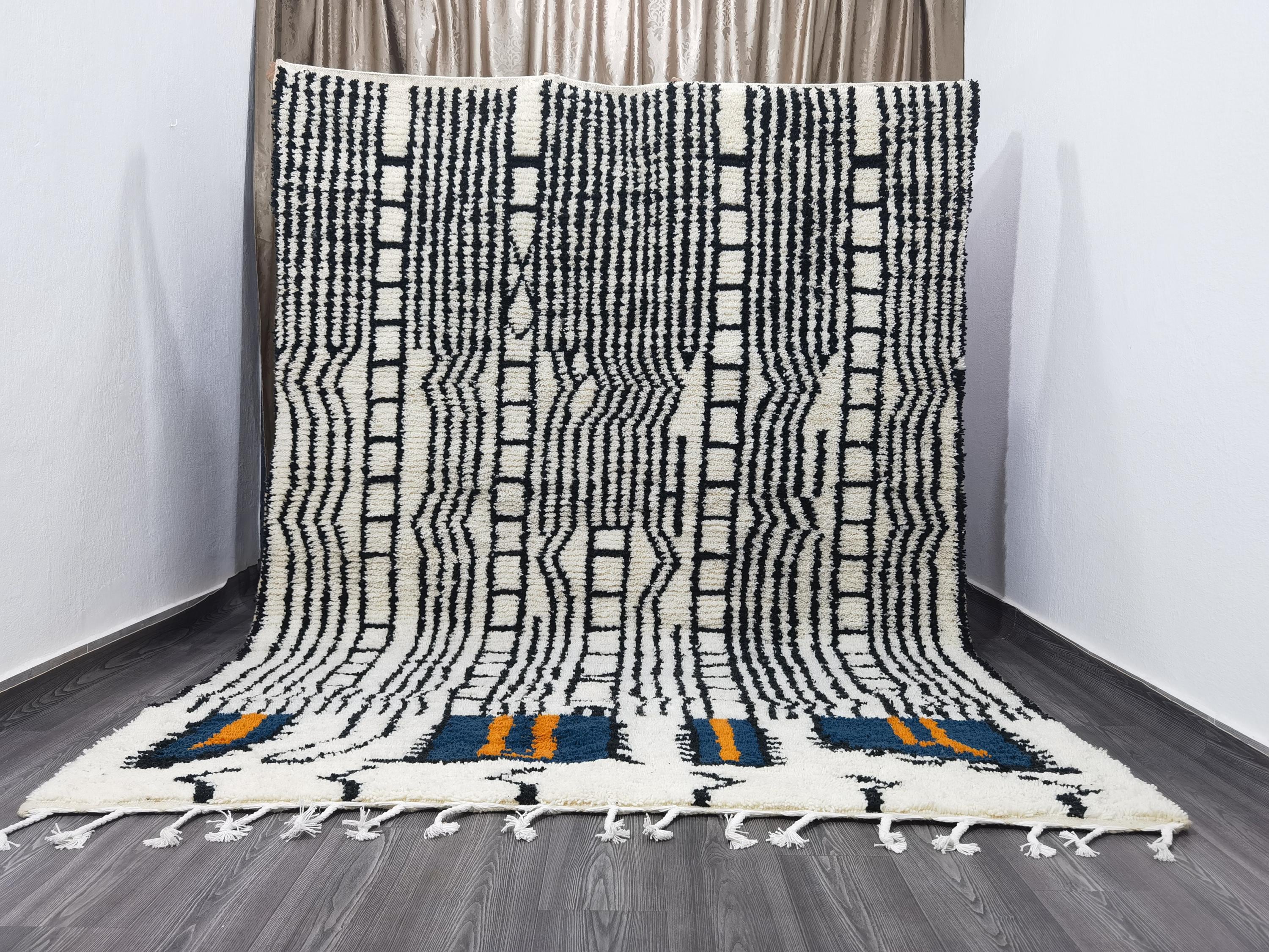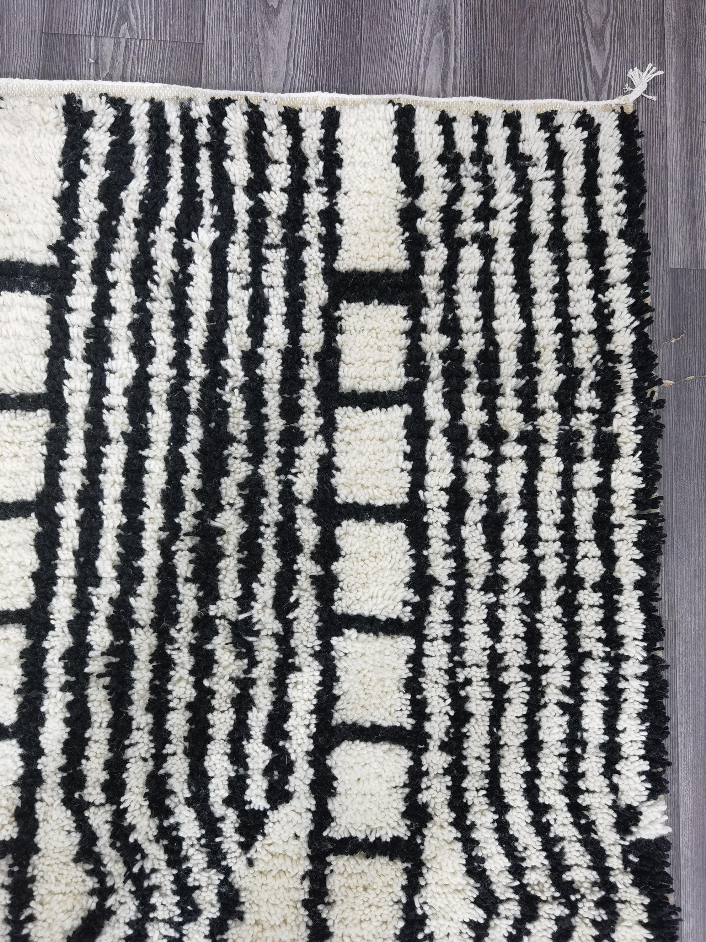 White & Black Beni Ourain Rug 7x10 ft – Handmade Moroccan Boho Area Rug