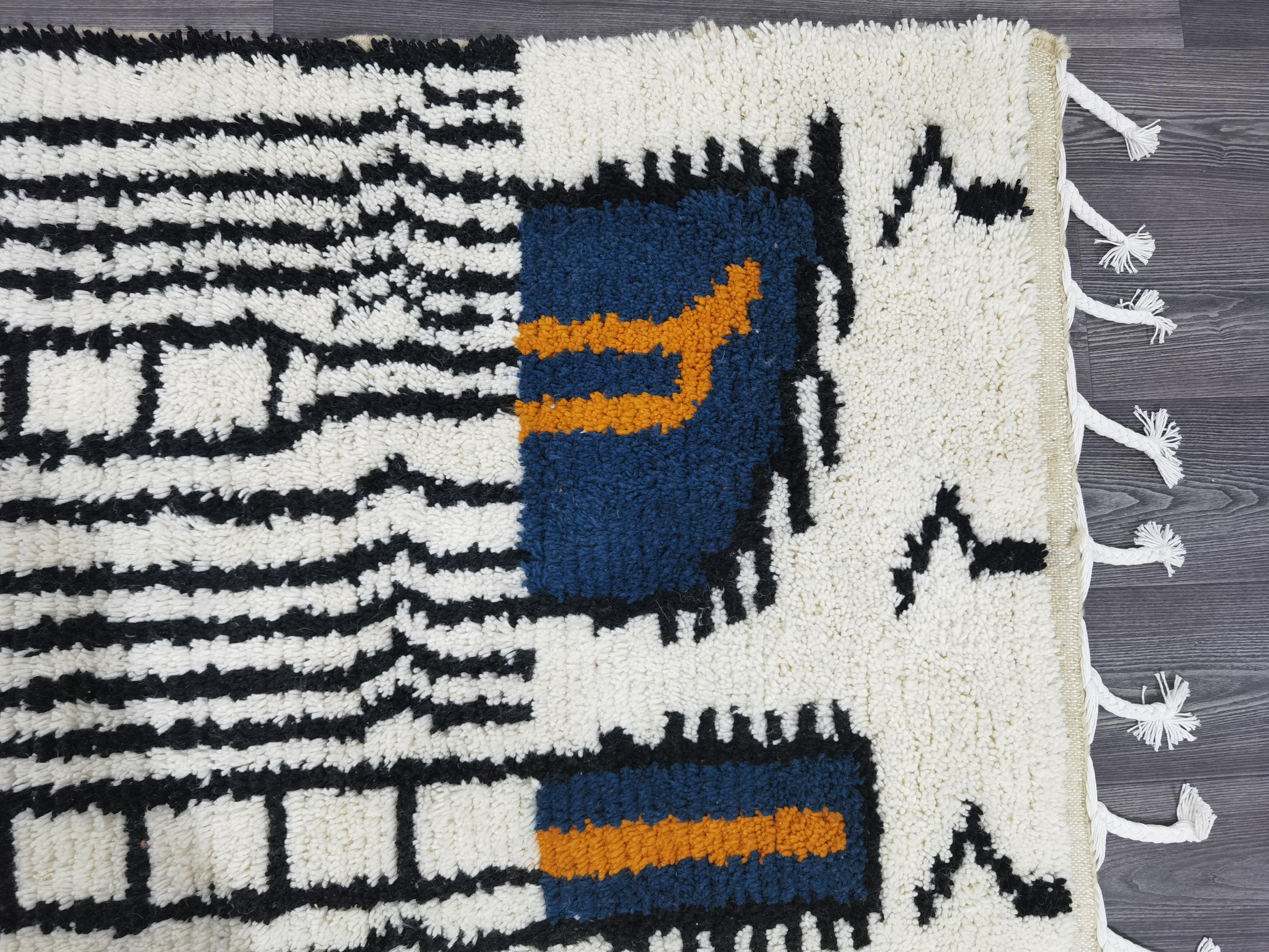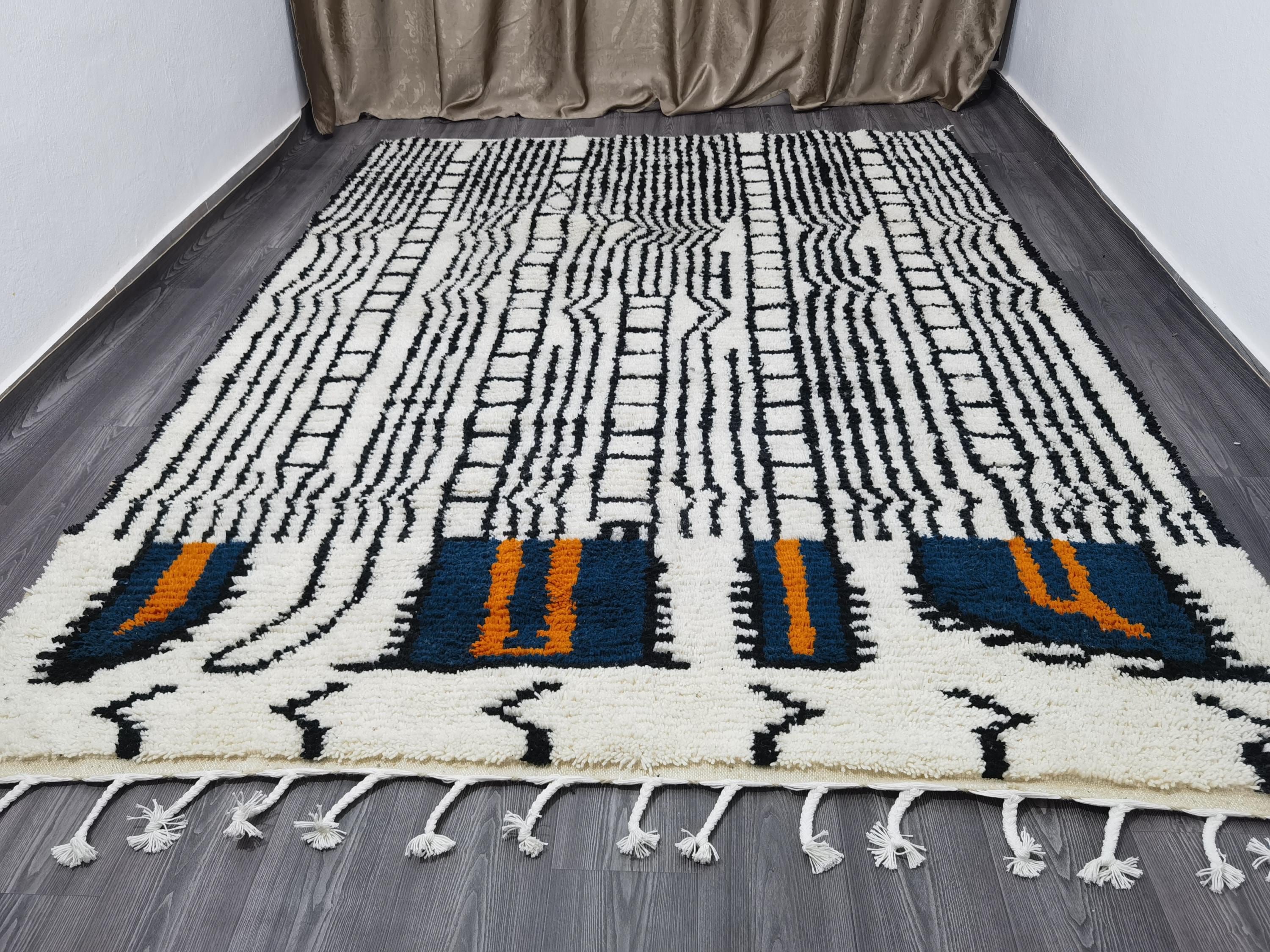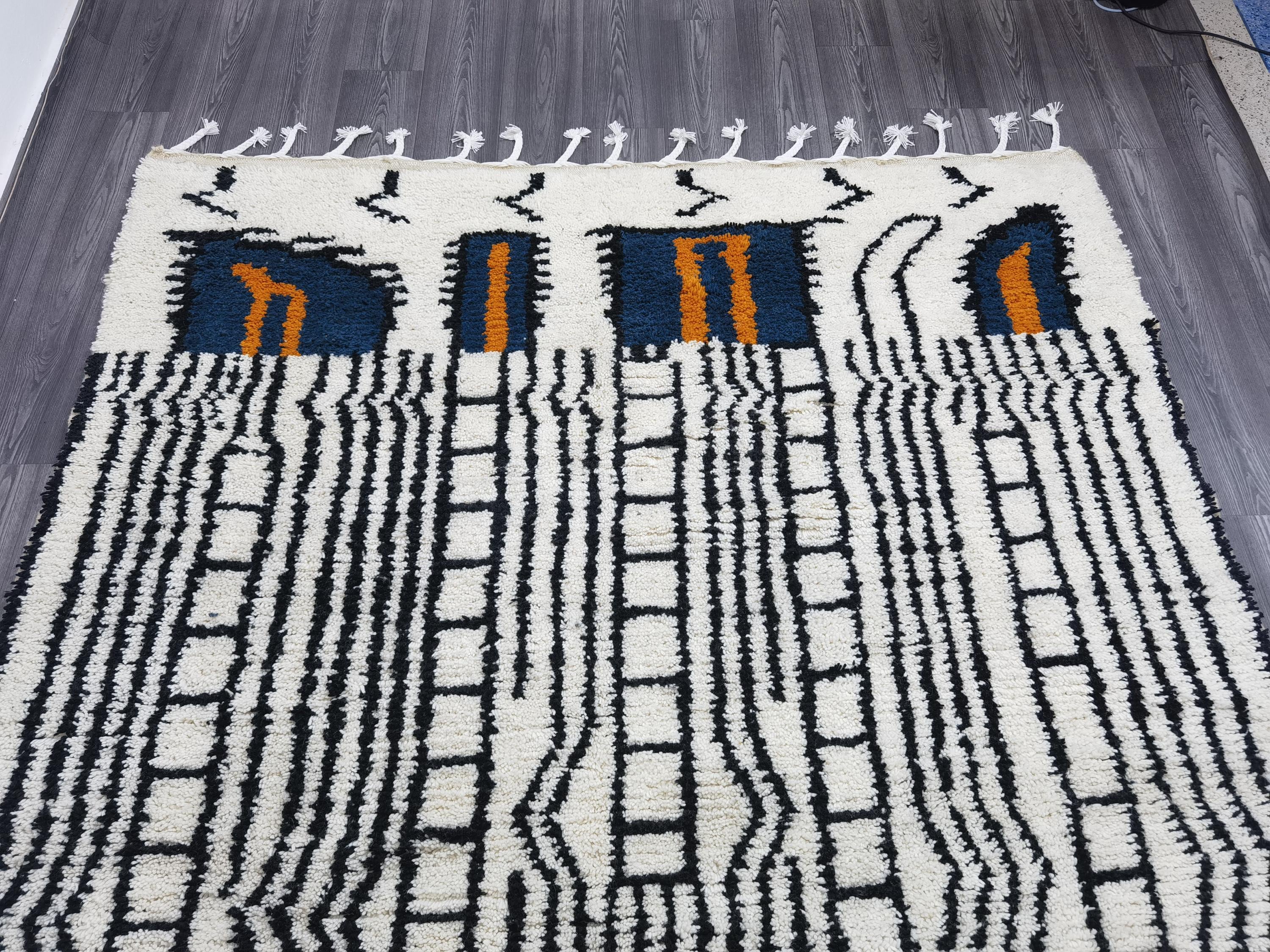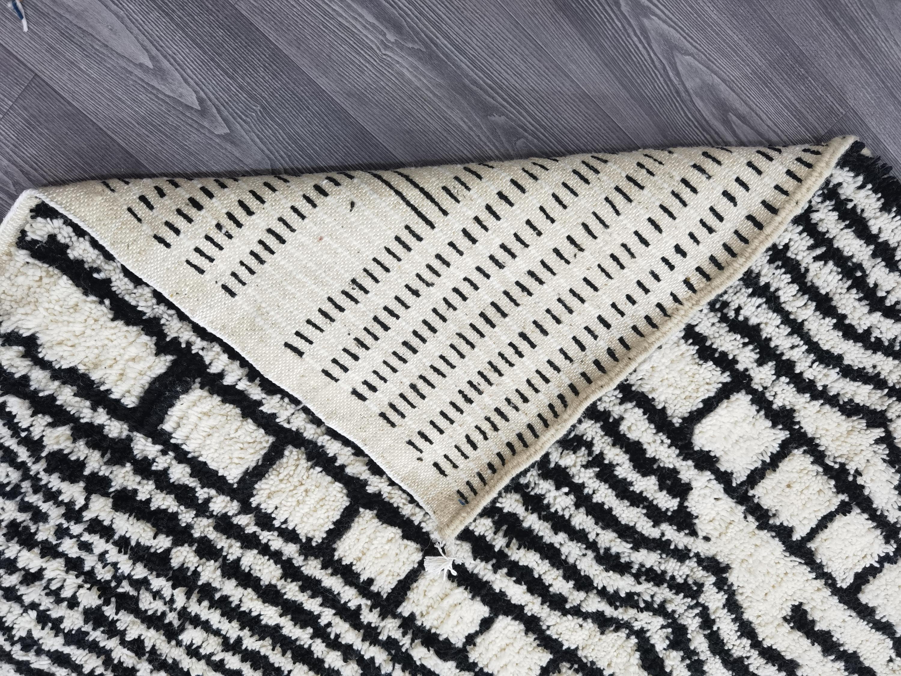 White & Black Beni Ourain Rug 7x10 ft – Handmade Moroccan Boho Area Rug