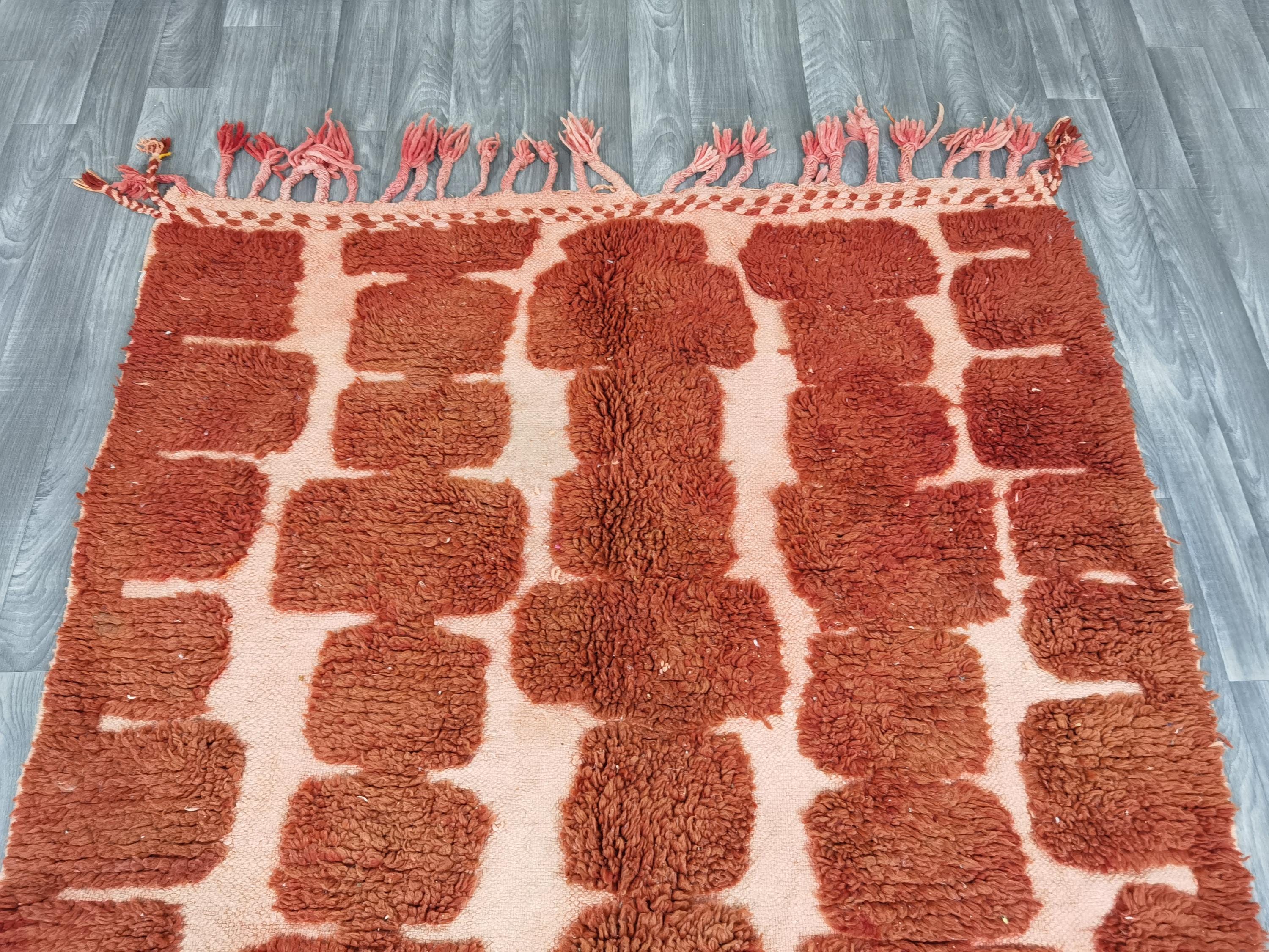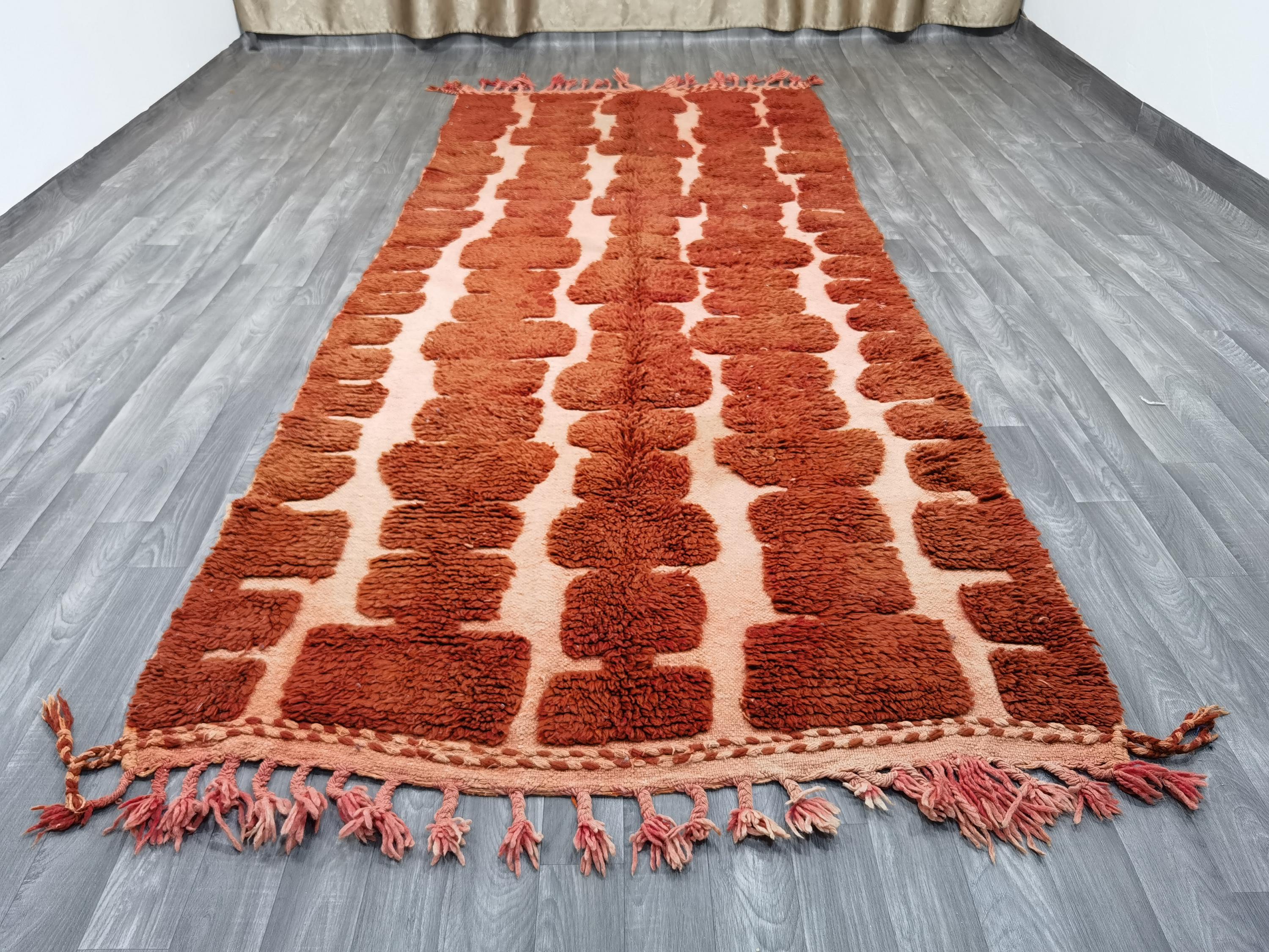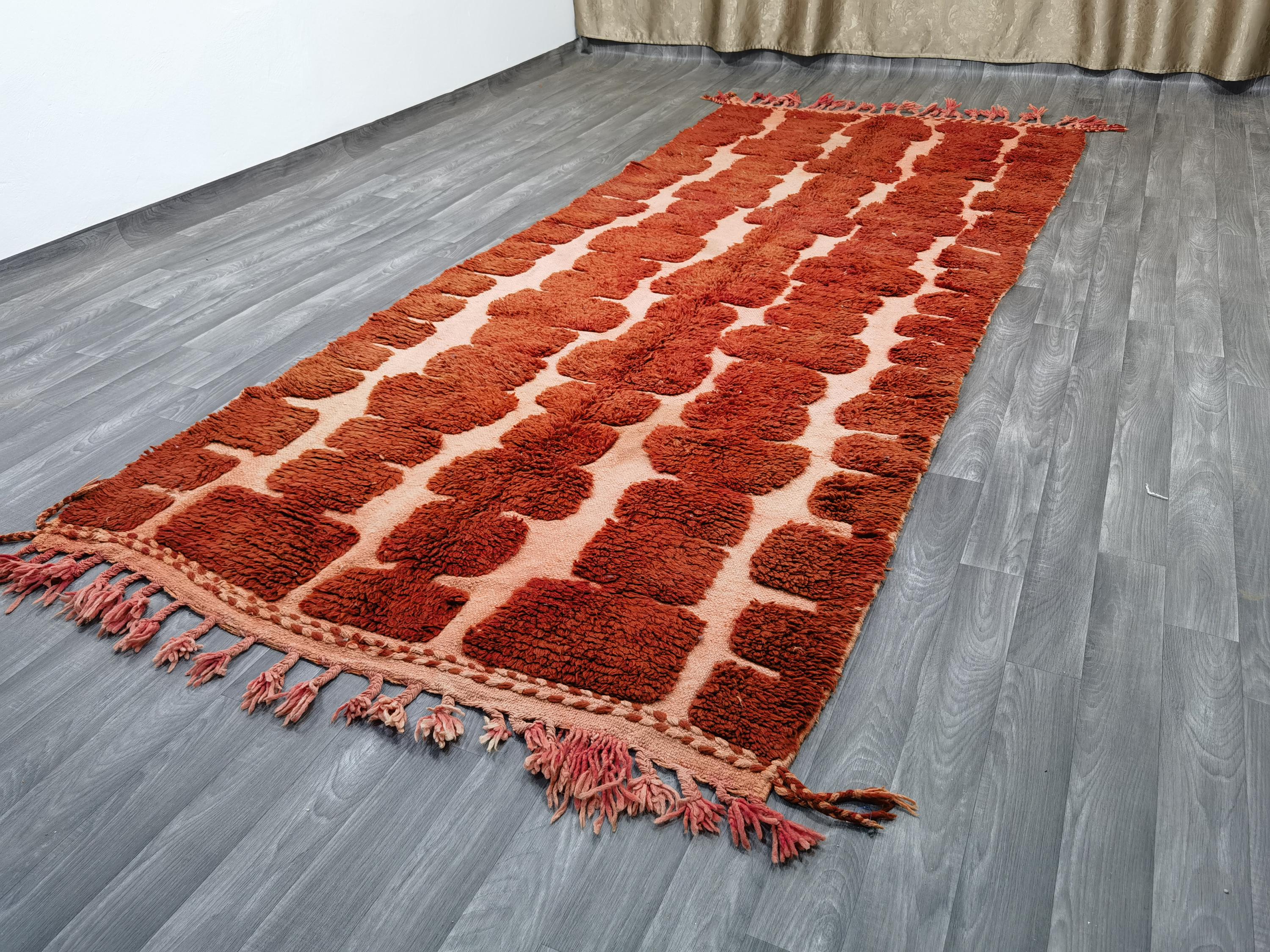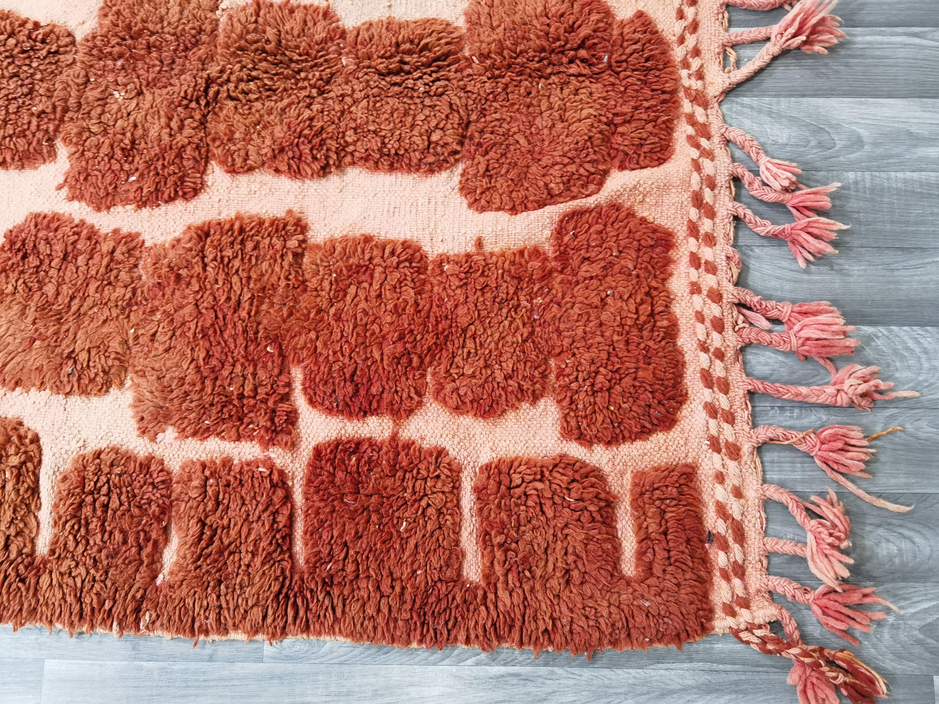 Handmade Berber Boujad Wool Rug, Pink Red Moroccan Decor