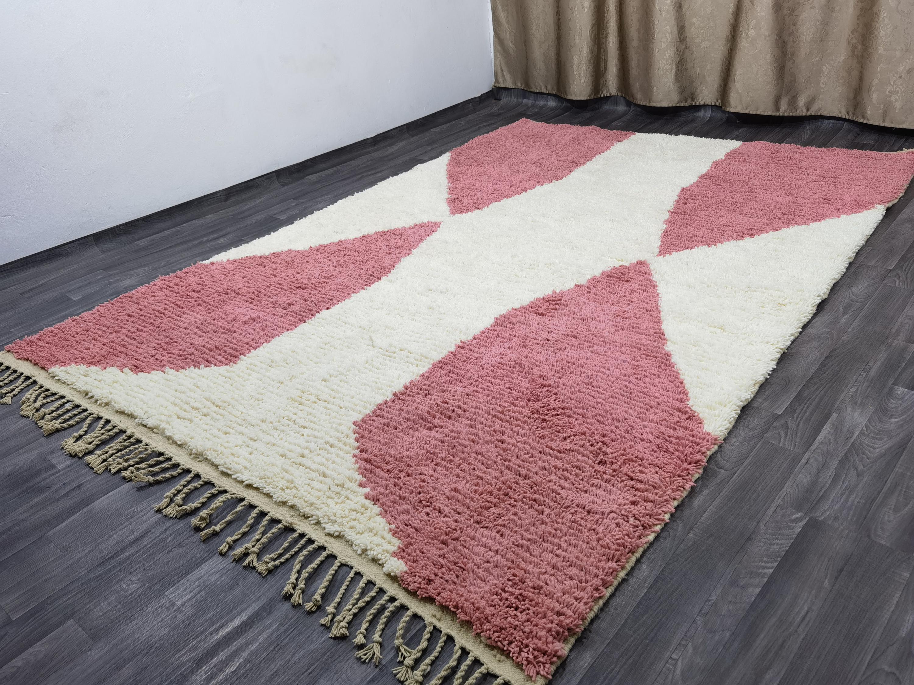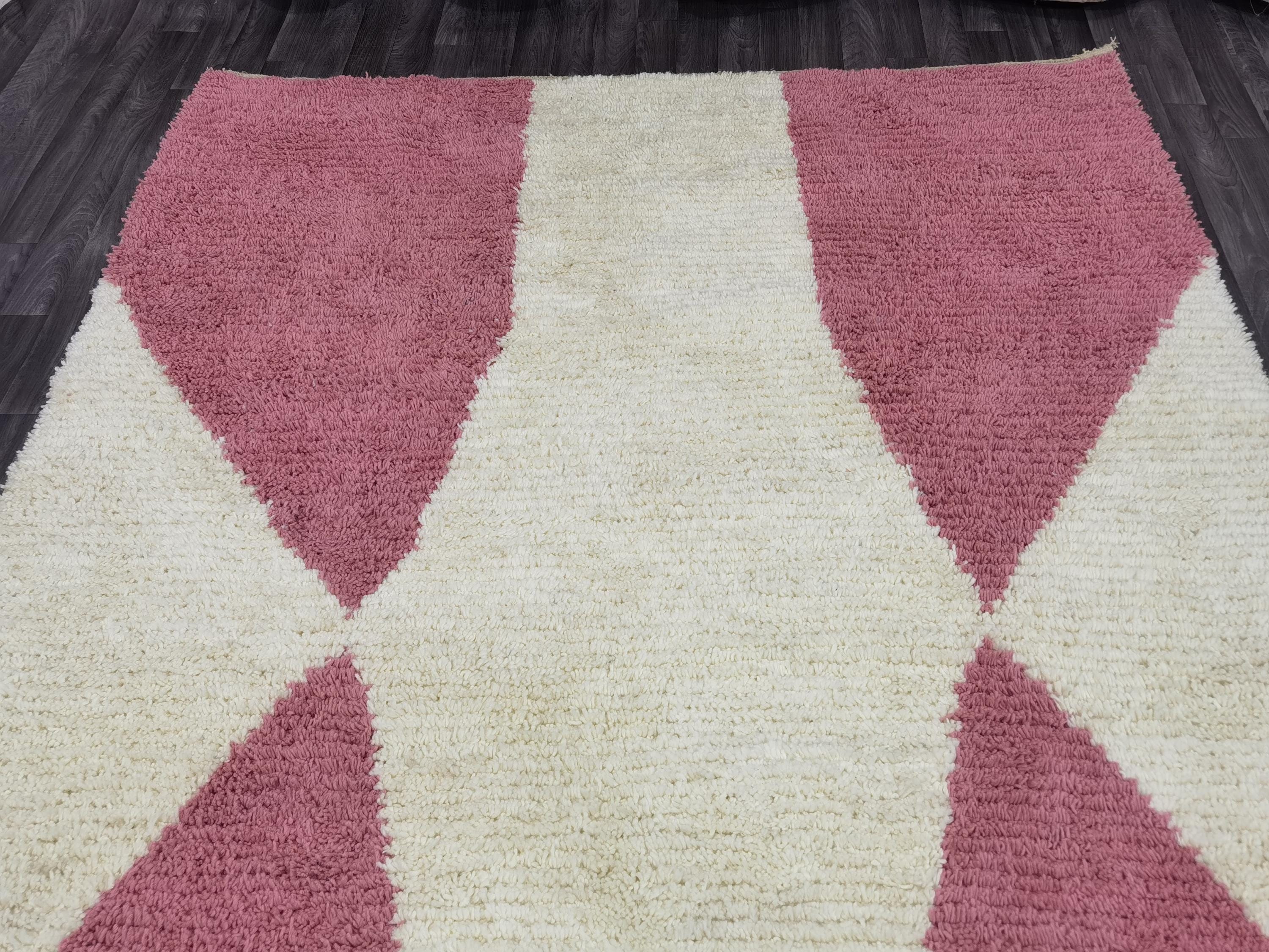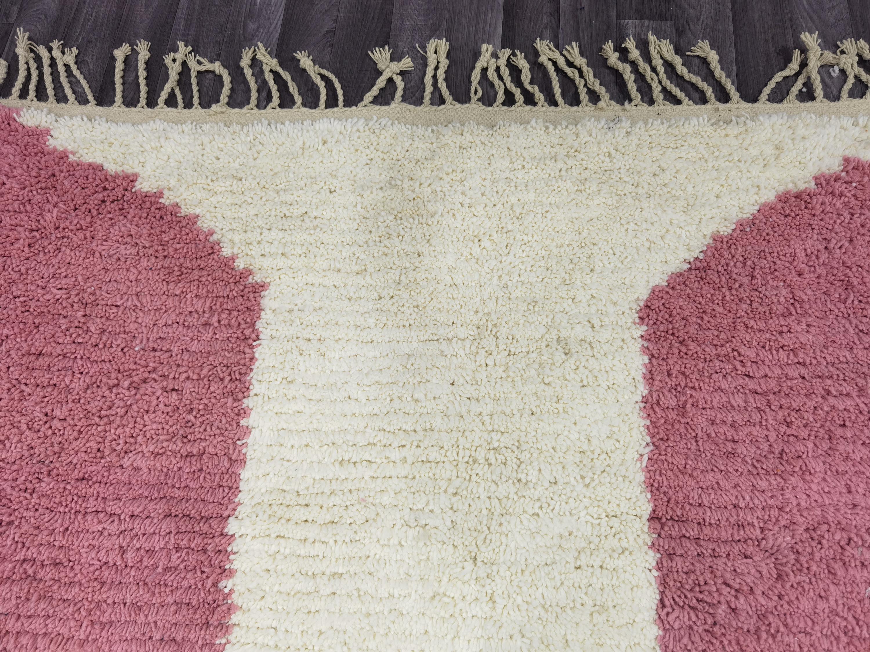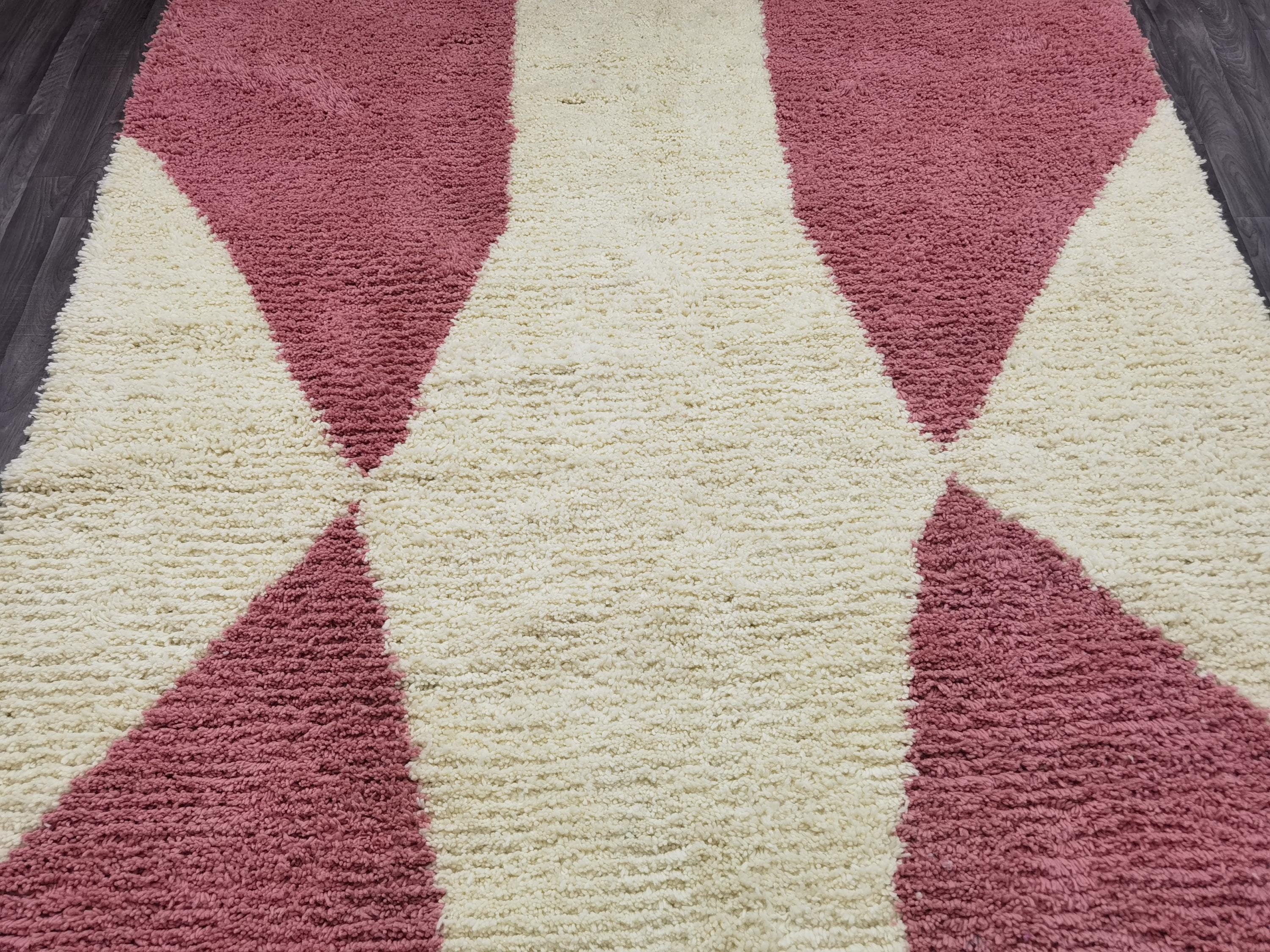 Handmade Pink Berber Rug, Geometric Wool Boujad Carpet