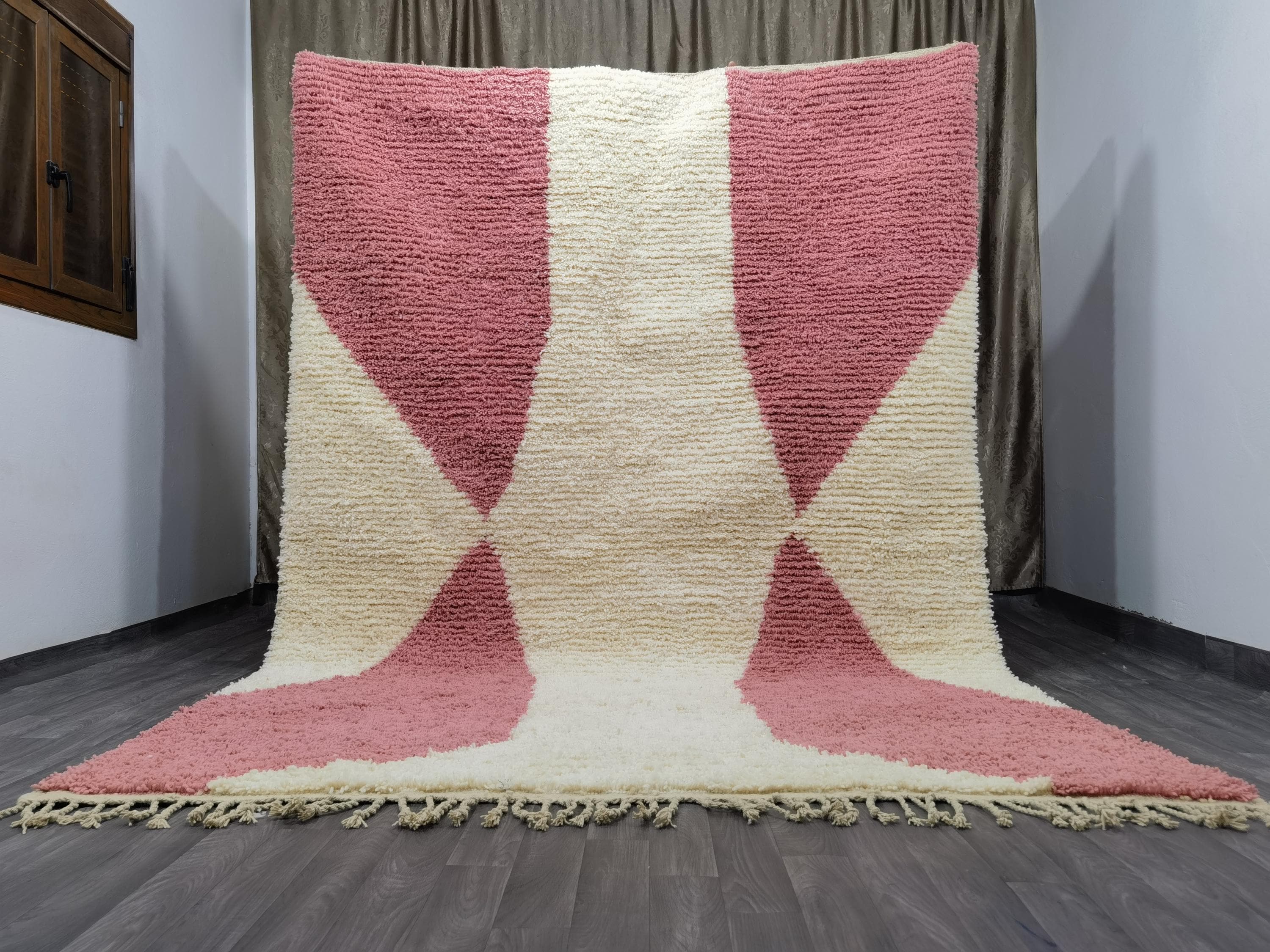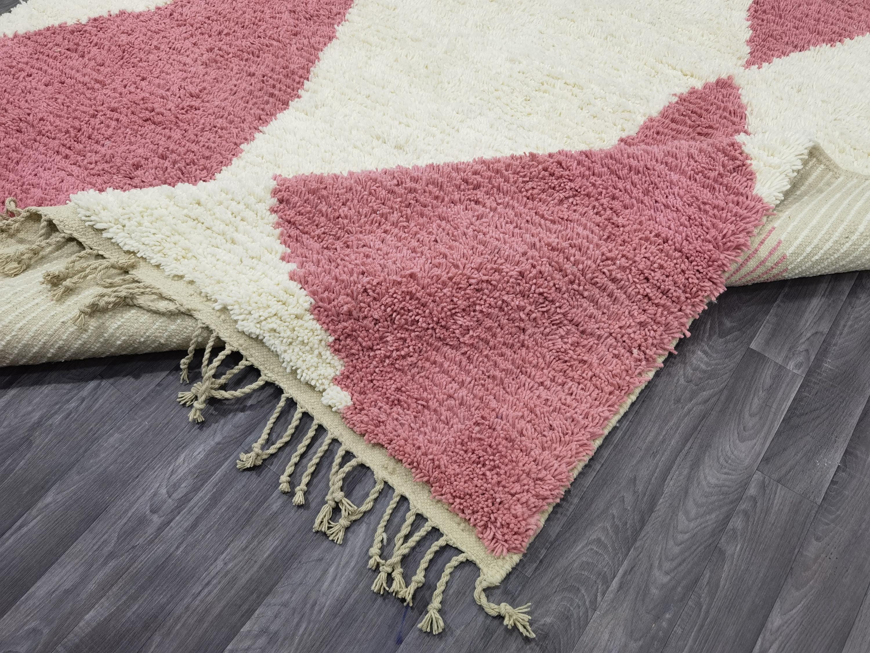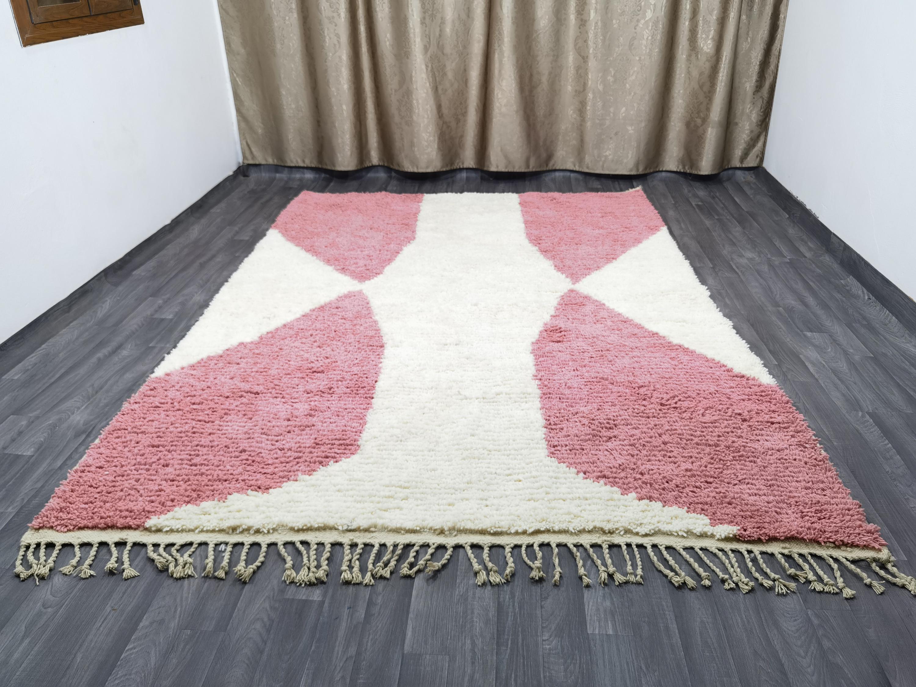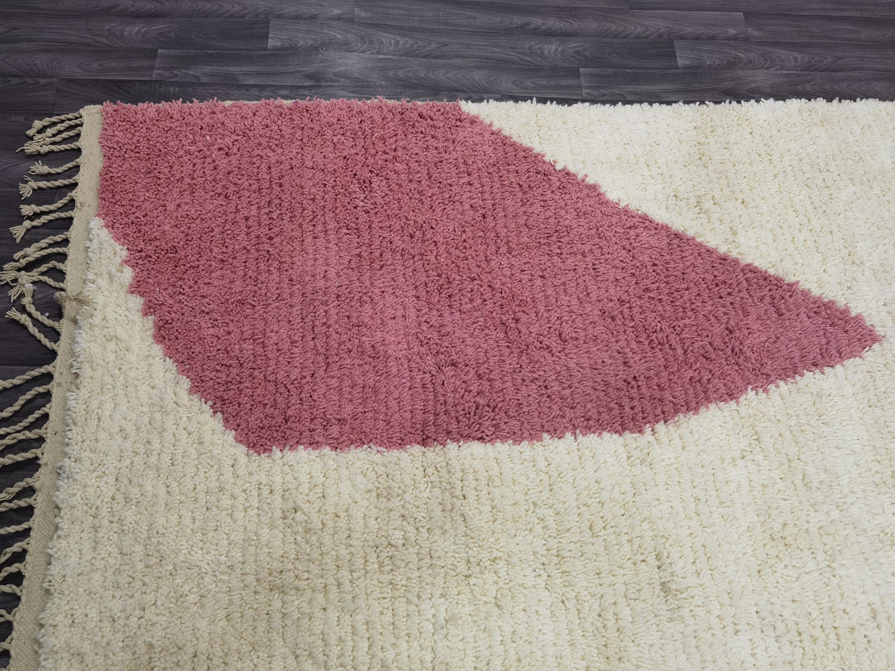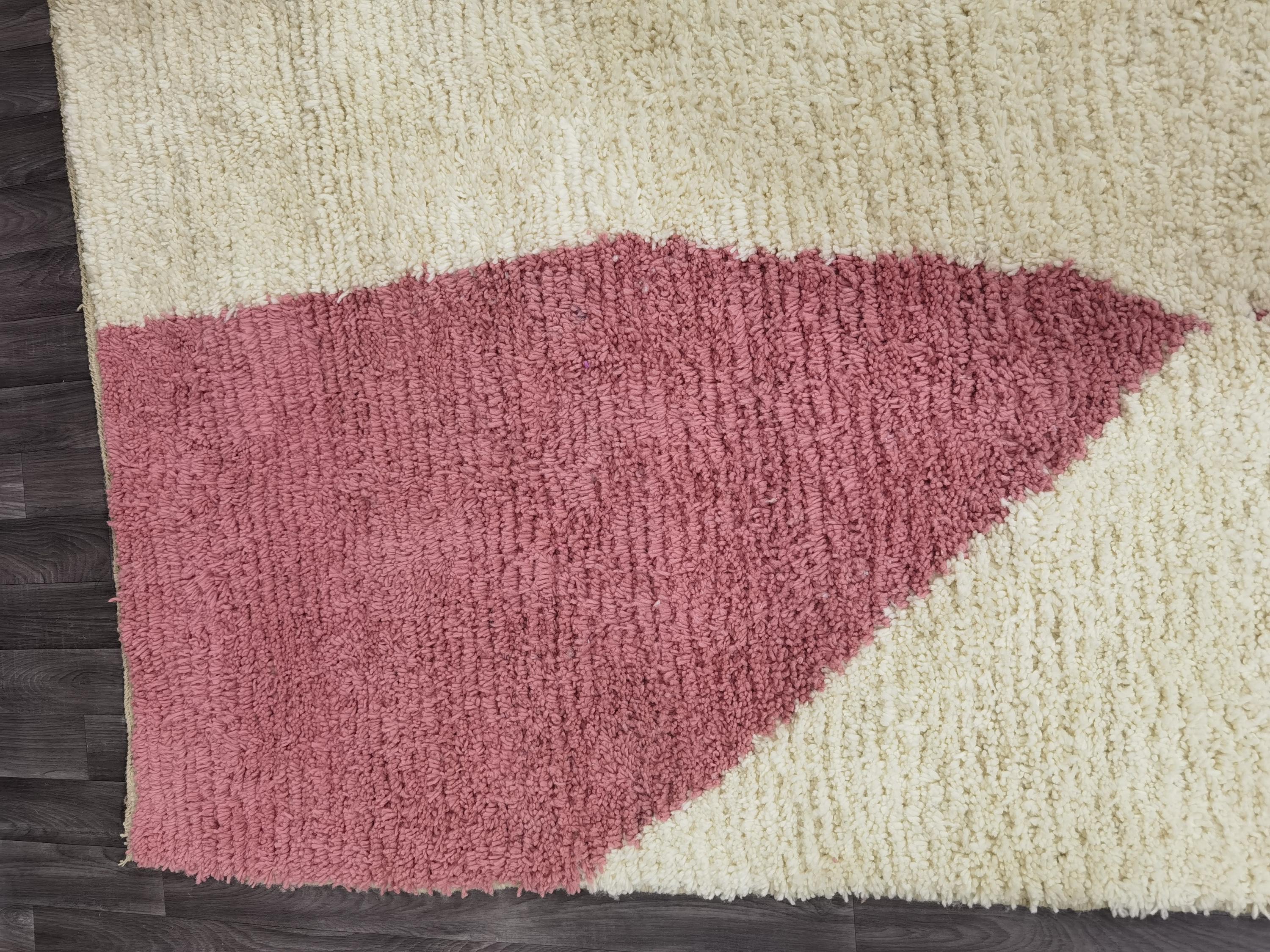 Handmade Pink Berber Rug, Geometric Wool Boujad Carpet